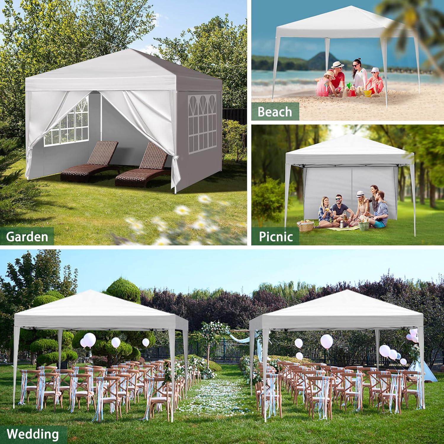 【WIDE USAGE】This party tent is perfect for commercial or recreational use like party, wedding, graduation, flea market, small business, outdoor events, patio leisure, backyard, camping, picnics, sporting events, arts and crafts tables and much more