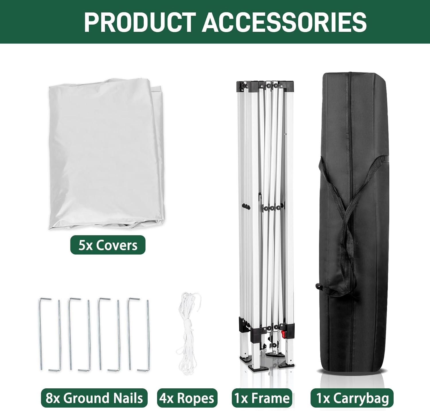 imageOutvita 10x10ft Ez Pop Up Canopy Portable Instant Canopy Tent with 2pcs SideWalls and 4pcs Camping Upright Poles for Outdoor Events Party Wedding BirthdayGraduation Gray10x10white