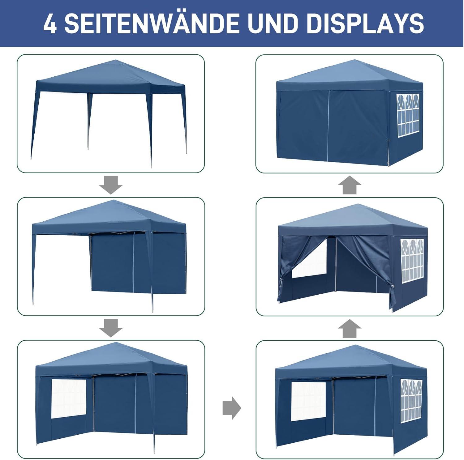【WIDE APPLICATION】This party tent is perfect for commercial or recreational use like party, wedding, graduation, flea market, small business, outdoor events, patio leisure, backyard, camping, picnics, sporting events, trade shows, fairs, flea markets, yard sales, parties