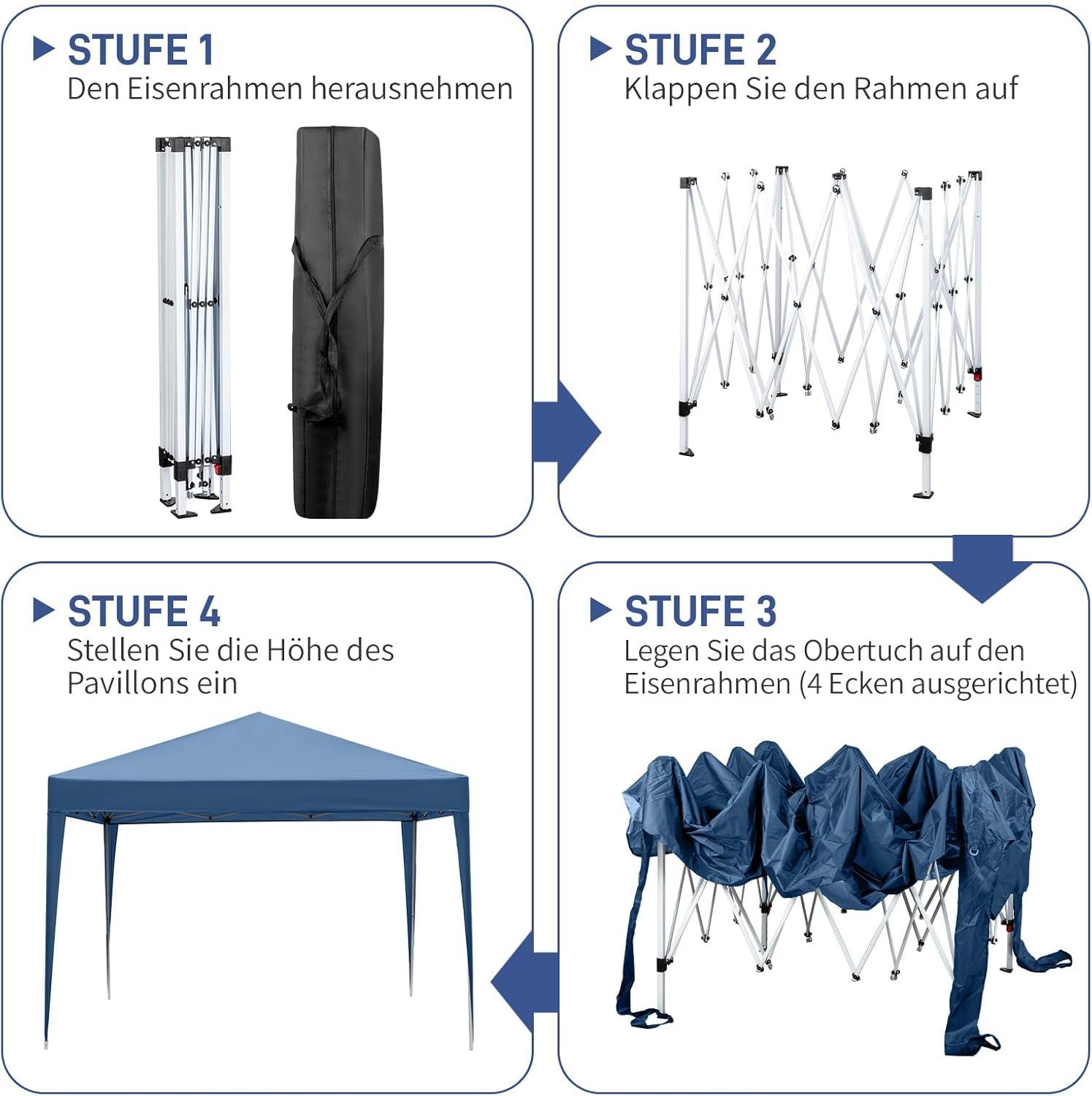【EASY SETUP】Few minutes to set up or take down by one person. Fix the canopy with the frame, then open the foldable frame and adjust the height. Powder coated steel frame is easy to open and collapse down