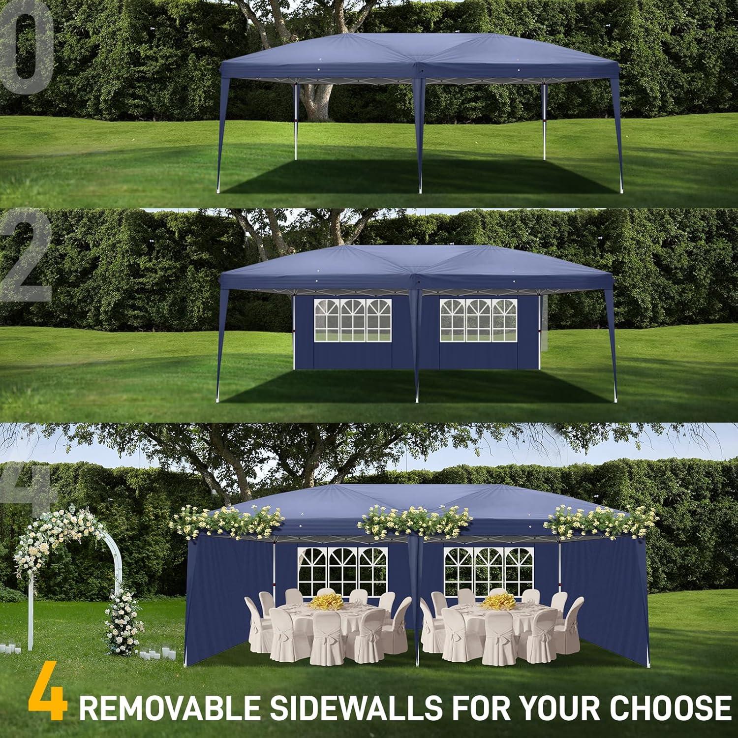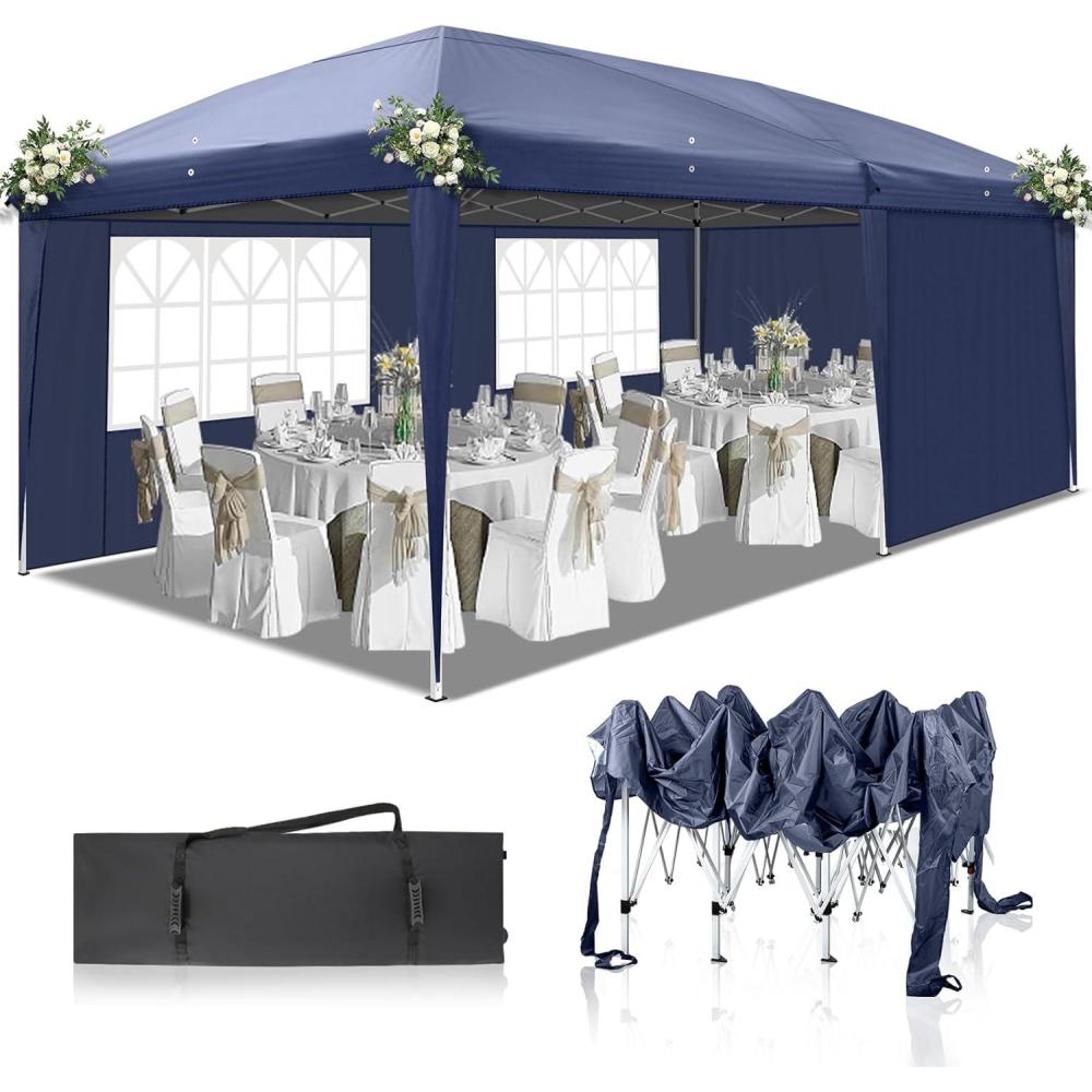 Outvita 10x30ft Ez Pop Up Canopy, Portable Instant Canopy Tent with 8 SideWalls for Outdoor Events, Party, Wedding, Birthday,Graduation(Dark Gray, 10x30ft)(10×20-blue)