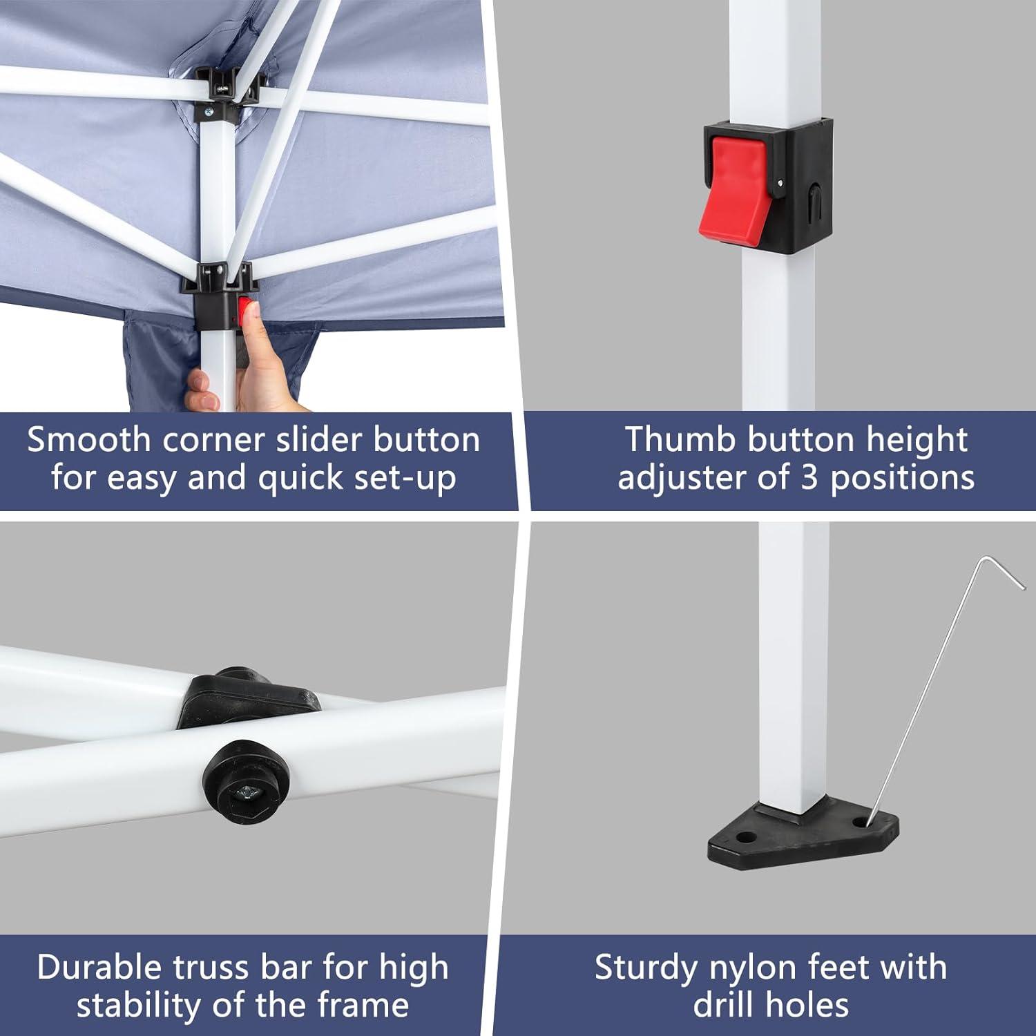 Outvita 10x30ft Ez Pop Up Canopy, Portable Instant Canopy Tent with 8 SideWalls for Outdoor Events, Party, Wedding, Birthday,Graduation(Dark Gray, 10x30ft)(10x20-blue)