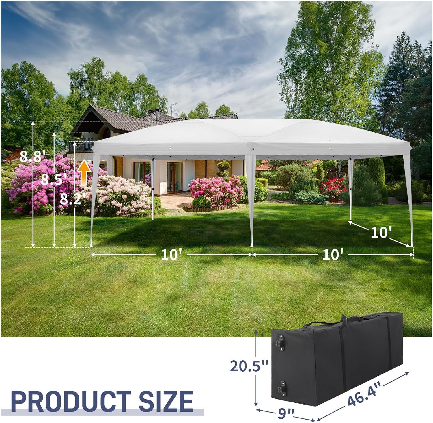 Outvita 10x30ft Ez Pop Up Canopy, Portable Instant Canopy Tent with 8 SideWalls for Outdoor Events, Party, Wedding, Birthday,Graduation(Dark Gray, 10x30ft)(10×20-white)