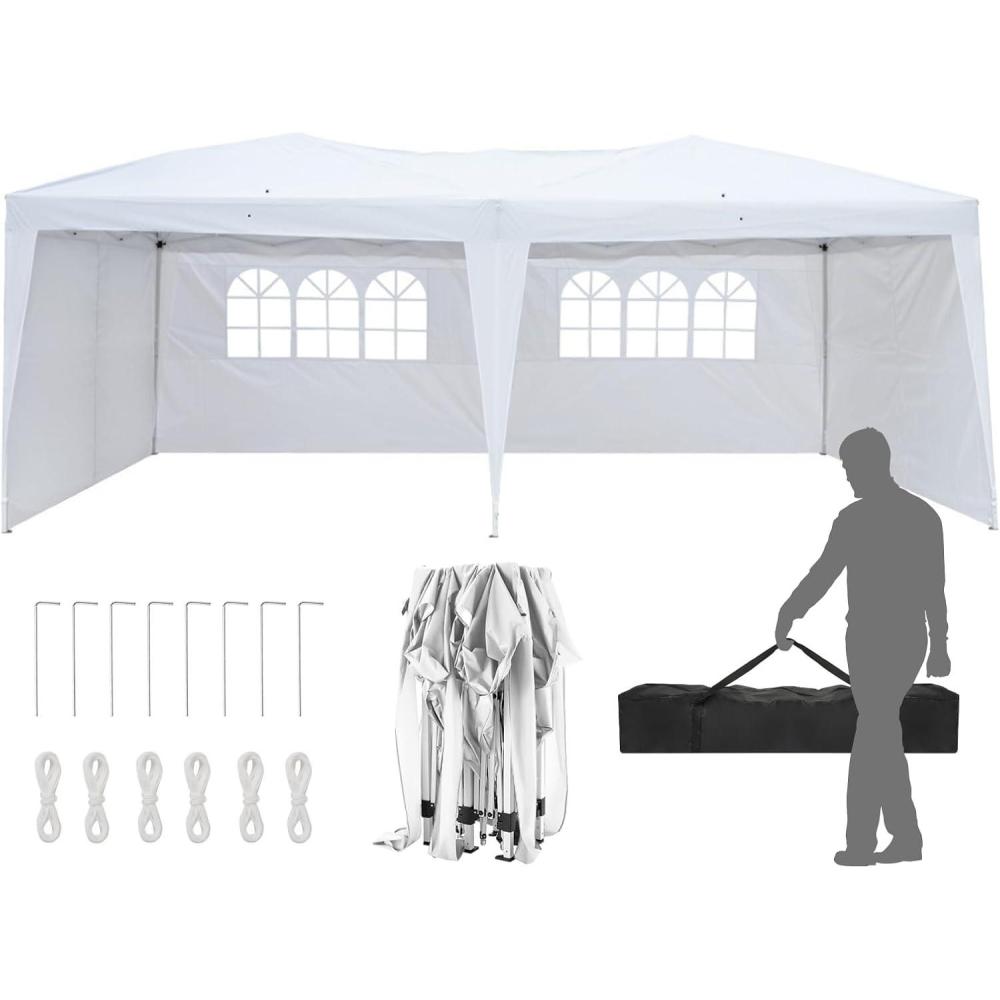 【WIDE APPLICATION】This party tent is perfect for commercial or recreational use like party, wedding, graduation, flea market, small business, outdoor events, patio leisure, backyard, camping, picnics, sporting events, trade shows, fairs, flea markets, yard sales, parties