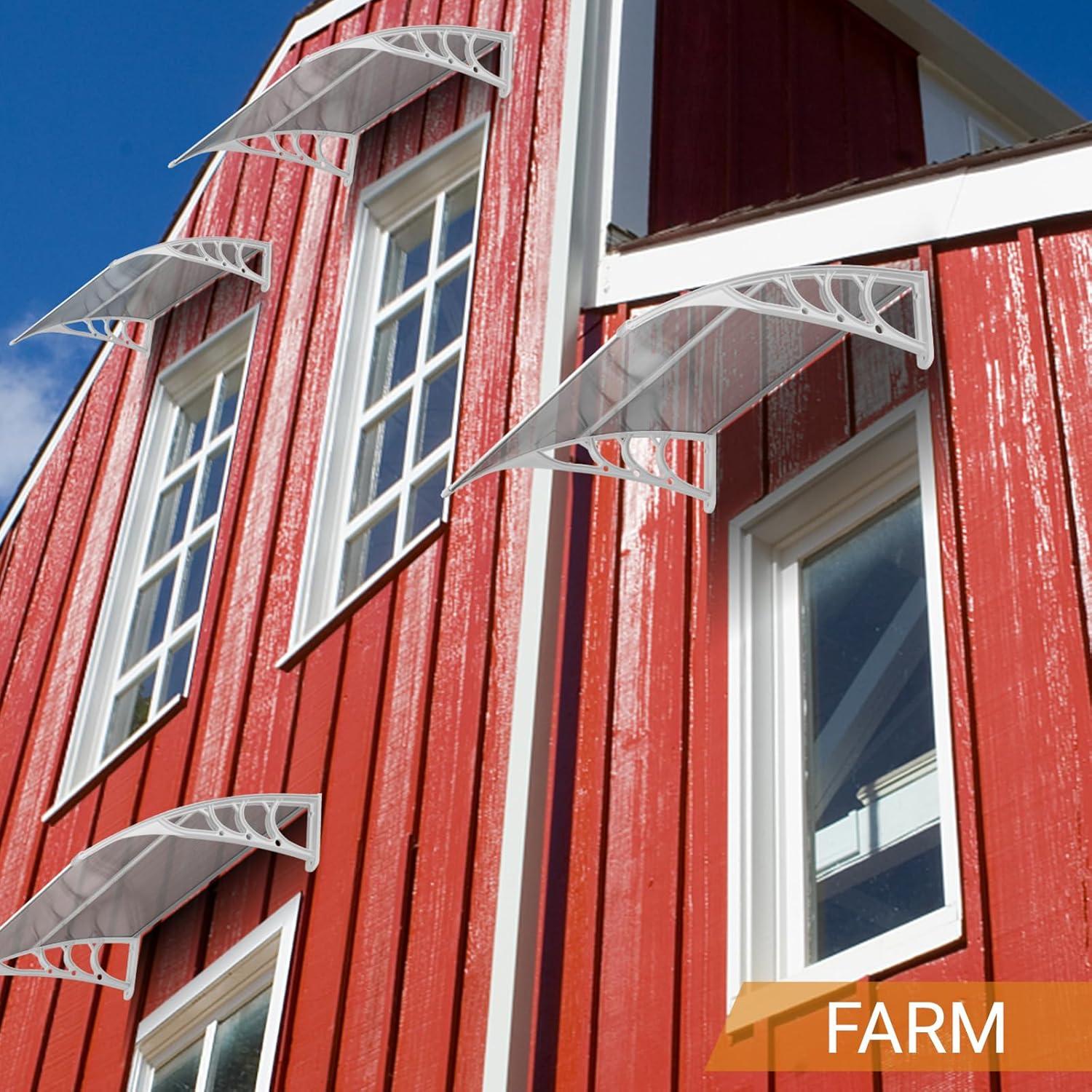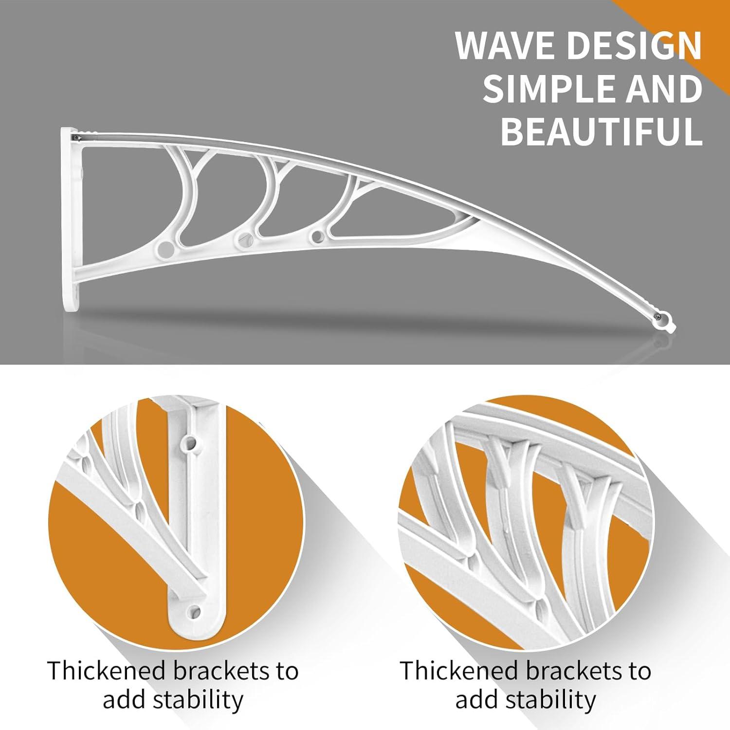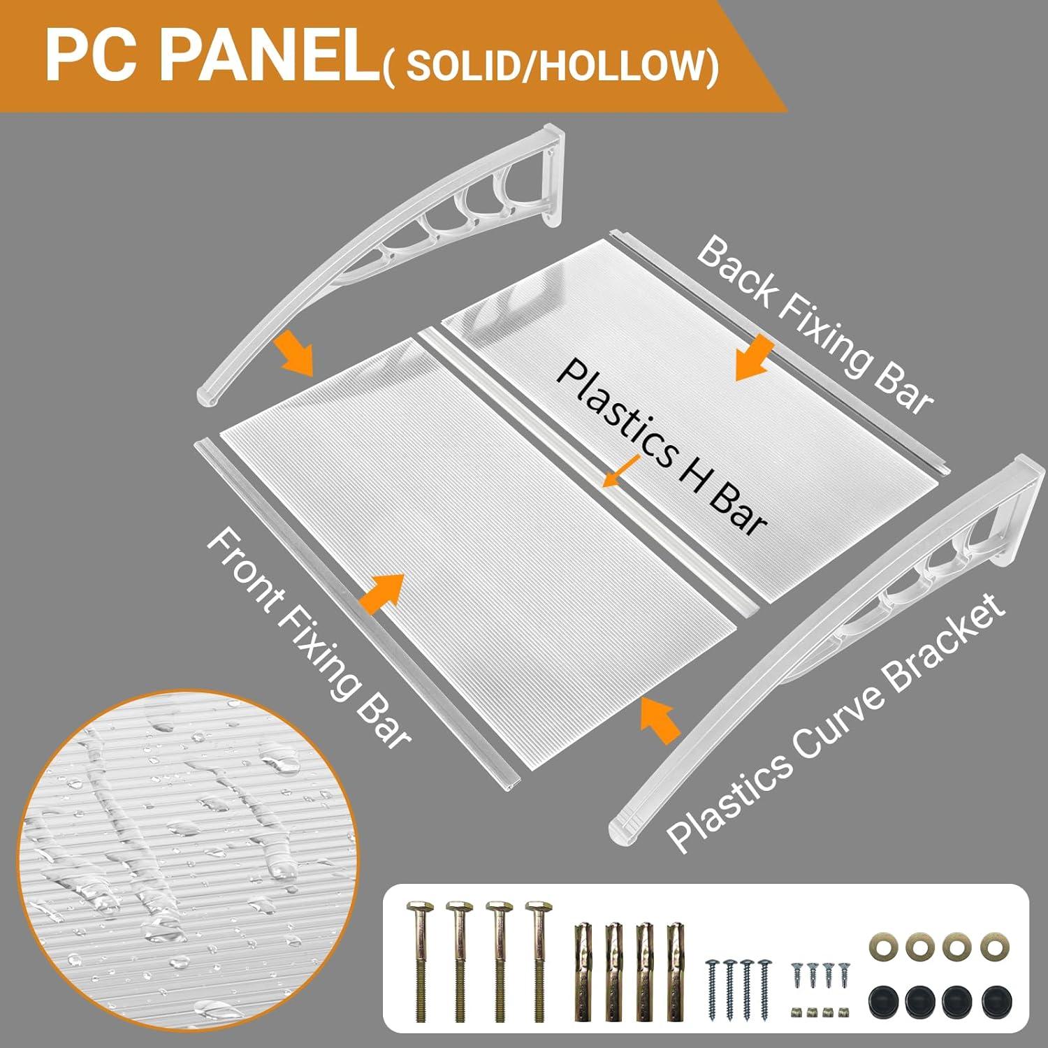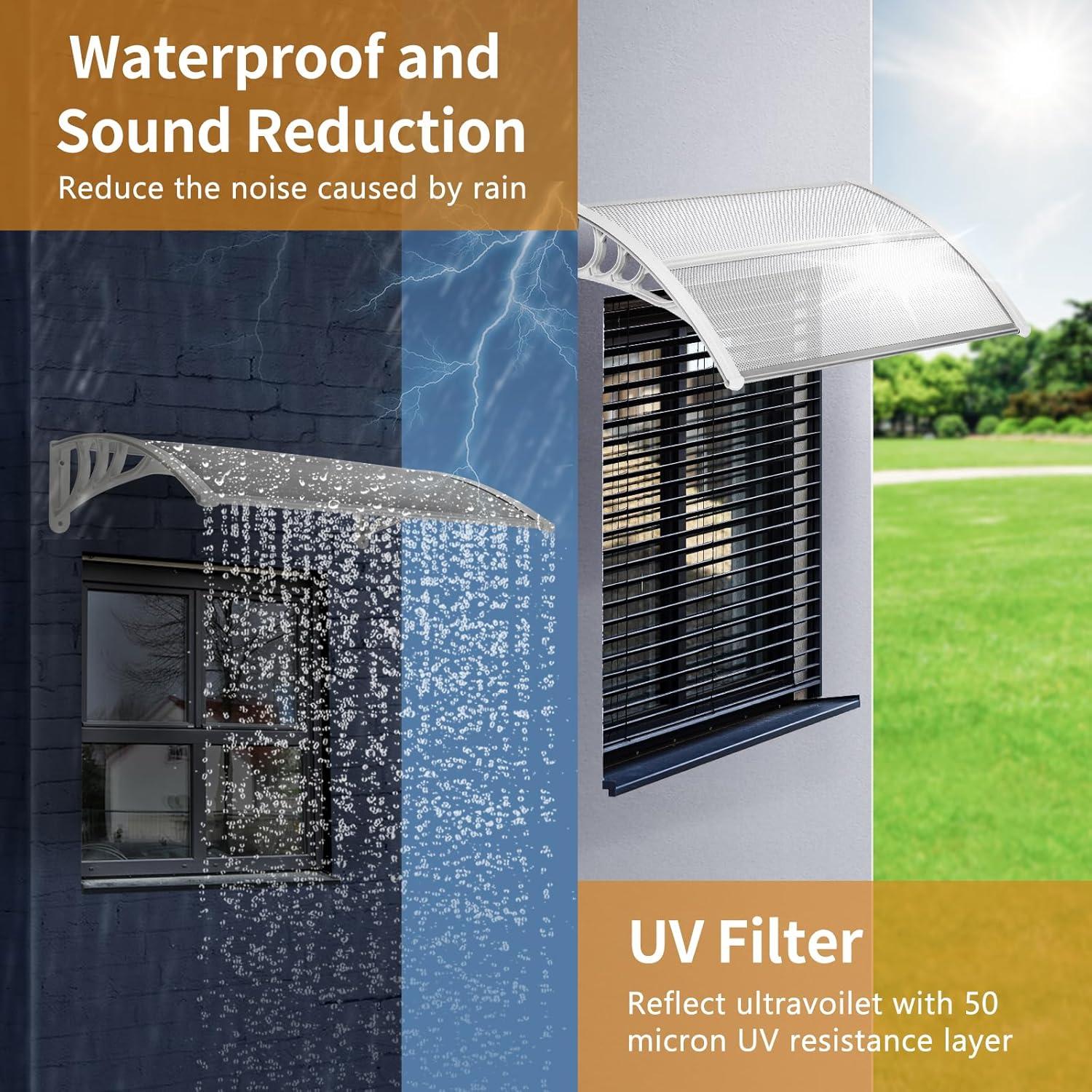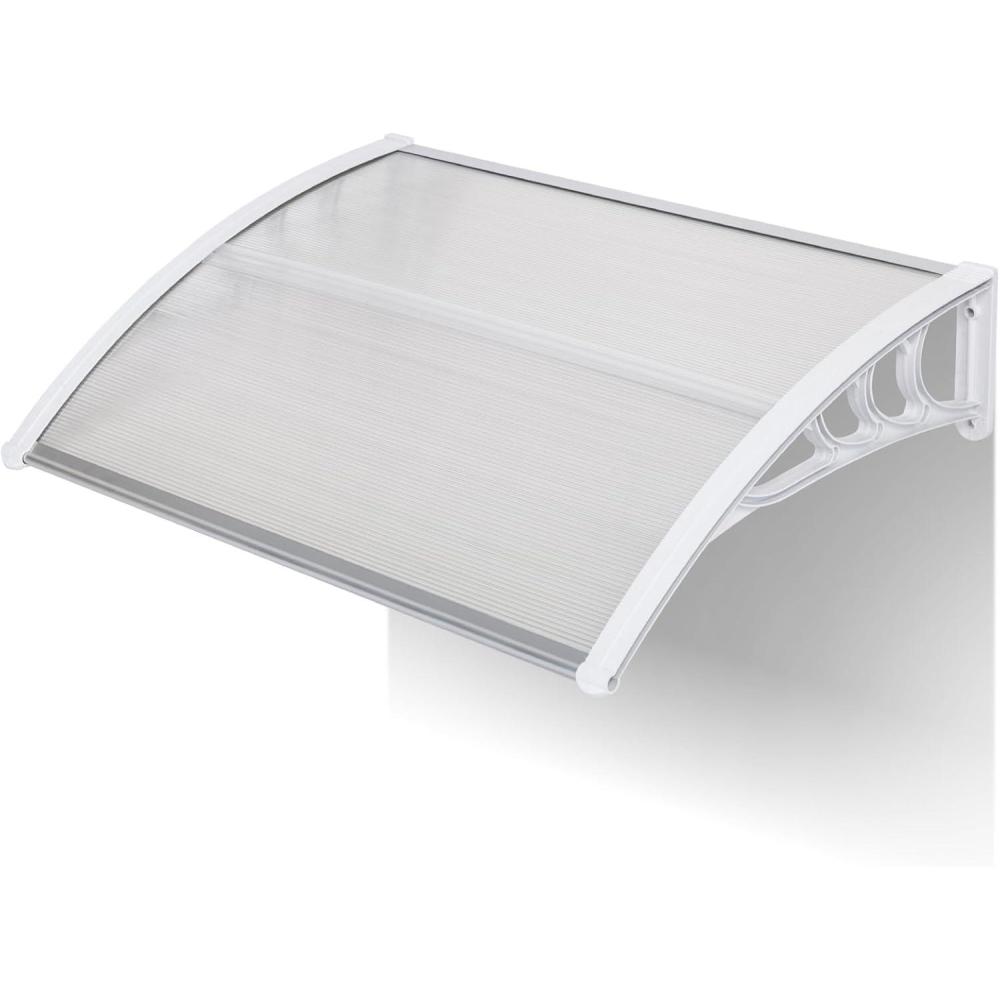 BUILT TO LAST – Constructed with a 5mm clear hollow polycarbonate panel, reinforced plastic brackets and aluminum bars, our patio door awning offers exceptional durability. This weather-resistant design prevents rust and corrosion, while the seamless surface ensures no leakage—combining a sleek appearance with lightweight sturdiness