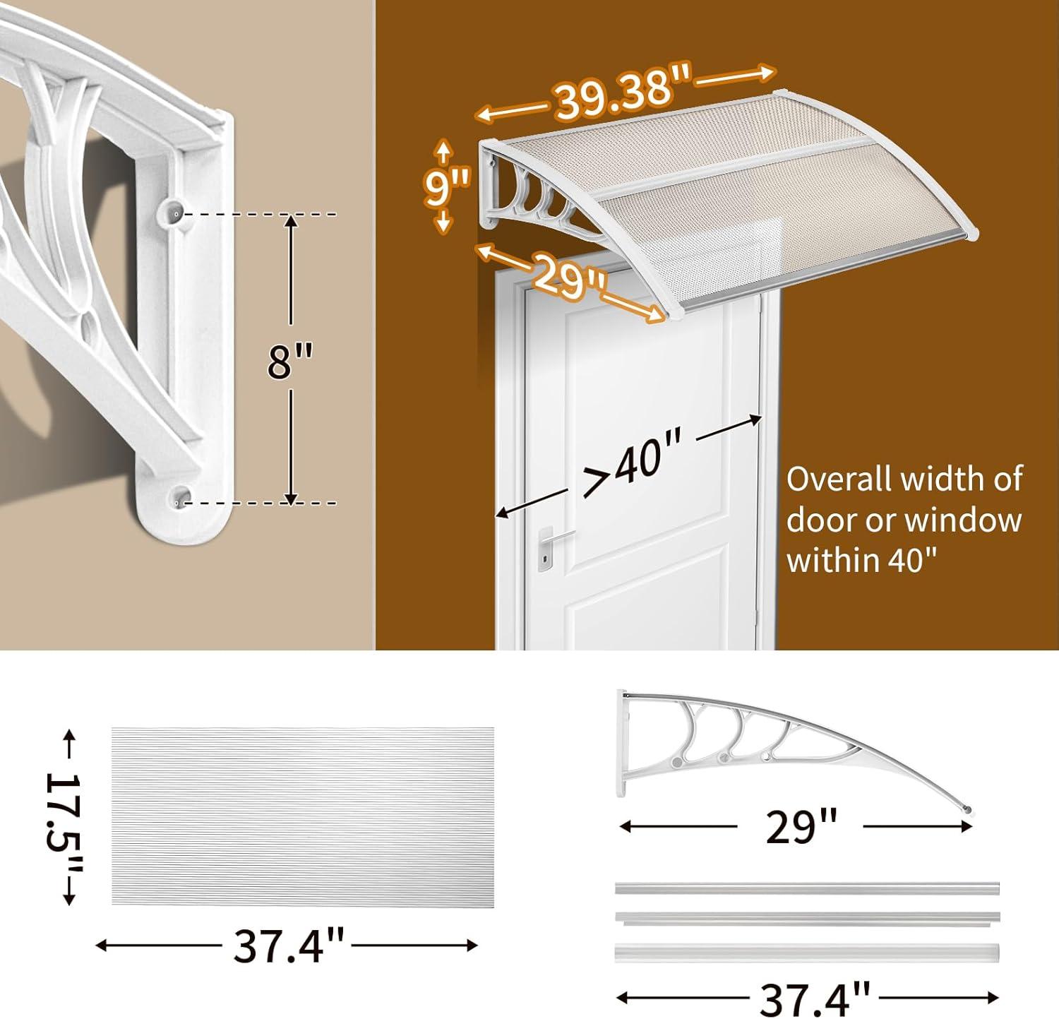 STYLISH DECOR – Available in neutral colors, our door awnings seamlessly complement any home or outdoor decor. Add a personal touch by hanging lights, small potted plants, or lightweight decorations on the brackets to enhance your garden's aesthetic. Please note that product colors may slightly vary due to lighting conditions or monitor settings