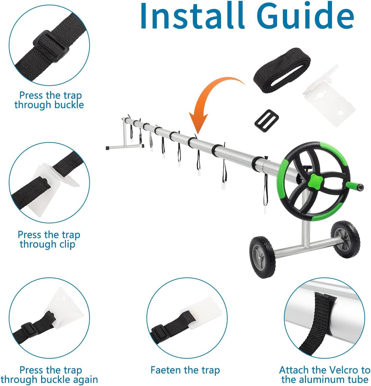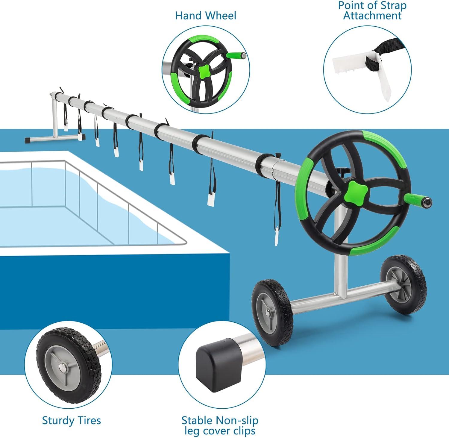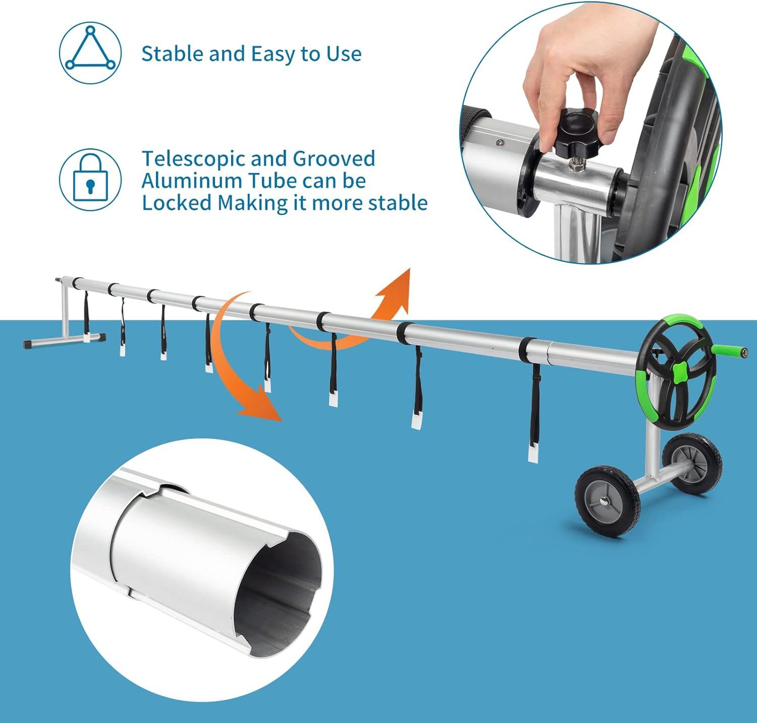 【DURABLE MATERIALS】 Pool cover reel is made of stainless steel and aluminum tubing. Aluminum tube diameter: 3.19″, featuring 5-section aluminum design pipe design, it would not droop even if it was used for a long time. This reel is very durable and can keep the pool clean every season