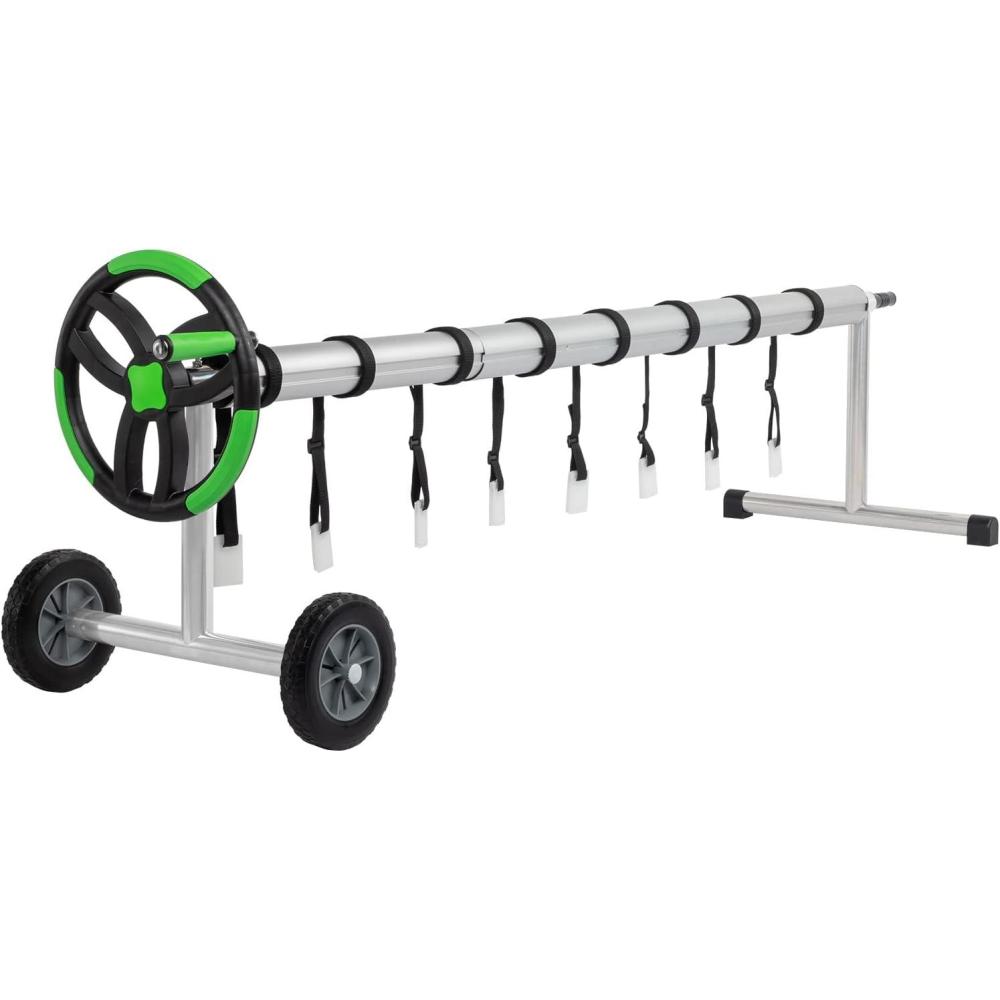 Outvita 18FT Pool Cover Reel Set, Solar Cover Aluminum Roller with Rubber Wheels for Inground Outdoor Swimming Pools, Adjustable Above Ground Pool Blanket Reels, Black