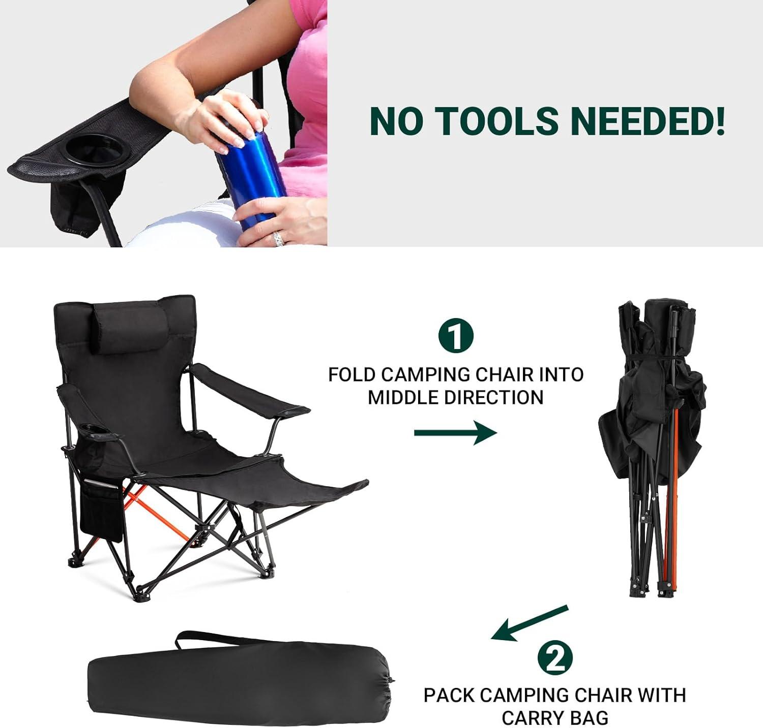 Versatile for All Occasions: Perfect for camping, fishing, picnics, beach trips, festivals, and backyard gatherings. These folding lawn chairs are designed to support you and a friend through countless outdoor adventures, offering versatility and convenience