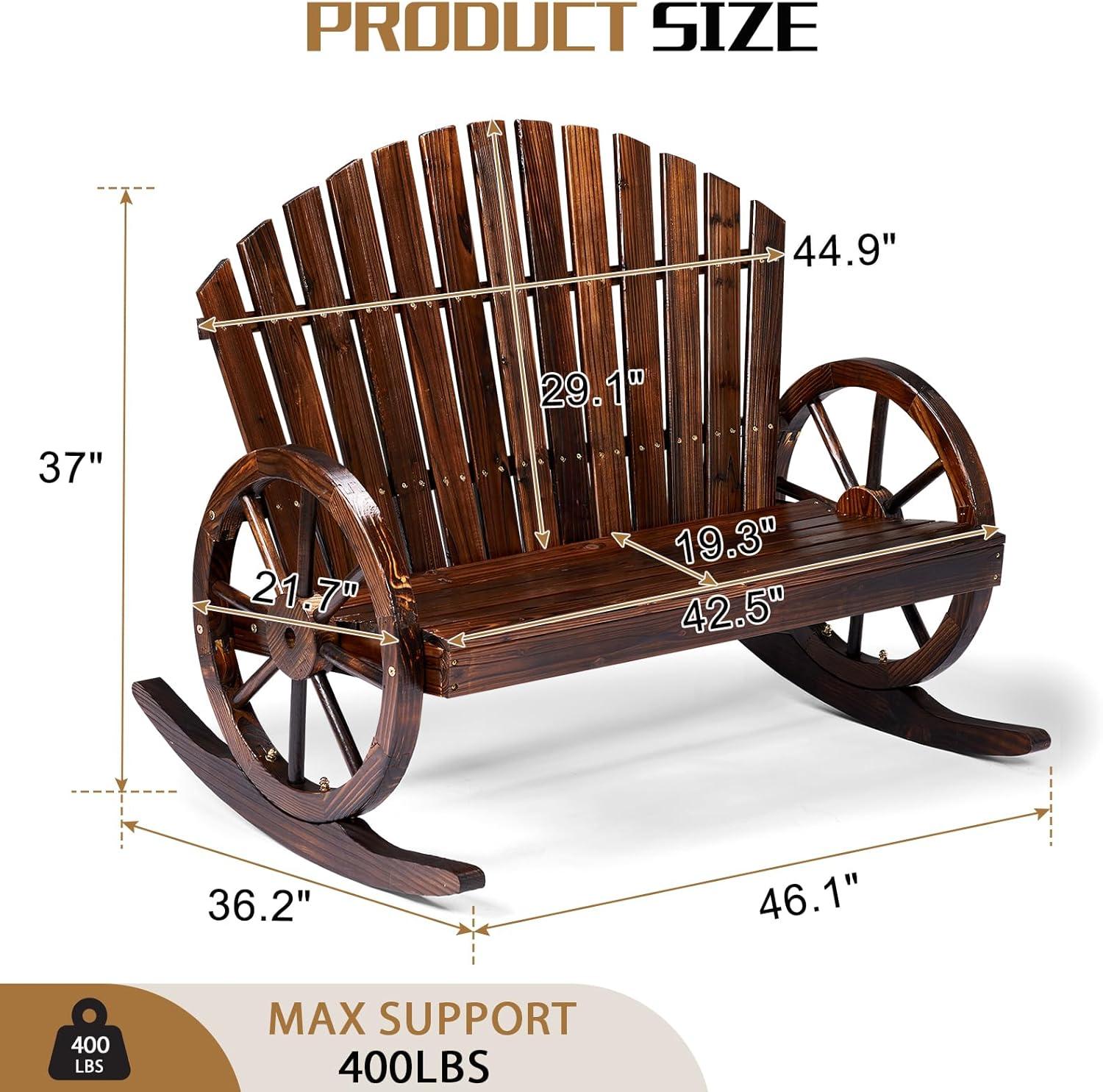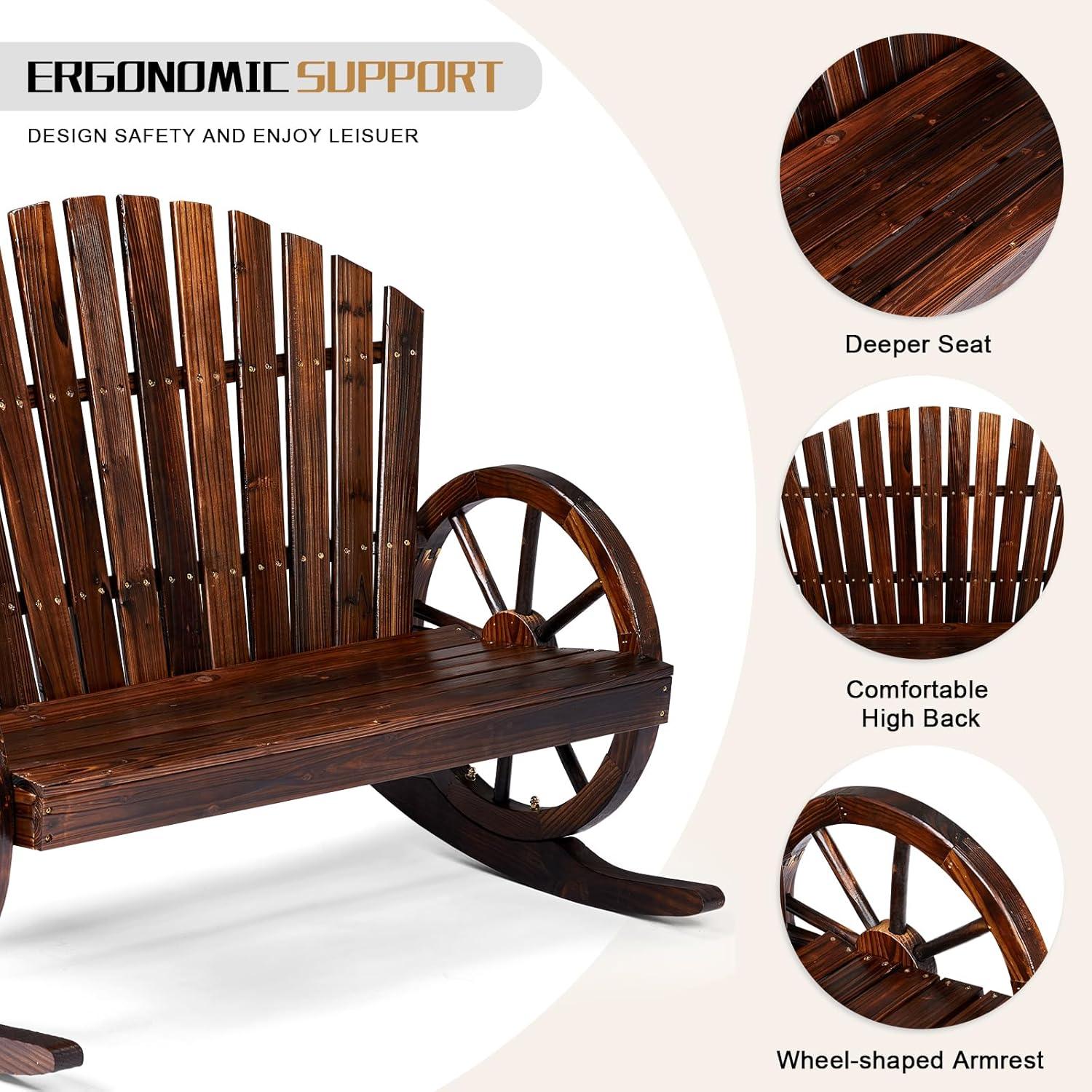 Outvita 2-Person Wood Rocking Chair, Fir Log Adirondack Rocker, Outdoor Wood Accent Furniture Lounge Chairs with Wheel Armrest for Garden Patio Backyard Porch (Carbonized Finish)(Carbonized Finish)