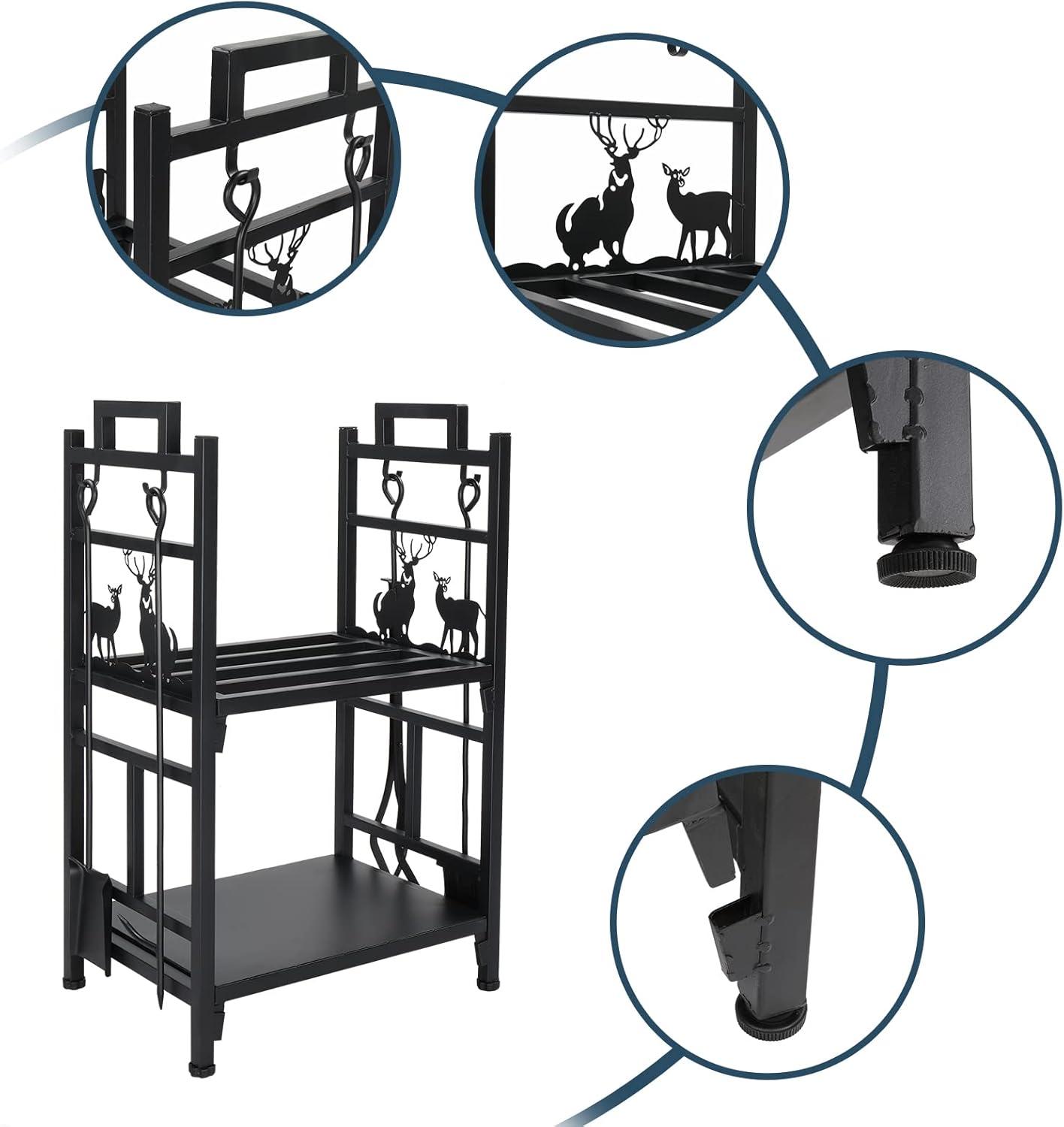 imageOutvita 2 Tier Firewood Log Rack Iron Lumber Storage Holder Wood Pile Stacker Organizer for Indoor Outdoor Fireplace Fire Stove Pit With 4 Fire Tools Hanging Hooks Christmas Elements Black13D x 179W x 174H