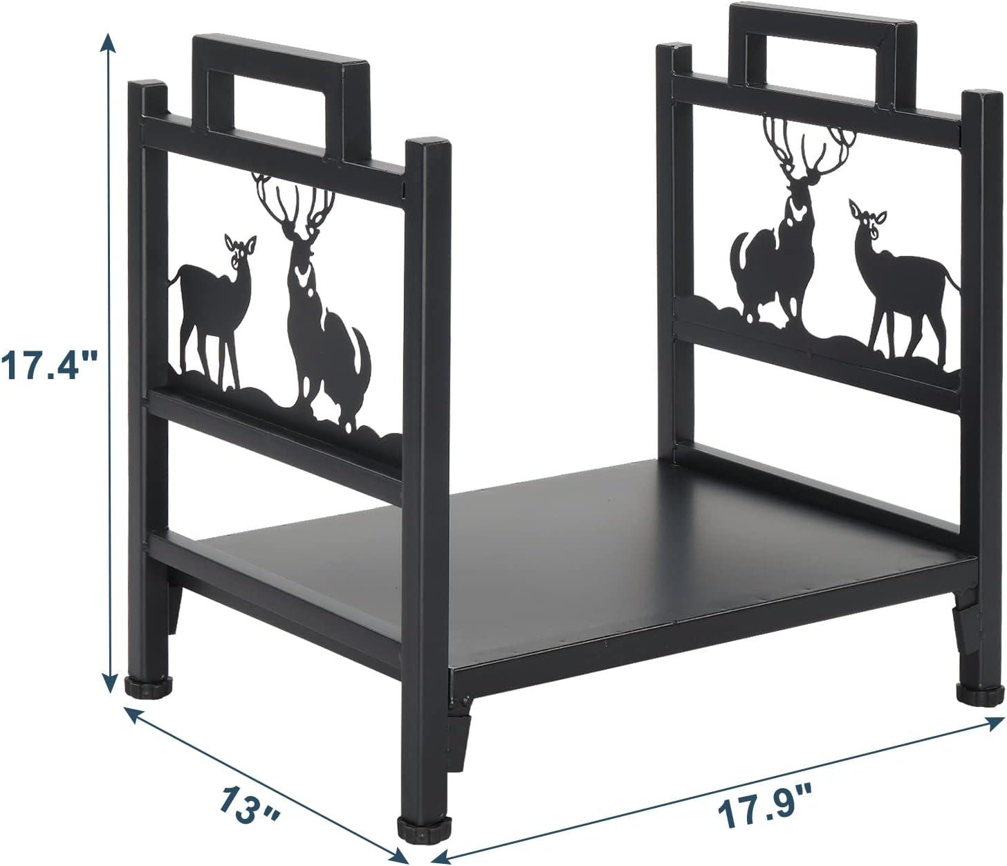 【SPACIOUS SIZE】This firewood rack brackets measures 17.9 x 13 x 29.7 inches (L x W x H), which is features 2 storage shelf for holding enough to keep a nice warm last through days. Small size metal wood holder frame is perfect for indoor and outdoor use without taking up much space and easy to move by yourself. It's your best choice for you and your family to enjoy a cozy evening chat by the fireplace