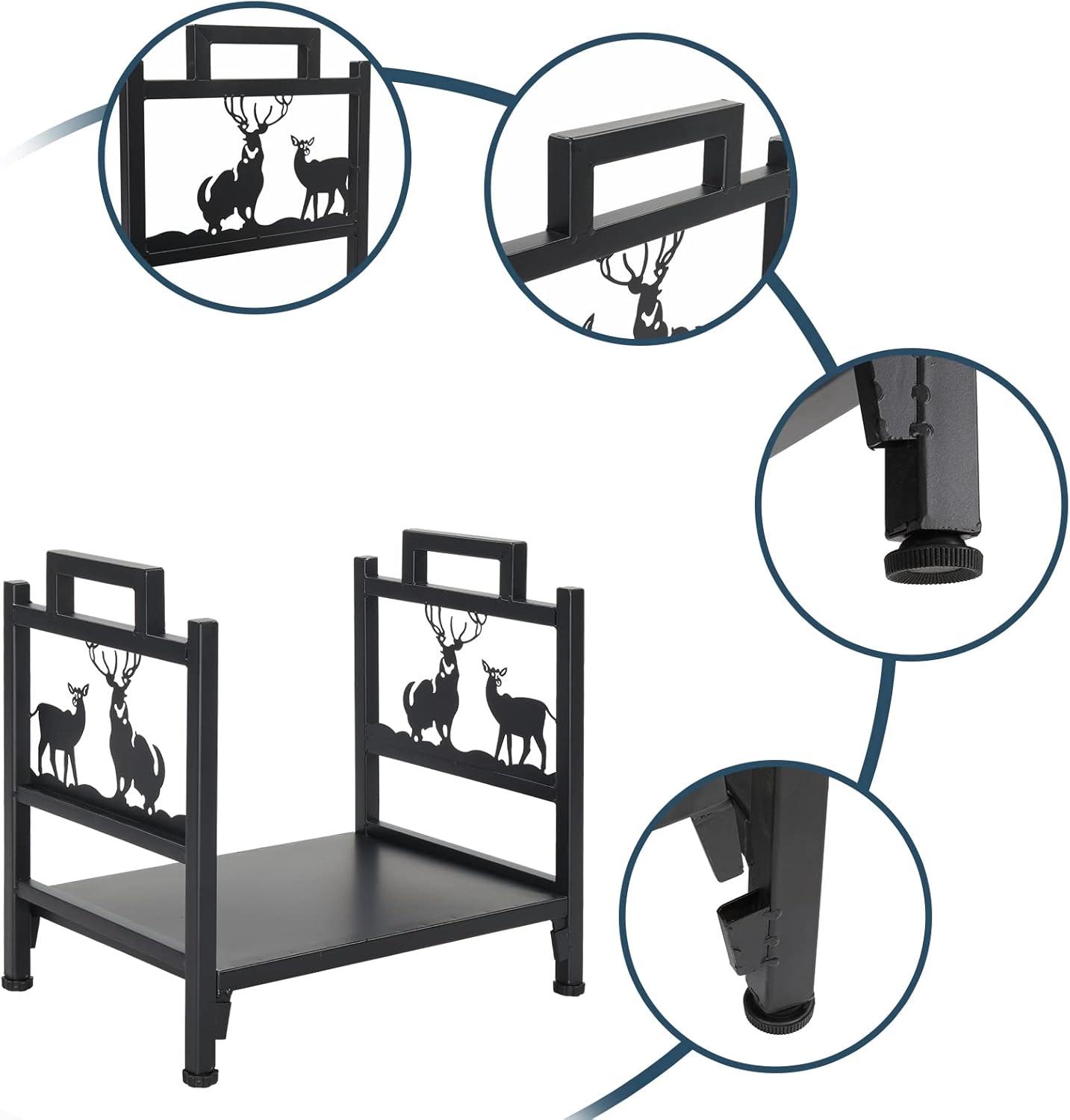 【STYLISH PATTERN & WIDELY APPLICATION】Cute pattern of elk and Christmas tree adds style and brings elegance for the indoor firewood rack, creating a warm Christmas and winter family atmosphere. The space saving log stand rack is perfect for storing and stacking woodpiles or logs for your fireplace, fire pit, wood burning stove, living room, kitchen, backyard, garden, deck, shed,garage ,and so on