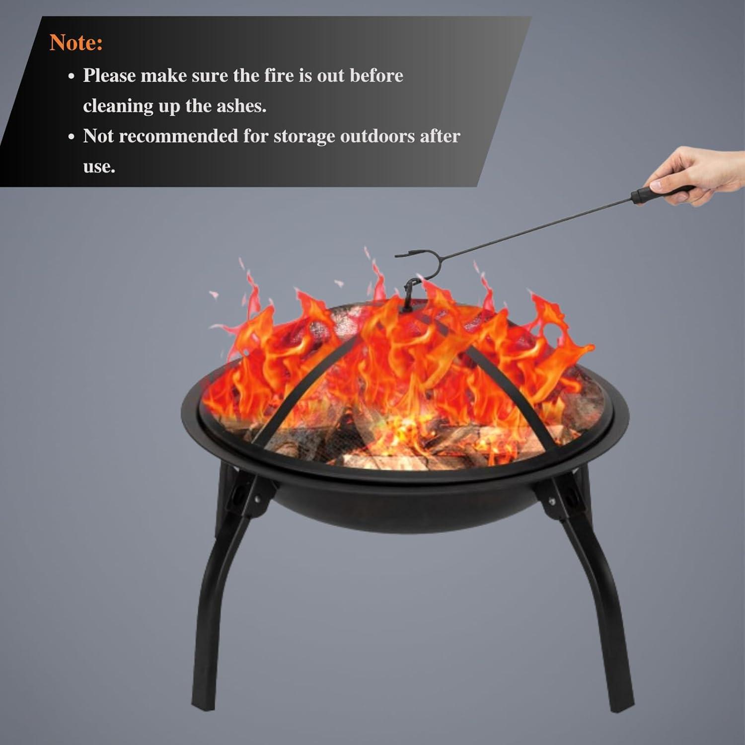 Outvita 22inch Fire Pit, Portable Wood Burning Firepit Lightweight BBQ Grill Firepit Bowl with Log Grate&Poker & Foldable Legs for Outside Barbecue Patio Picnic Party(7.7 Pounds)