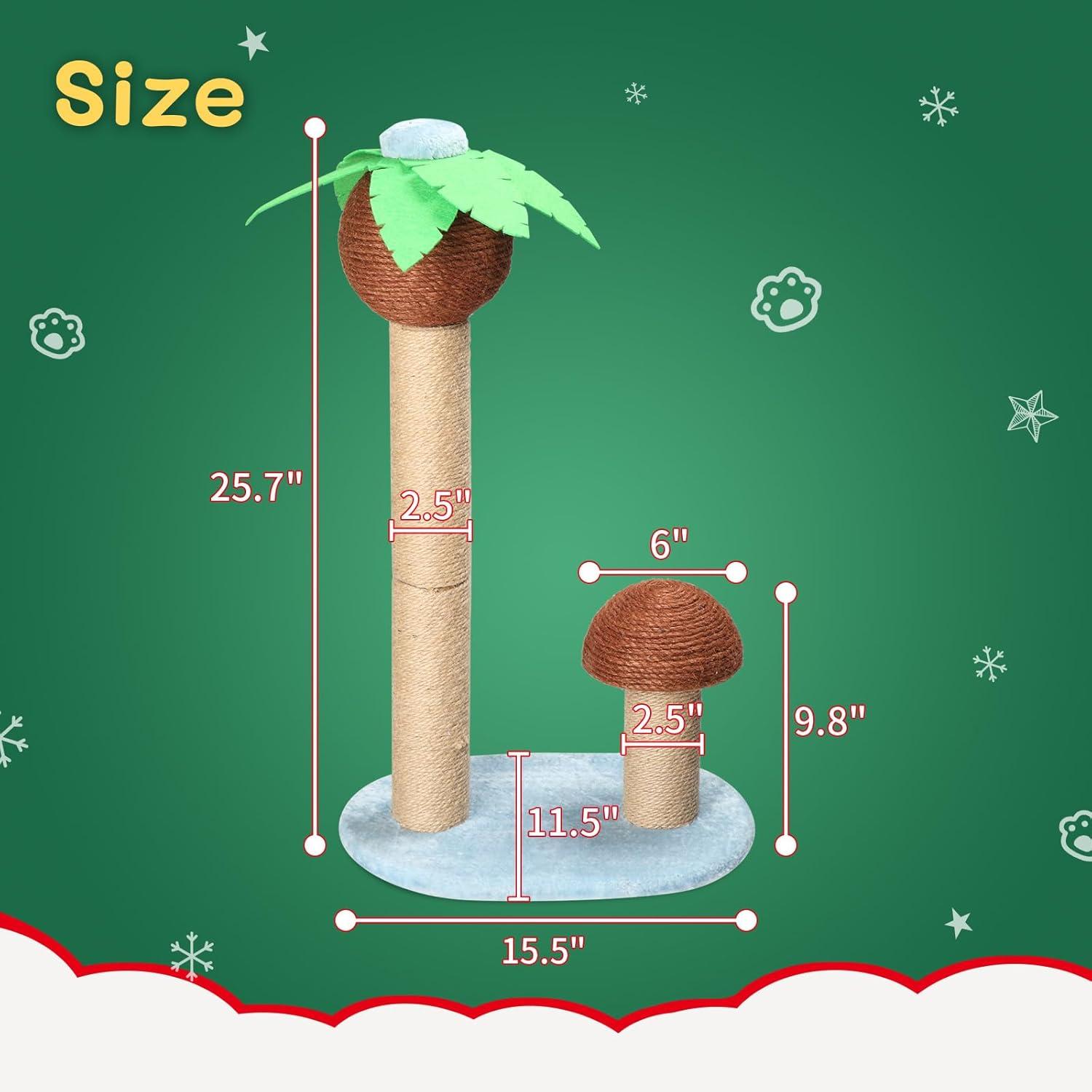 Bring a tropical twist to your cat's playtime with the Coconut Palm Tree Cat Scratching Post. Designed with 100% sisal posts, this scratching post satisfies your cat's instinct to scratch while adding a fun, decorative element to your home. The sturdy base ensures stability during active play, and the attached mushroom scratcher provides extra entertainment for your feline friend. Easy to assemble and perfect for indoor cats, this playful scratcher will keep your pet engaged and your furniture protected.