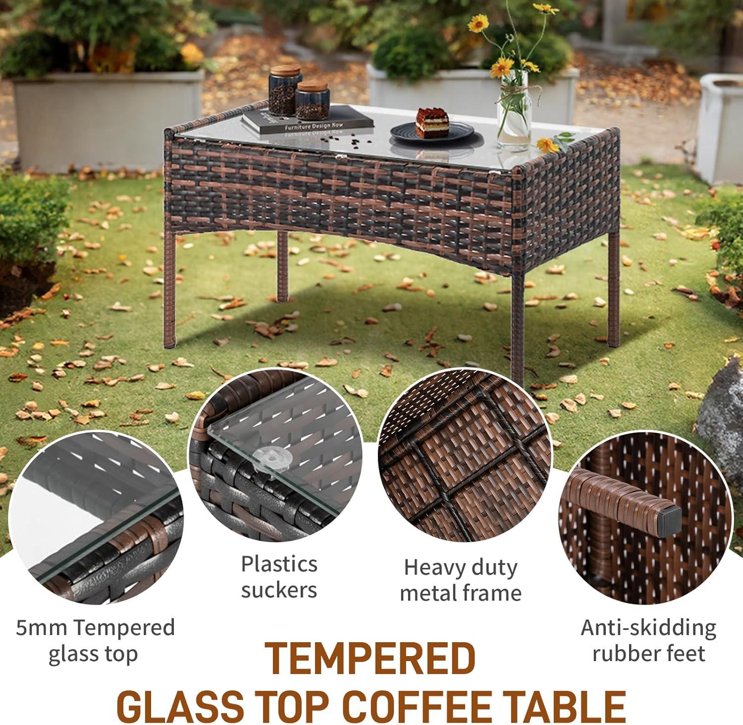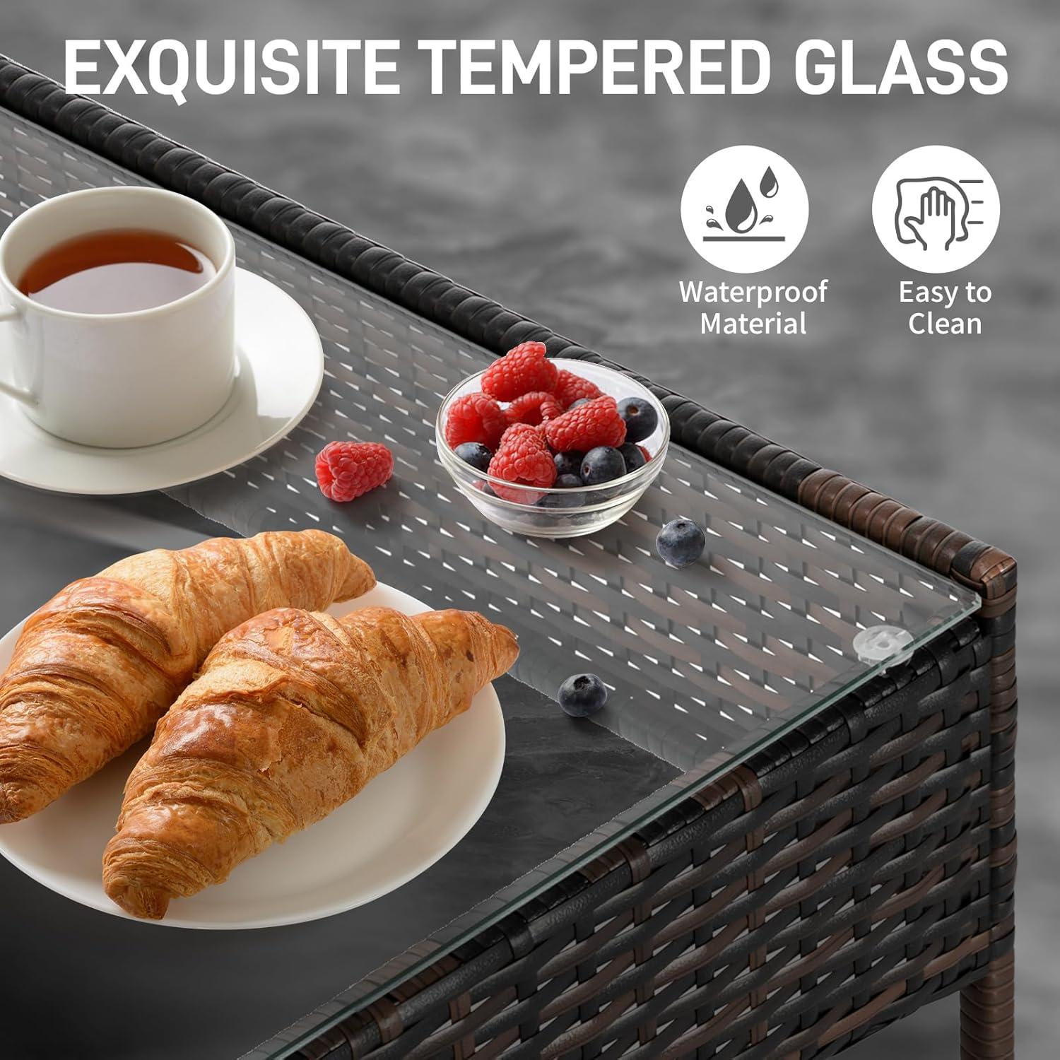 【Elegant Glass Table Top】 The high-quality tempered glass table is perfect for drinks, coffee, food, books and decorations. It's easy to clean and perfect for outdoor use