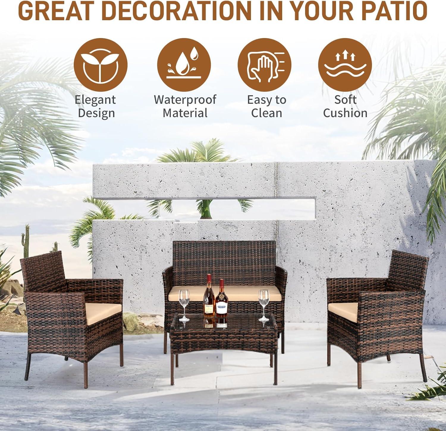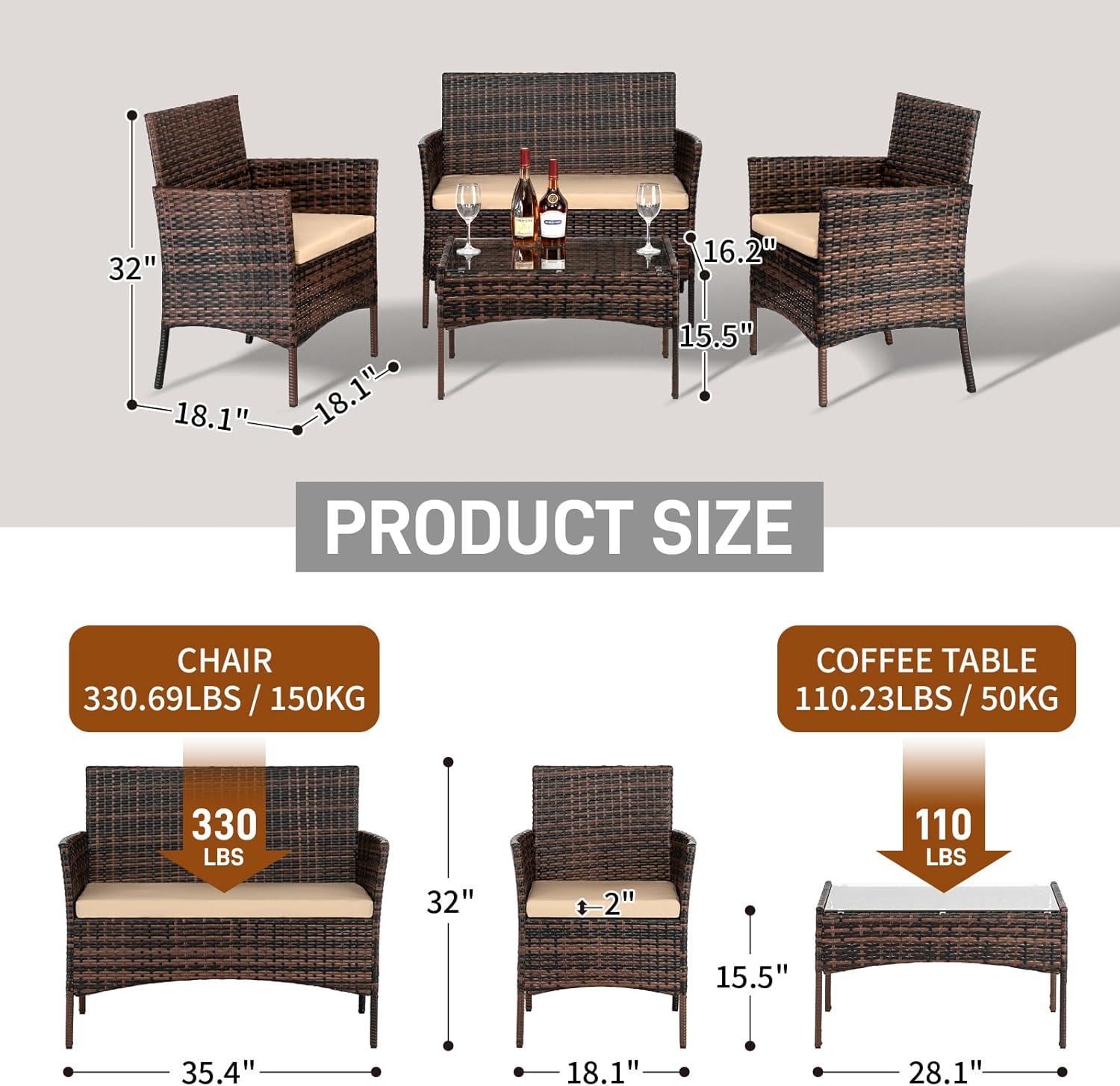 【Sturdy and Durable】 Made with all-weather synthetic resin PE rattan wicker and a solid, rust-proof powder-coated steel frame, each seat supports up to 250 lbs for long-lasting use.Plus, our anti-rust and anti-corrosion process ensures they stay looking great