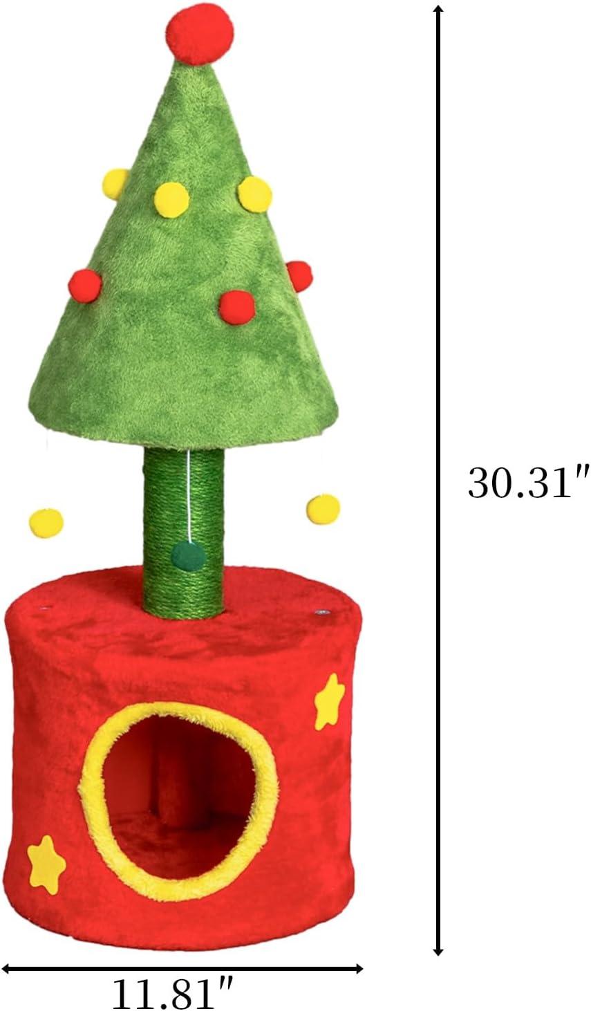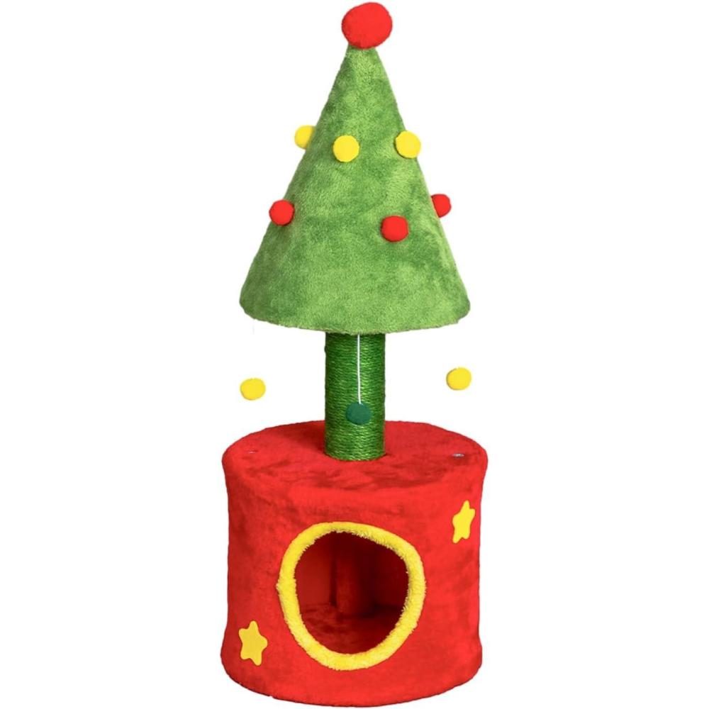 Christmas Tree Design: Inspired by classic holiday décor, this cat tower brings a fun, seasonal twist to your pet's play area while blending beautifully with your Christmas decorations.