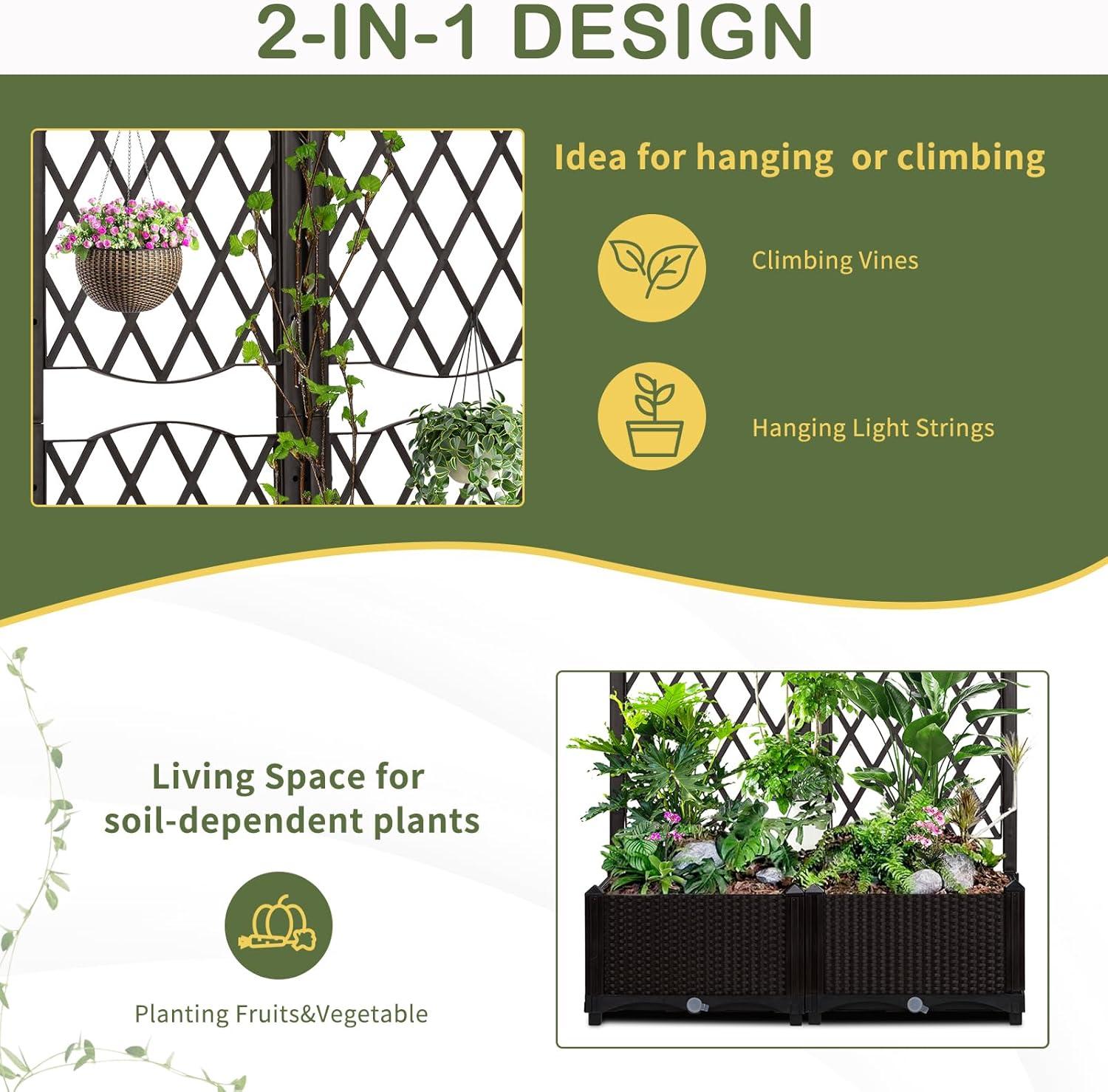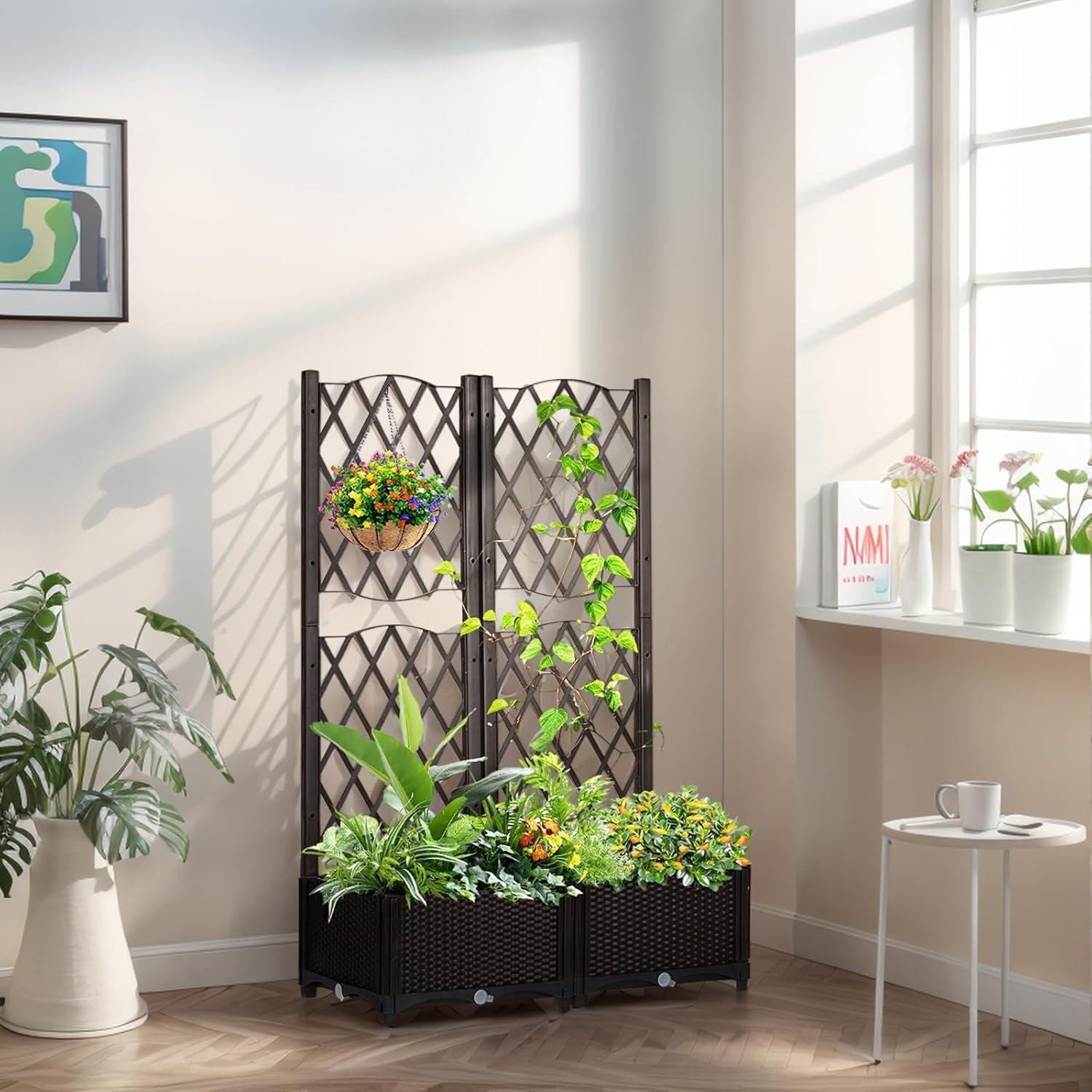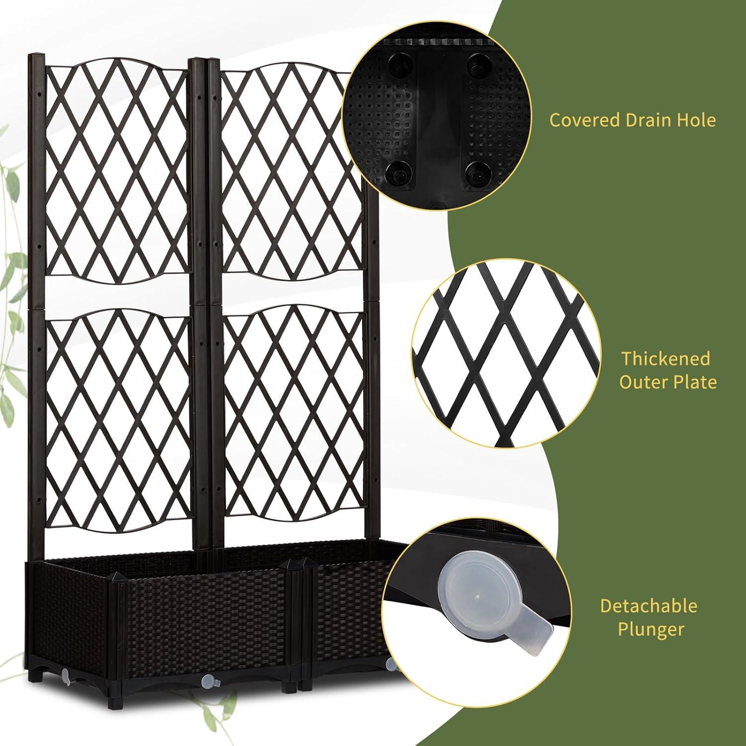 Enjoy a beautiful, organized and vibrant garden with this versatile and stylish lattice planter. It is perfect for vines, flowers or lush greenery, bringing elegance and functionality to any space! This freestanding garden bed is made of high – quality polypropylene wicker. It can withstand harsh weather conditions while providing durability and style. With a built – in lattice, it offers the necessary support for climbing plants, flowers or lush greenery, transforming your patio, balcony or garden into a stunning floral oasis. The carefully designed planter has built – in drainage holes to ensure optimal plant health, preventing waterlogging and ensuring your plants thrive.