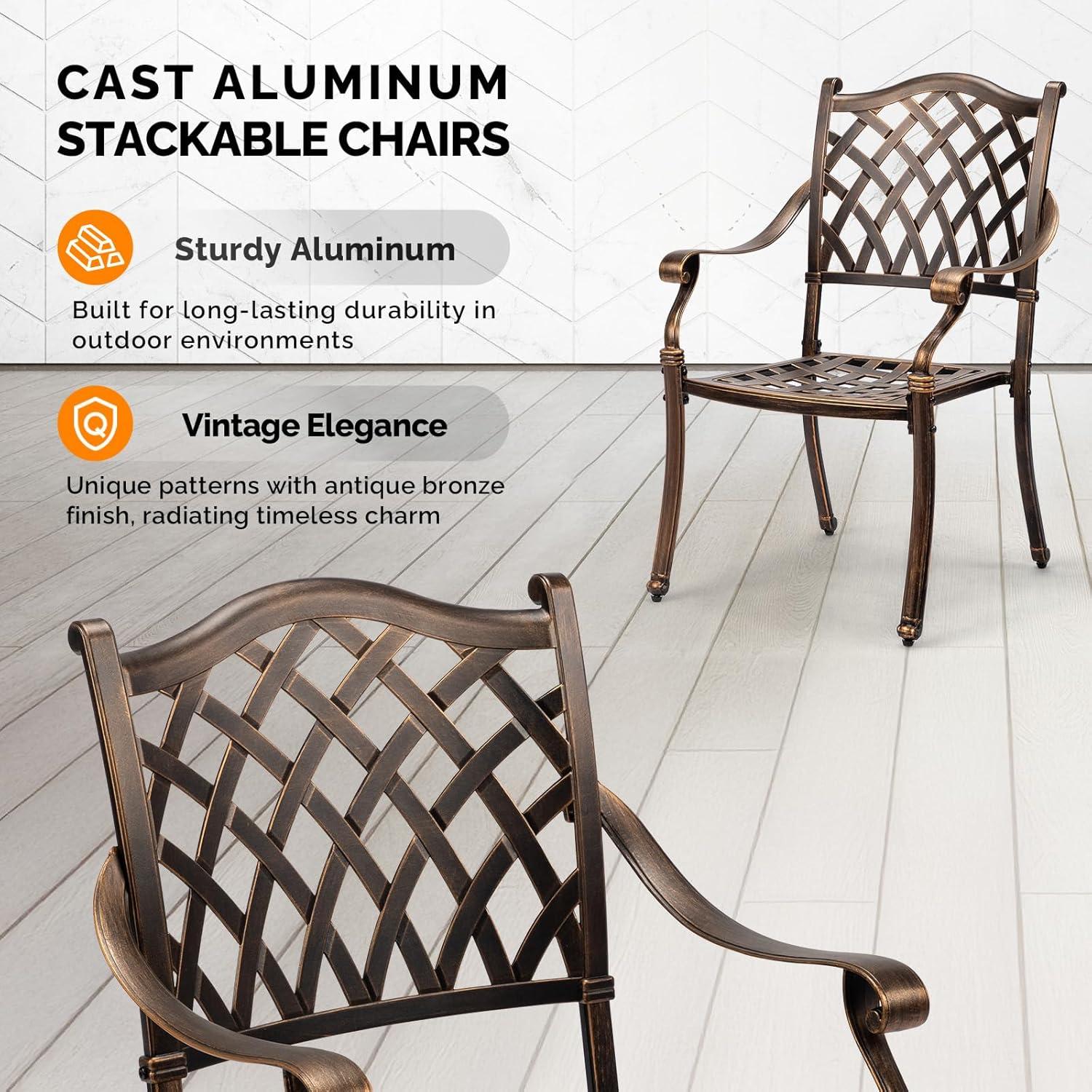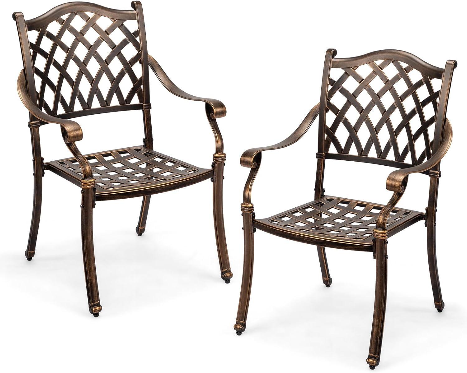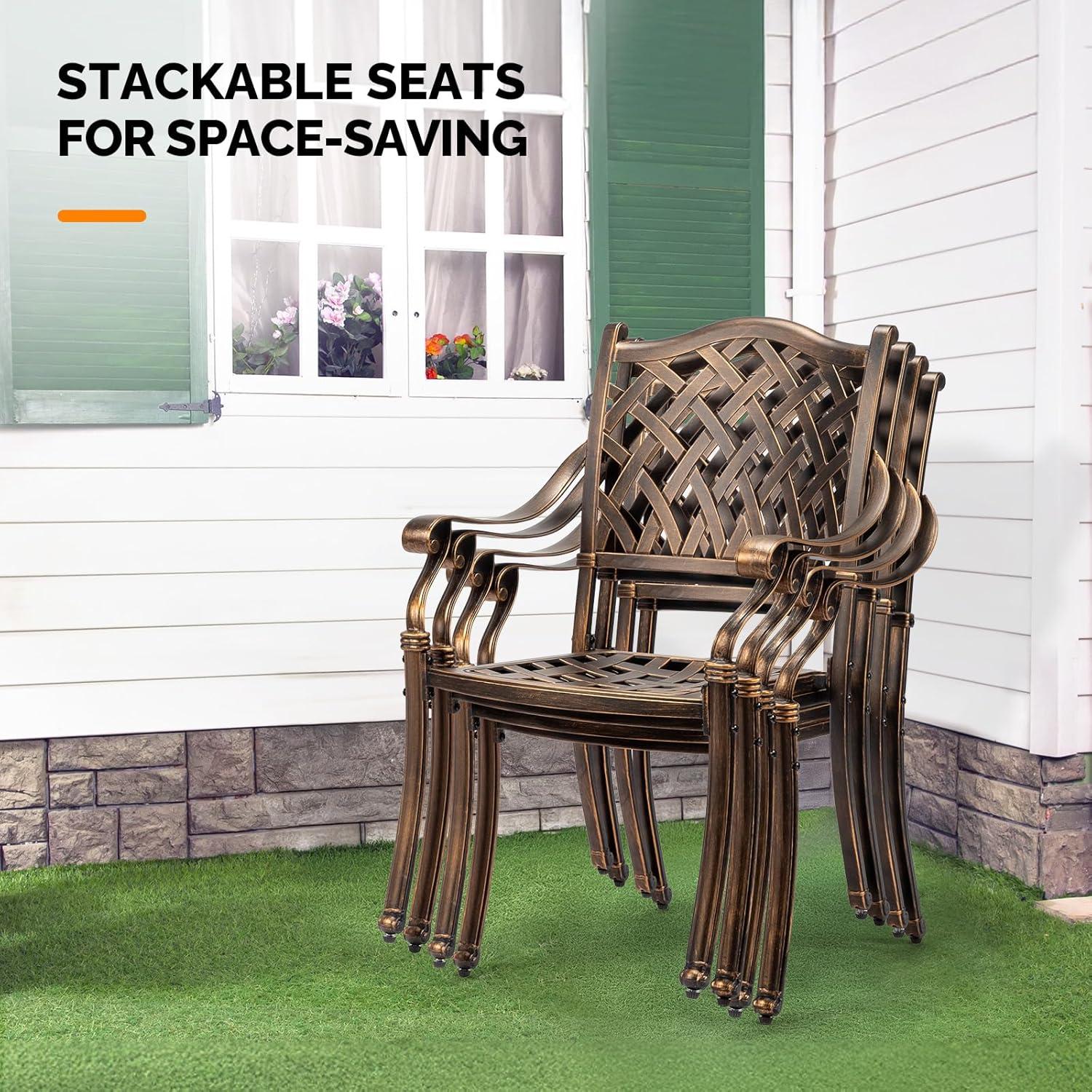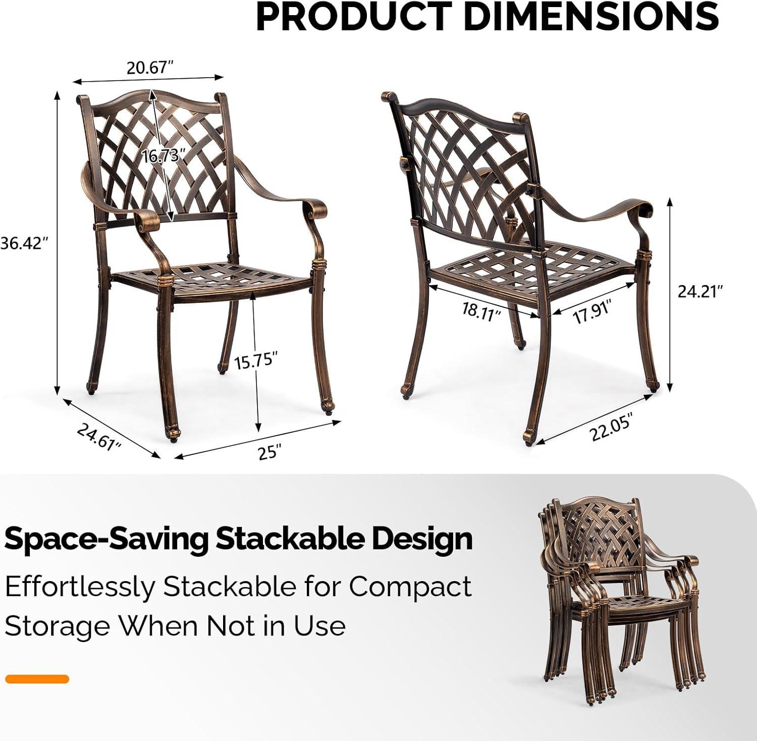 DELICATE DESIGN: Enhance your garden with the hollow carved pattern of these cast aluminum dining chairs. The detailed design adds an elegant touch, perfect matching with your patio furnitures. The ergonomic cupped seats ensure comfortable seating all year round