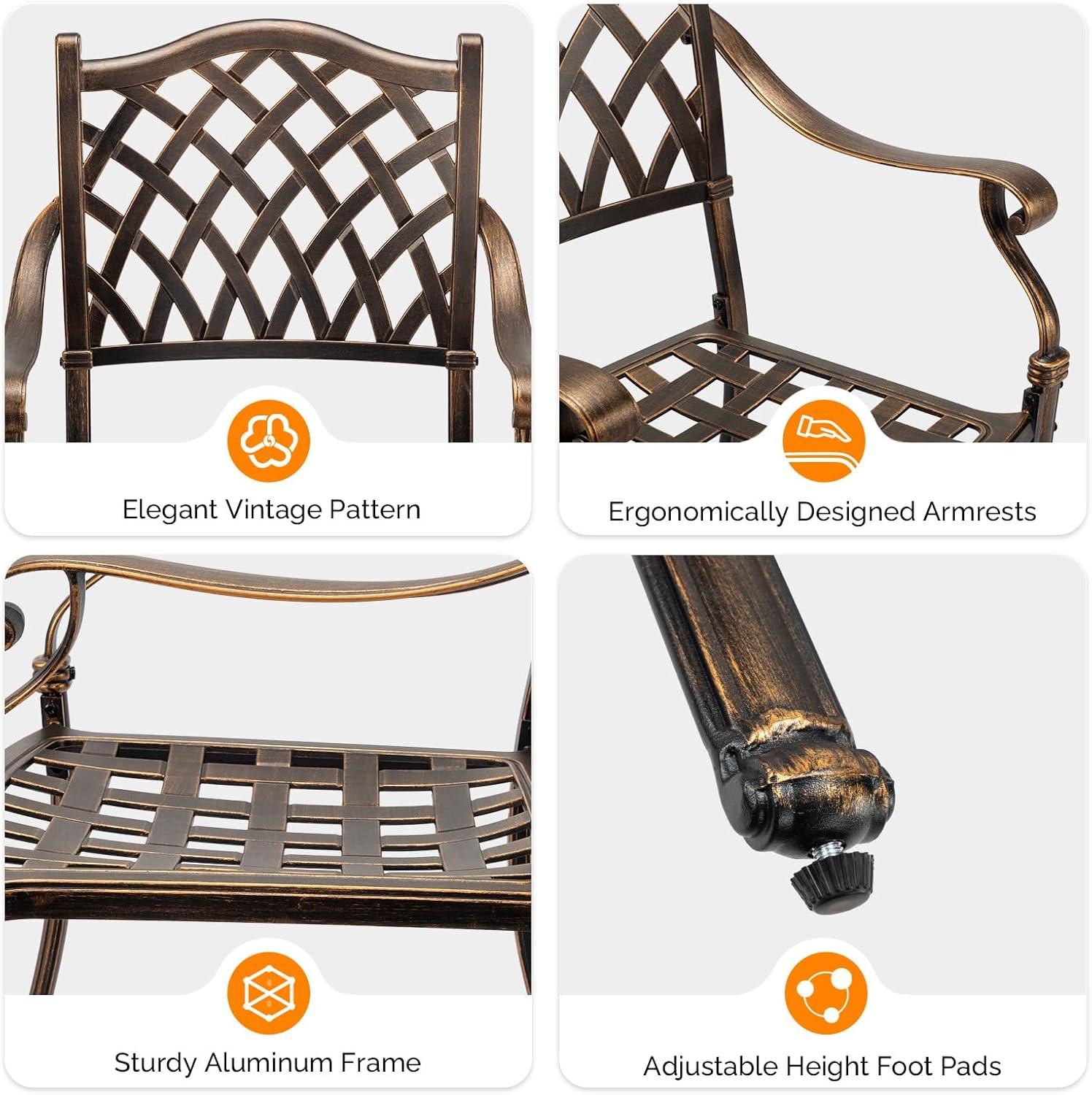 1.Durable Cast Aluminum Construction: Crafted with heavy-duty rust-proof cast aluminum, these outdoor patio chairs withstand harsh weather, rain, and UV exposure while resisting corrosion. Perfect for long-lasting use in gardens, poolside, or coastal areas