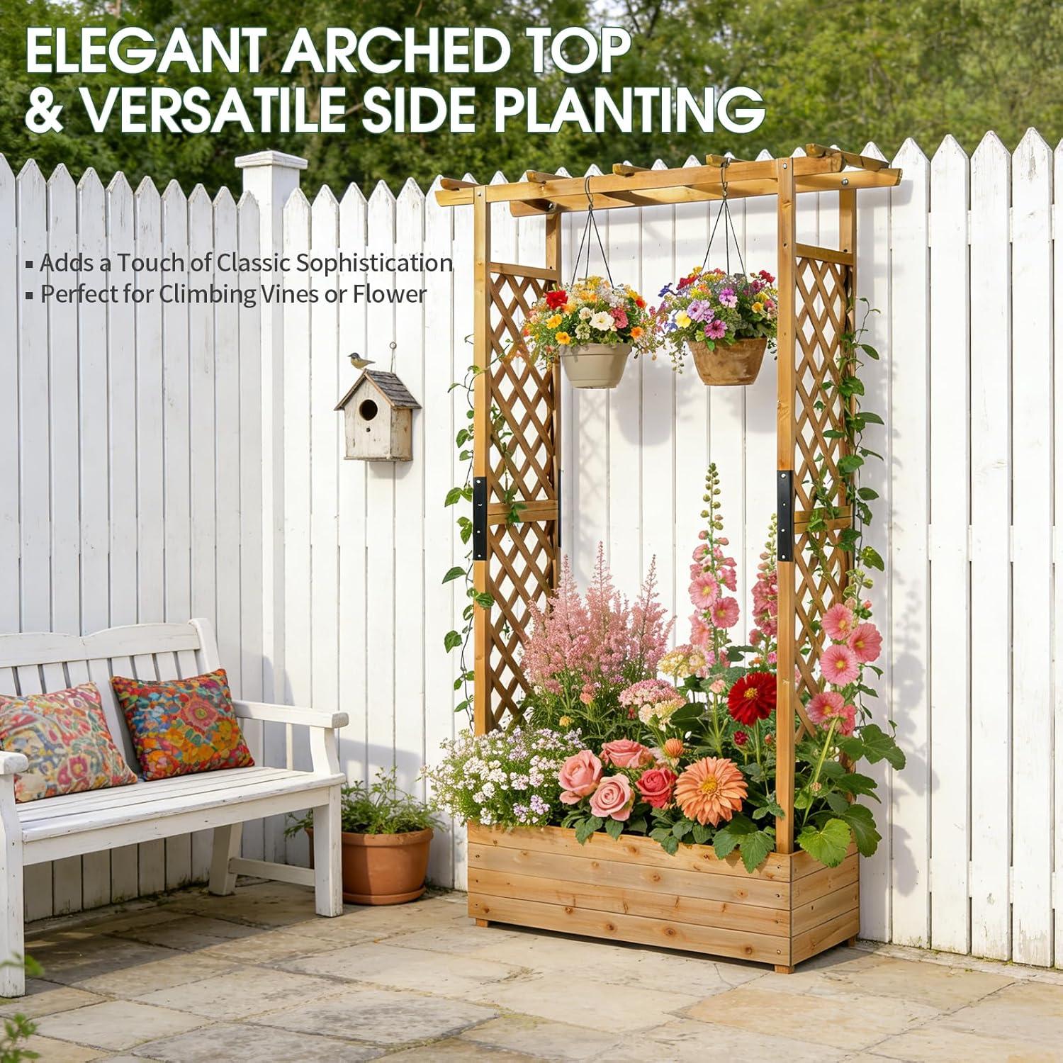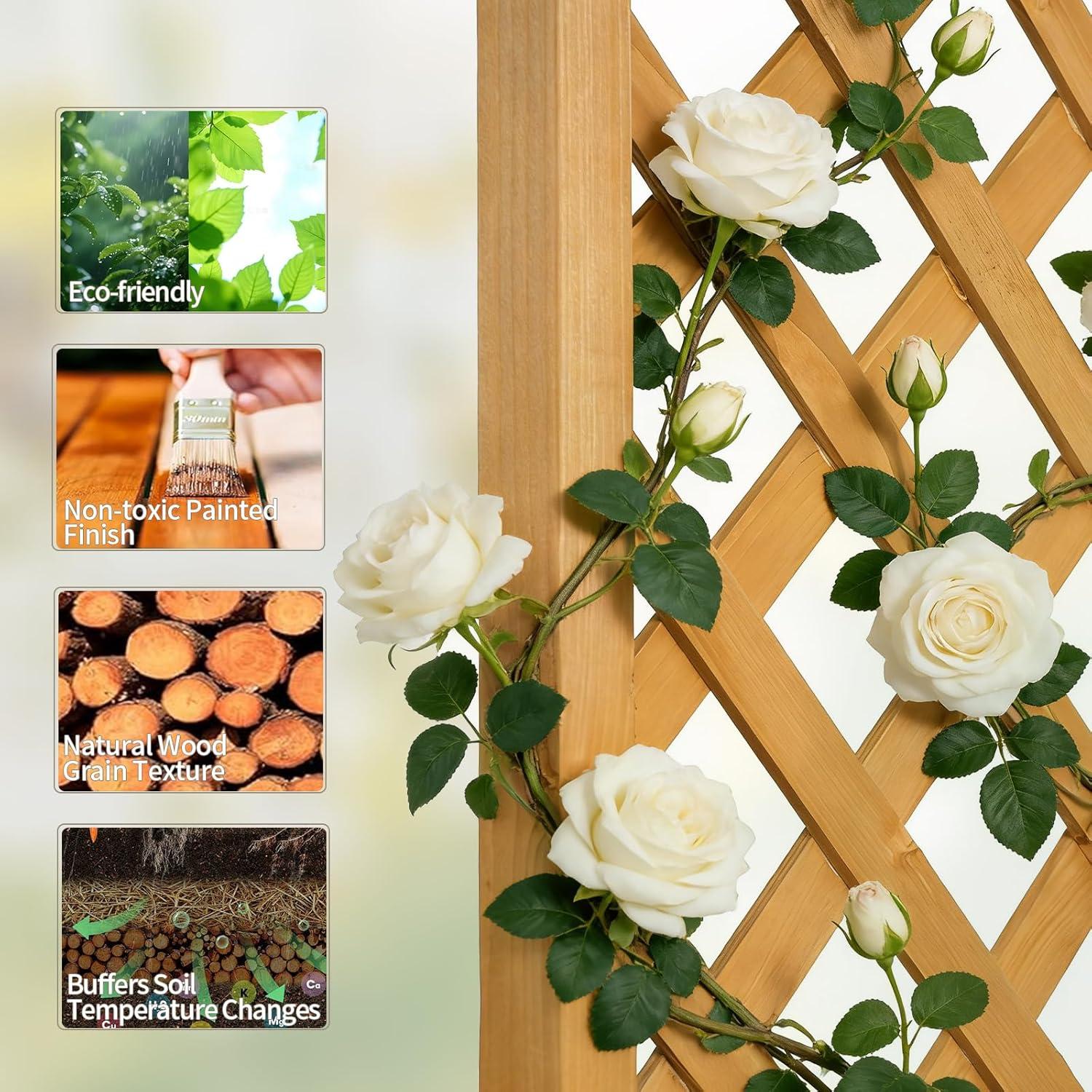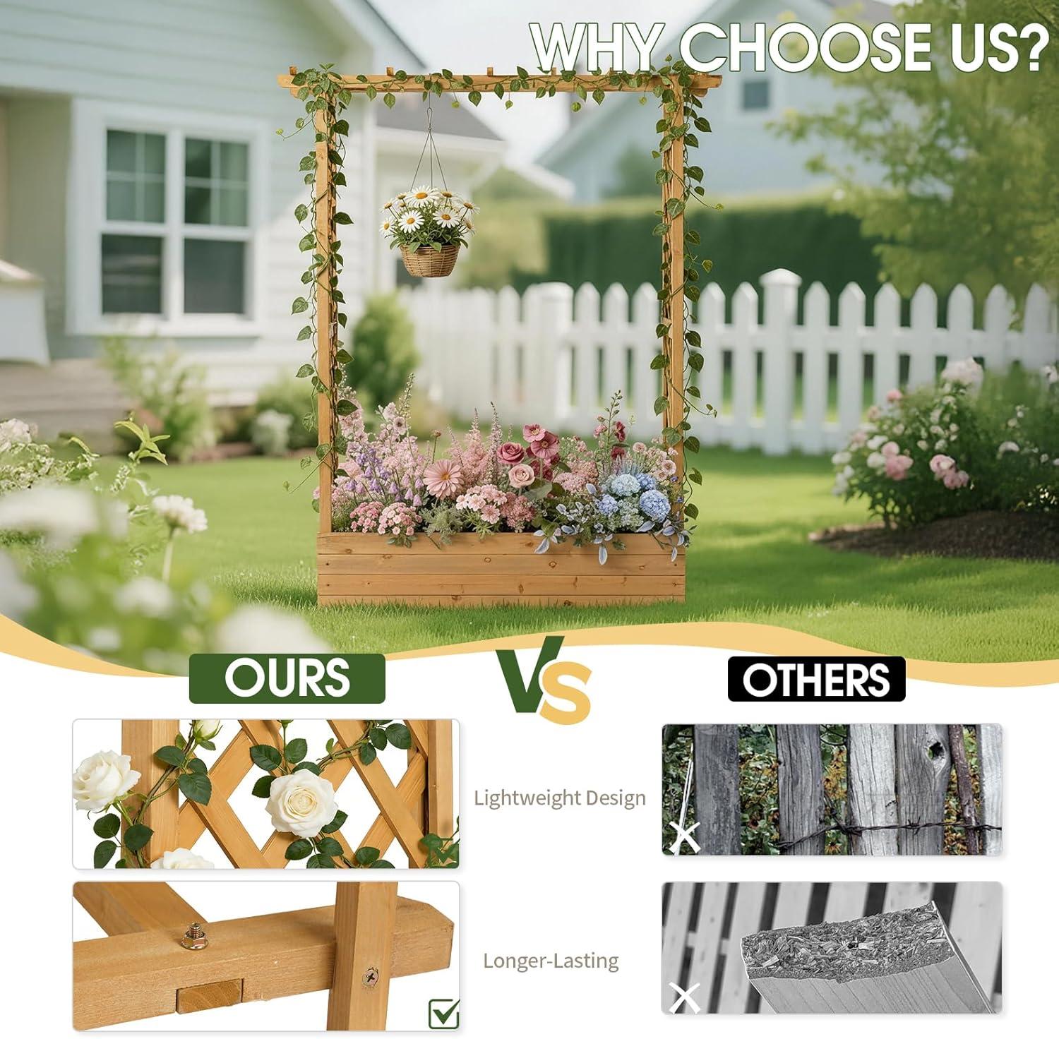 【Sturdy Design】The wood planter with trellis is crafted with 100% natural fir wood and coated with waterproof painting, which is characterized by high strength and weather resistance. You can put some rocks in the planter to increase stability