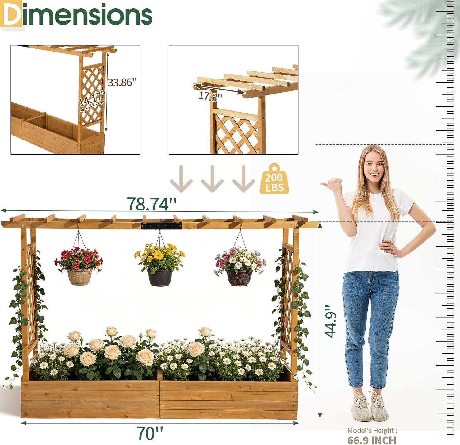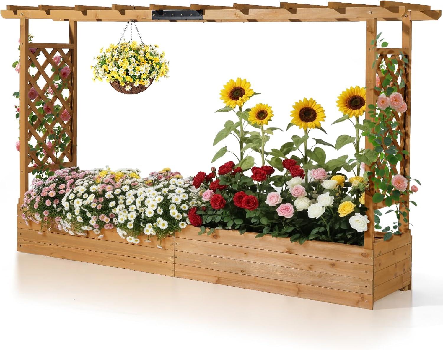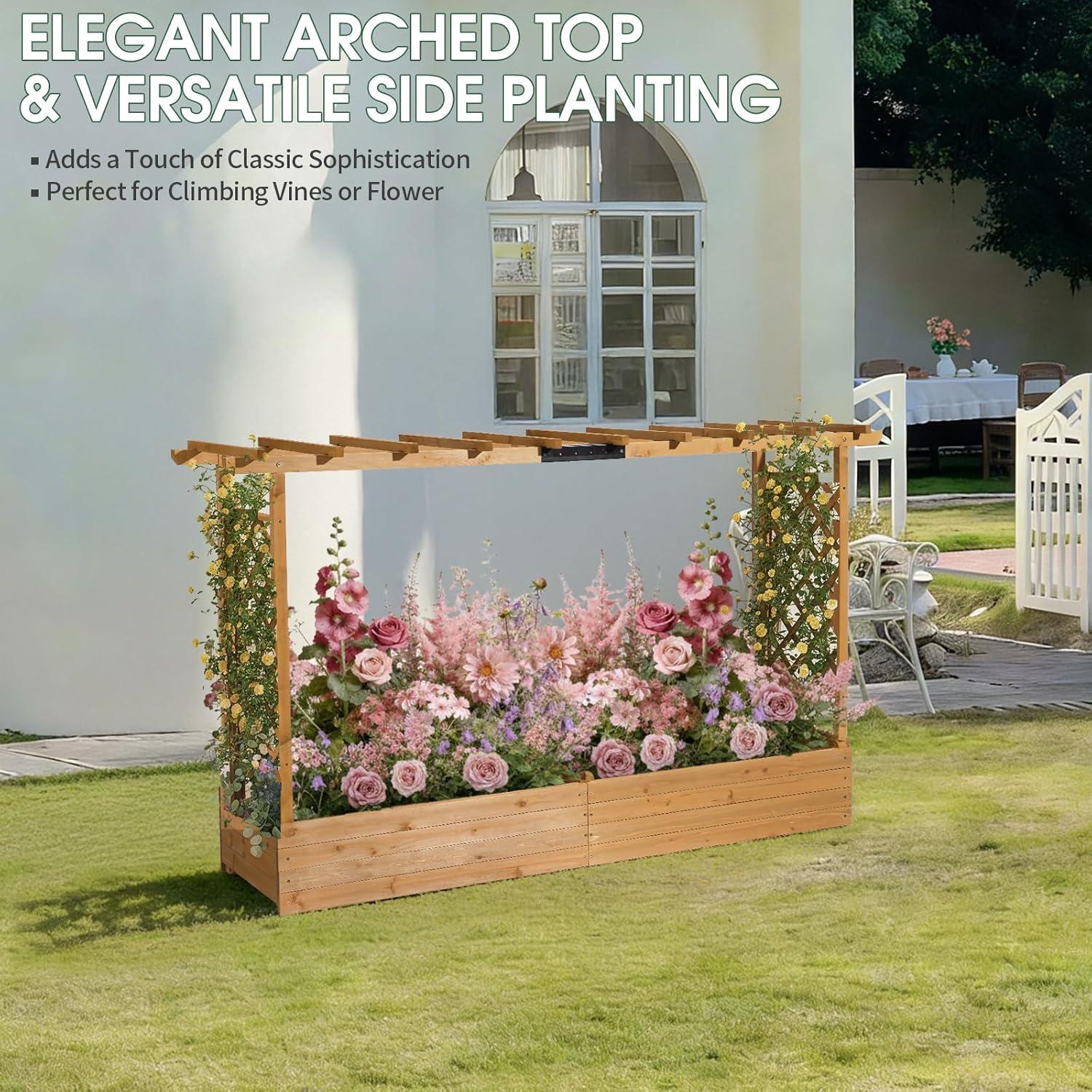 【Garden Bed with Trellis】The raised garden beds outdoor is designed with a large planter box for cultivating cucumbers, flowers, veggies, etc. Moreover, there exists a hanging roof and 2 side trellises for climbing plants. You can also hang some lights and decorations on it
