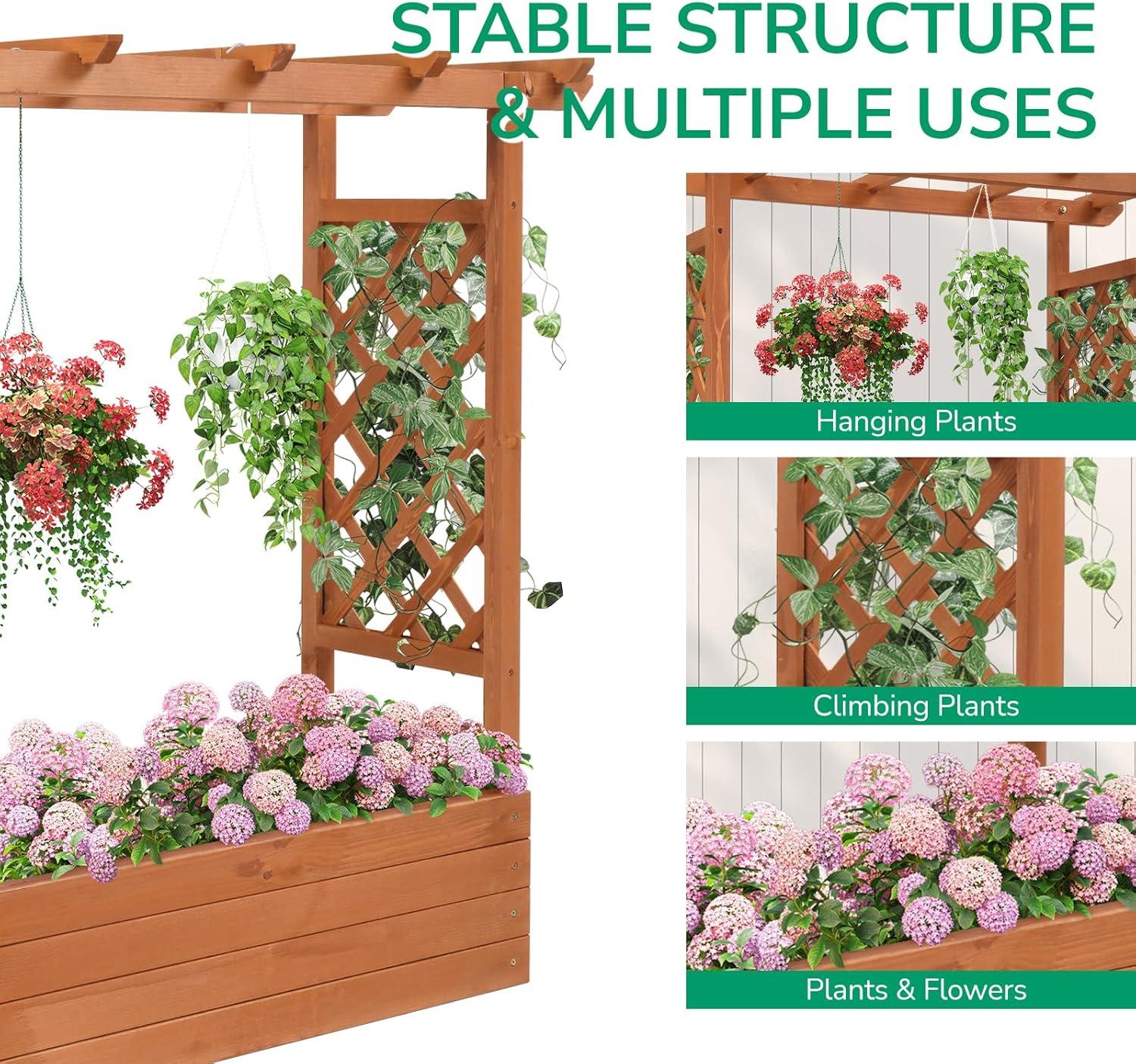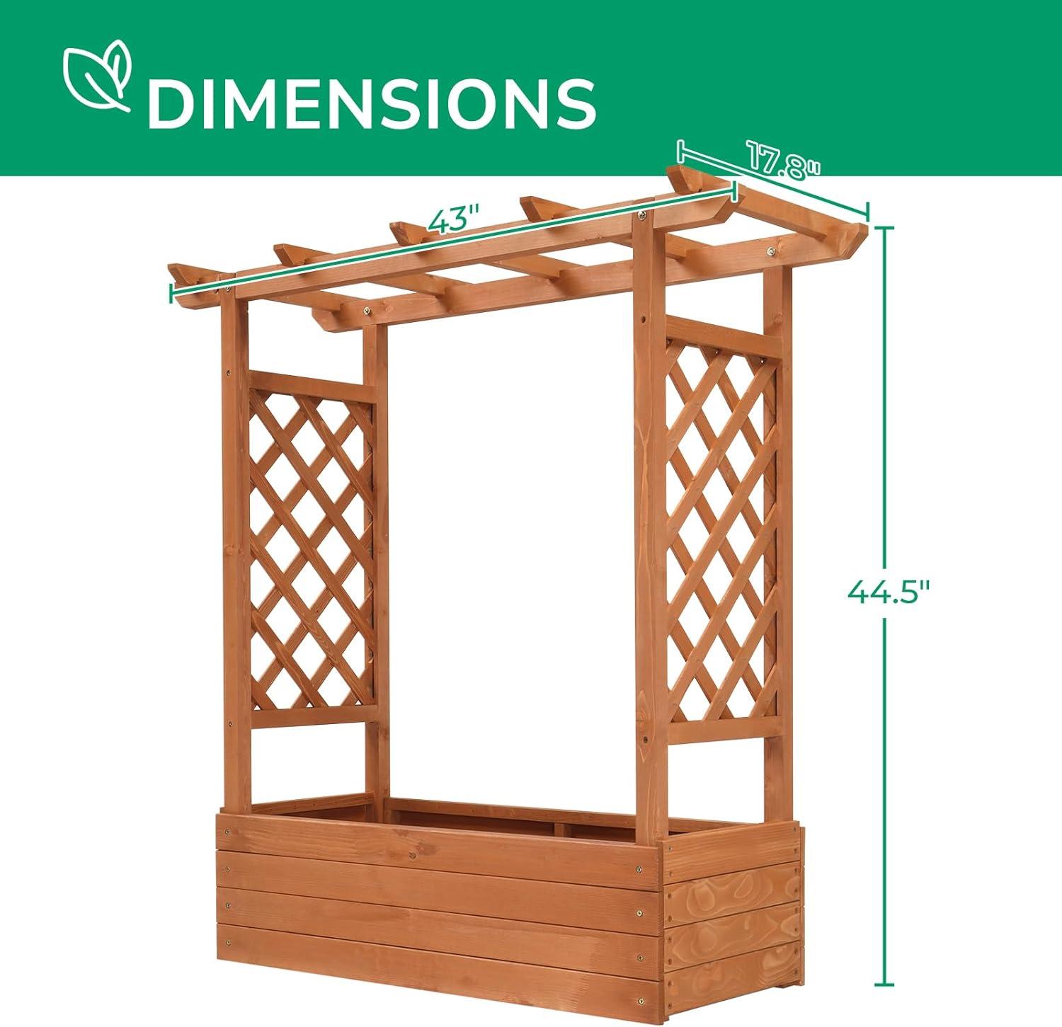 imageOutvita 45 Raised Garden Bed with Trellis Wood Planter Box with Hanging Roof Side Trellis and Drainage Holes Above Ground Elevated Garden Bed for Outdoor Climbing Plants VegetablesTeak ColorOrange