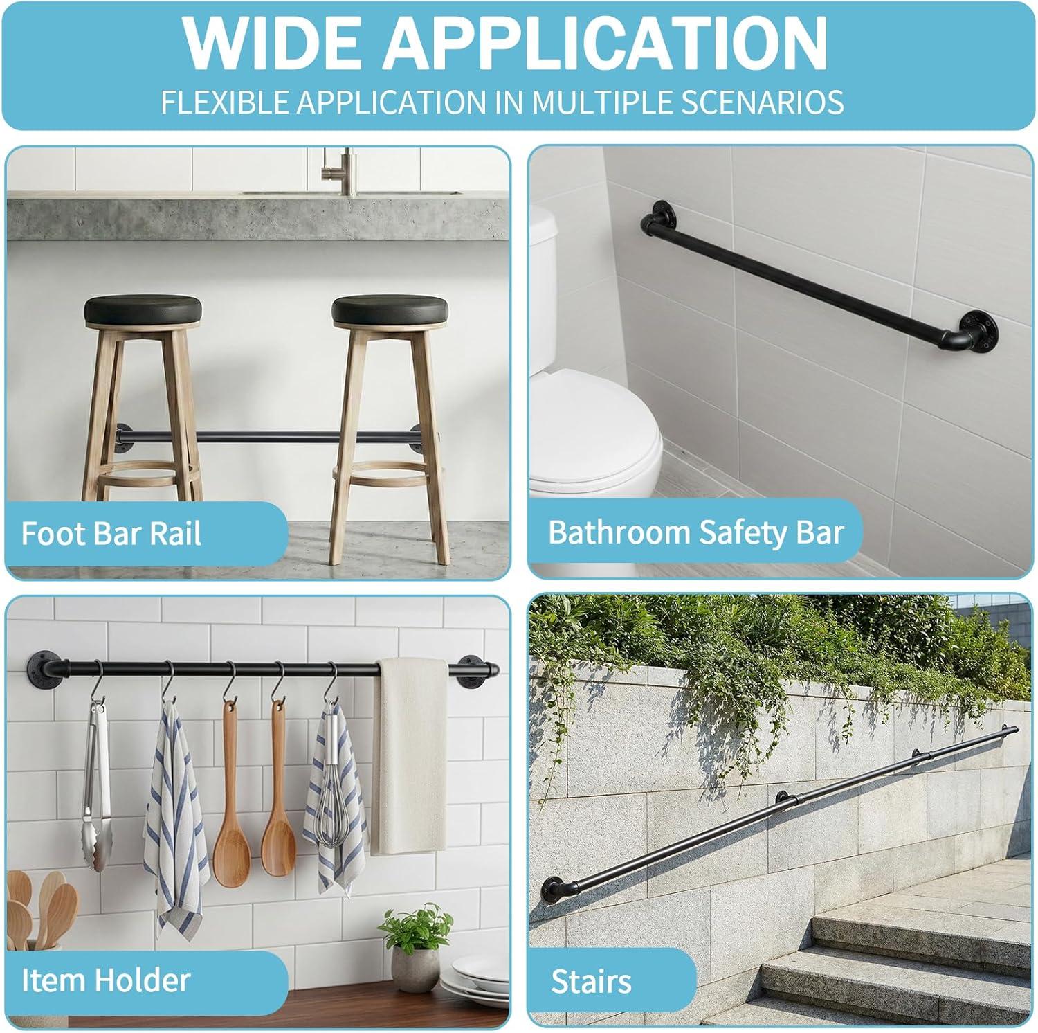 Outvita 4FT Metal Industrial Stairs, Black Grab Wall Handrail Staircase Steps, Hand Rail Safety Bar Handle for Indoor Exterior Outdoor Deck, Heavy Duty Support Stairs Bars Wall Elderly Frame Pipe(4 Feet)