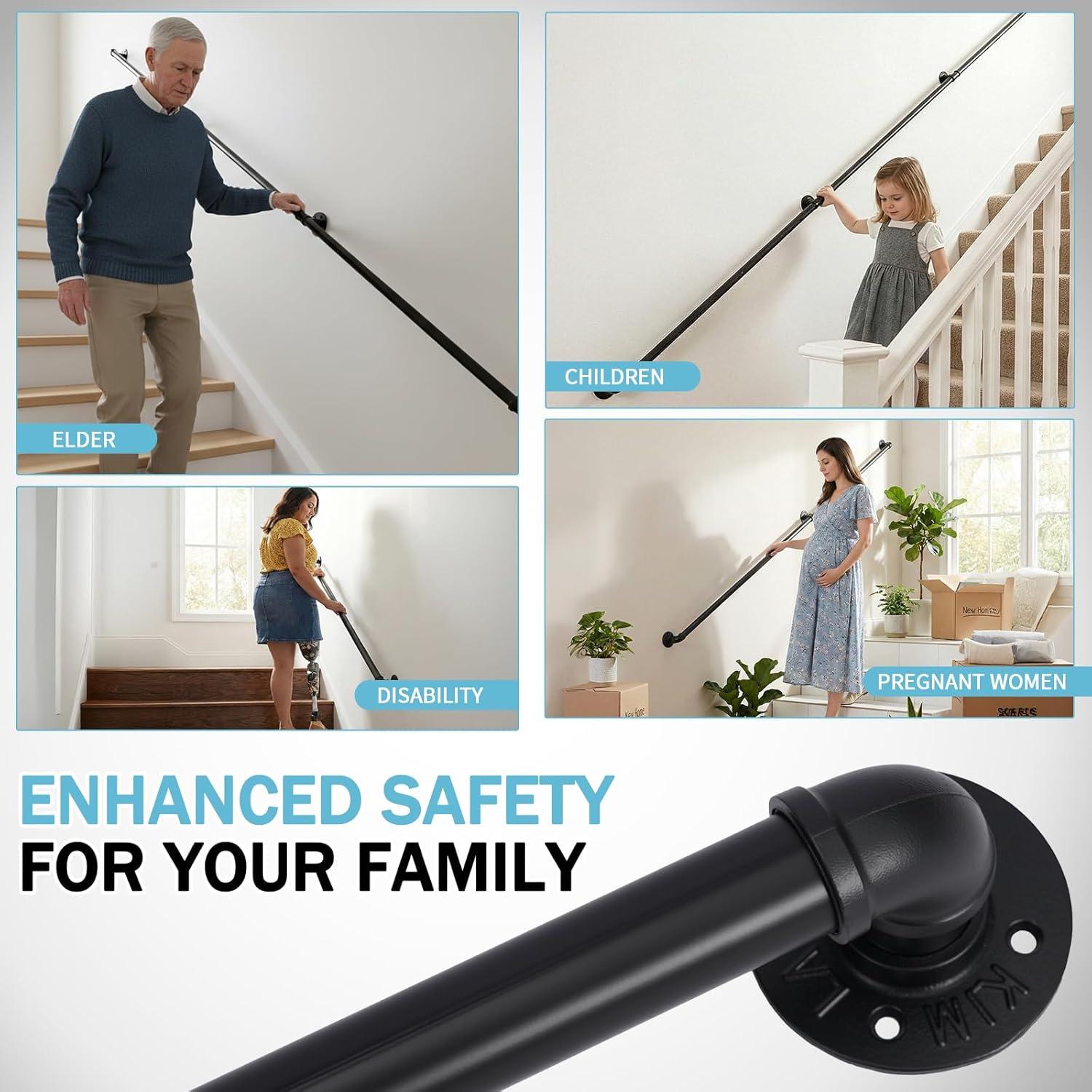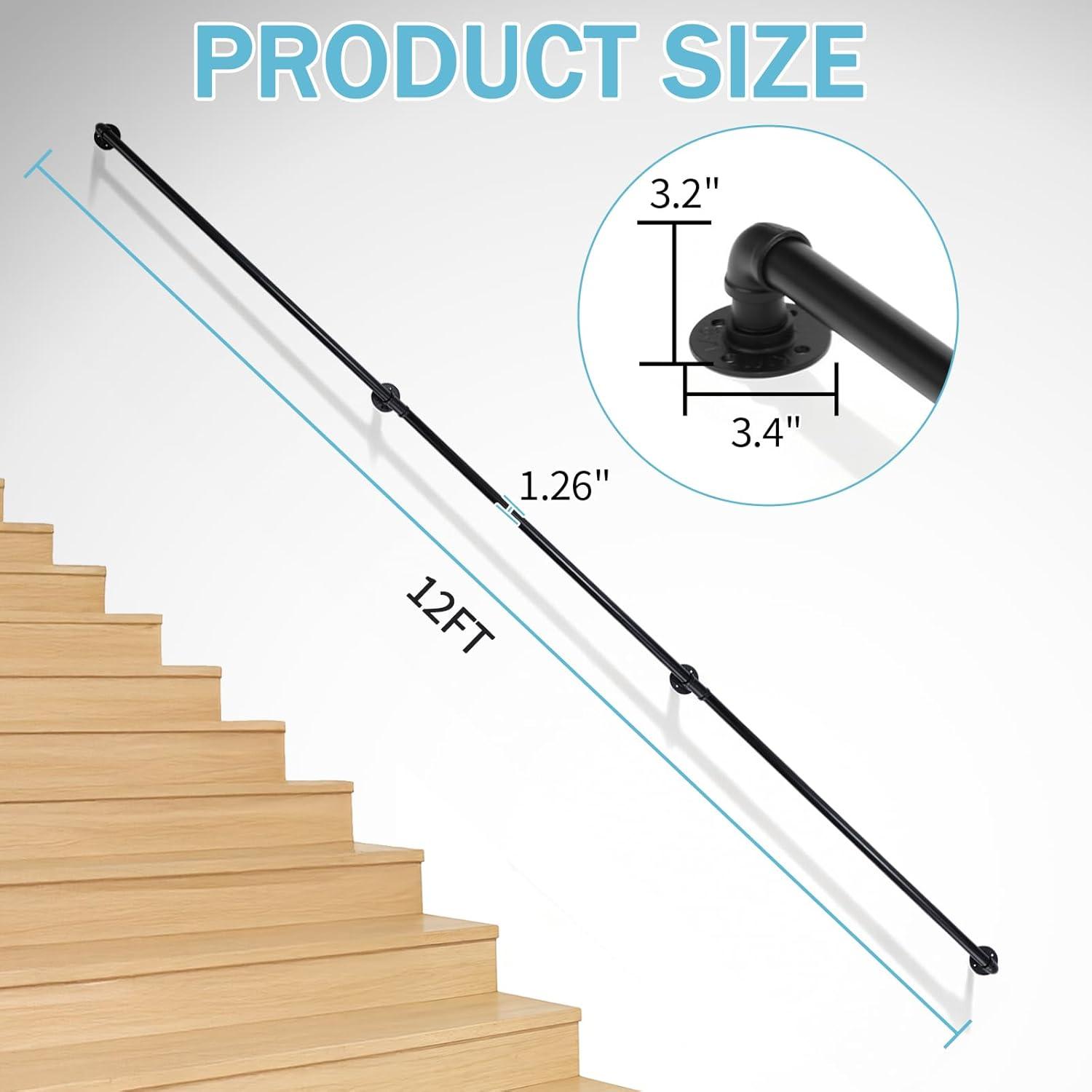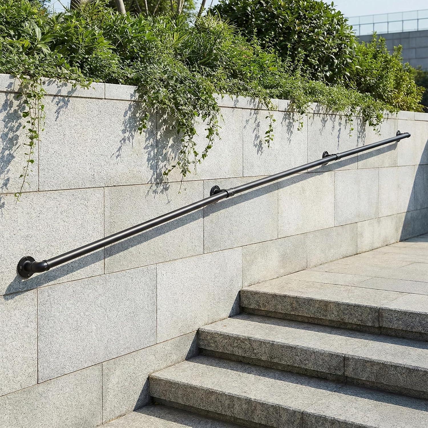 Sturdy & Safe Support — Constructed from premium metal with a black powder-coated finish, this durable handrail offers long-lasting protection against rust. This stair railing adds a modern industrial touch that blends perfectly with farmhouse, contemporary, or vintage décor. Ideal for both indoor and outdoor stairs
