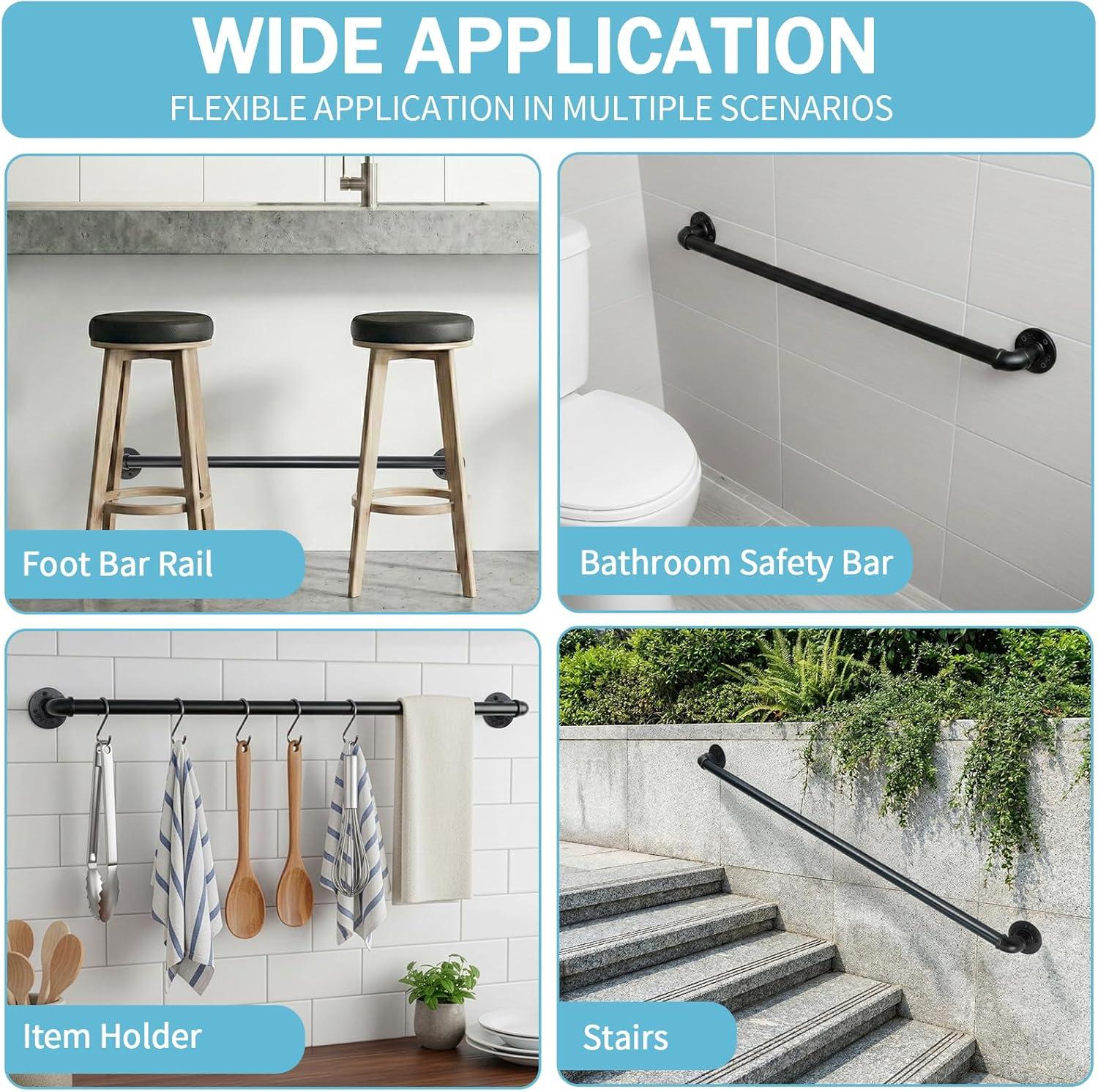 Outvita 4FT Metal Industrial Stairs, Black Grab Wall Handrail Staircase Steps, Hand Rail Safety Bar Handle for Indoor Exterior Outdoor Deck, Heavy Duty Support Stairs Bars Wall Elderly Frame Pipe(3 Feet)