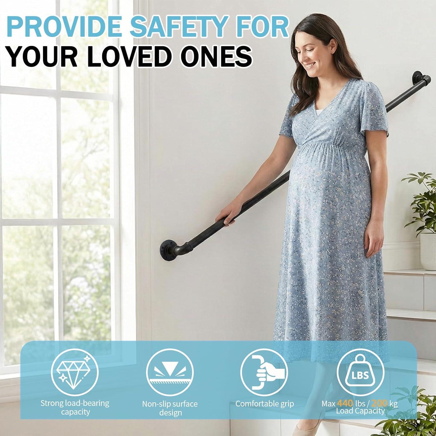 Enhanced Safety–Designed to support up to 440lbs, this stair handrail is perfect for families with kids, elderly, pregnant women, or anyone needing extra safety. The non-slip surface ensures a firm, safe grip, making it an essential feature in various settings. They help prevent falls and accidents, making spaces safer for everyone
