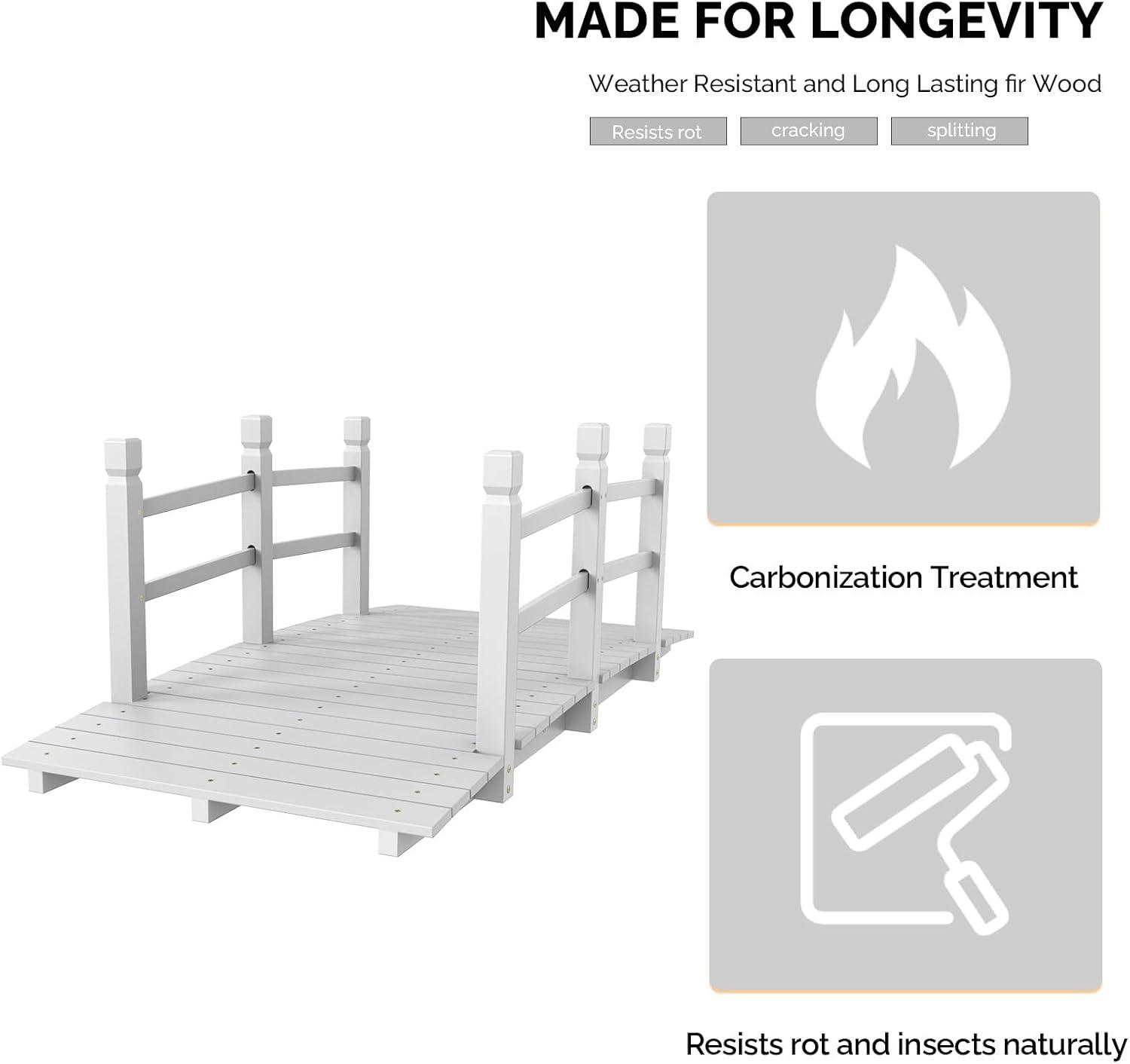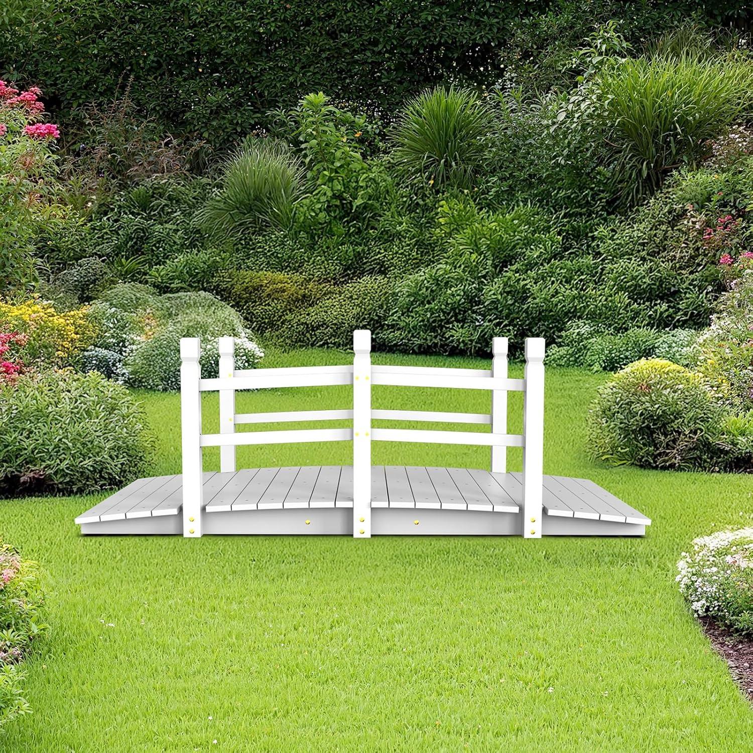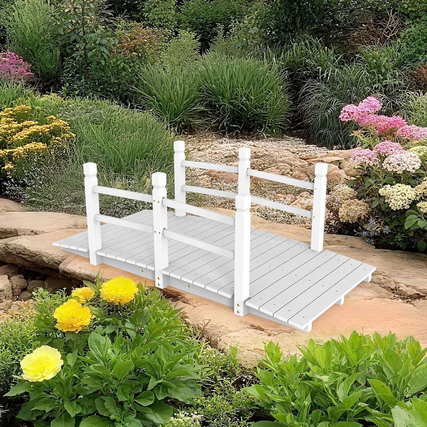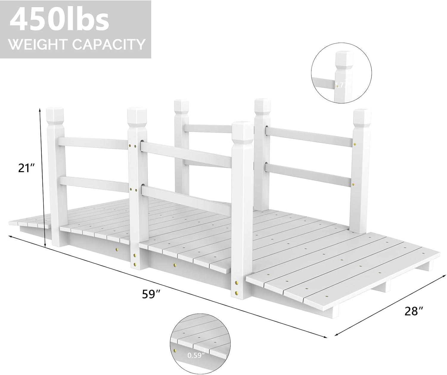 Outvita 5 ft Garden Wooden Bridge Arch Stained Finish with Safety Rails Outdoor Footbridge for Backyard Creek Farm, Decorative Pond Bridge(5ft-white)