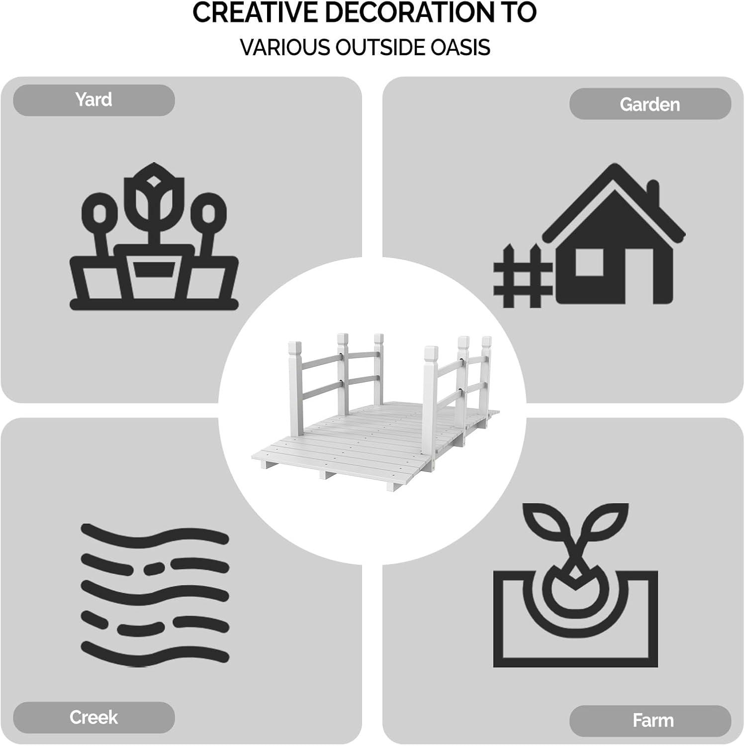 imageOutvita 5 ft Garden Wooden Bridge Arch Stained Finish with Safety Rails Outdoor Footbridge for Backyard Creek Farm Decorative Pond Bridge5ftwhite