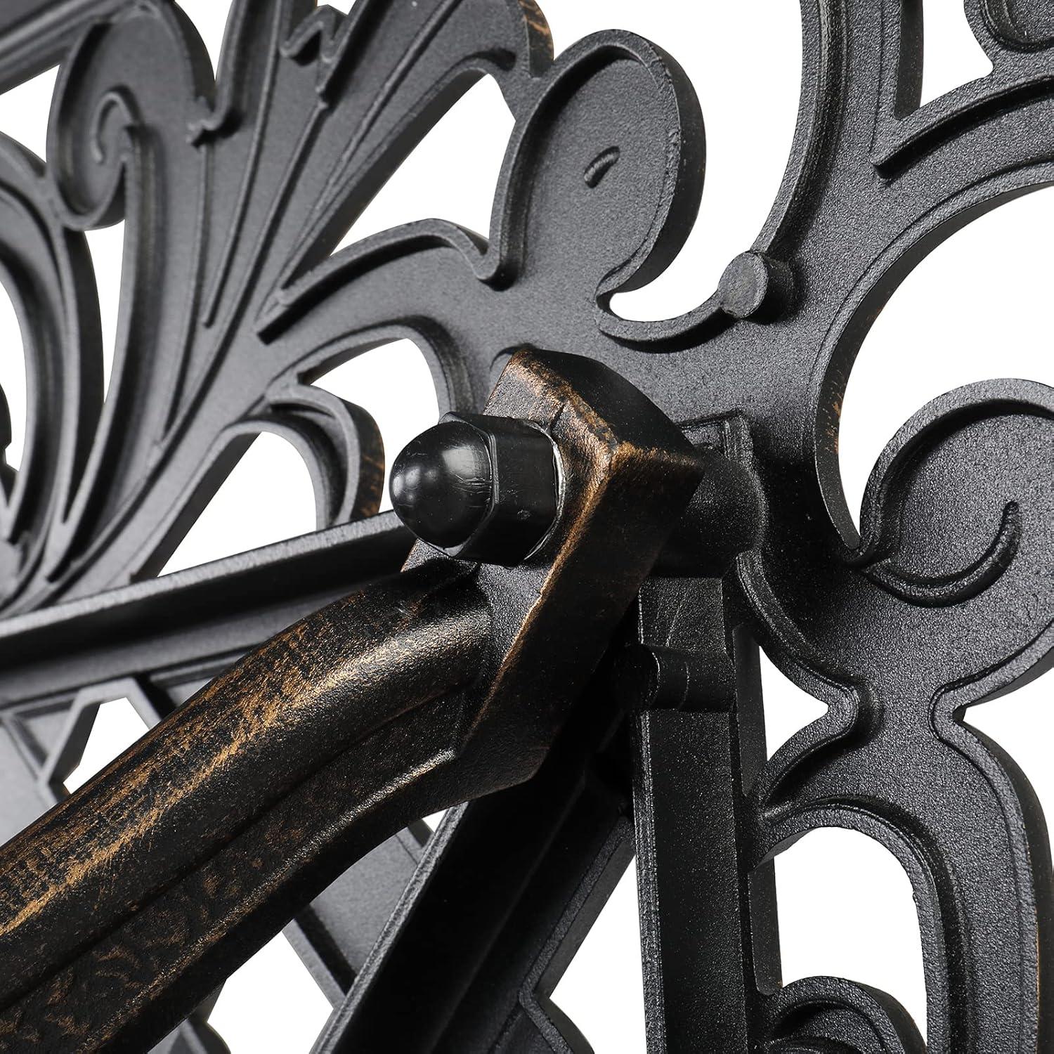 Exquisite Design: The tabletop features a beautiful tulip pattern paired with a vintage bronze finish, adding a touch of elegance and artistic flair to your outdoor space. The intricate pattern details complement the classic bronze color, creating a unique visual appeal that seamlessly blends with various outdoor decor styles