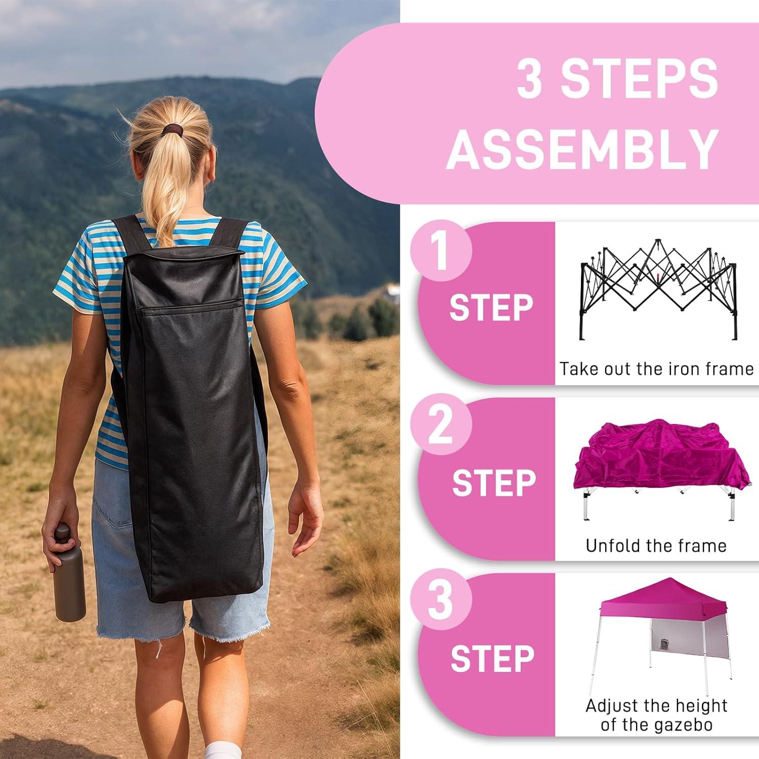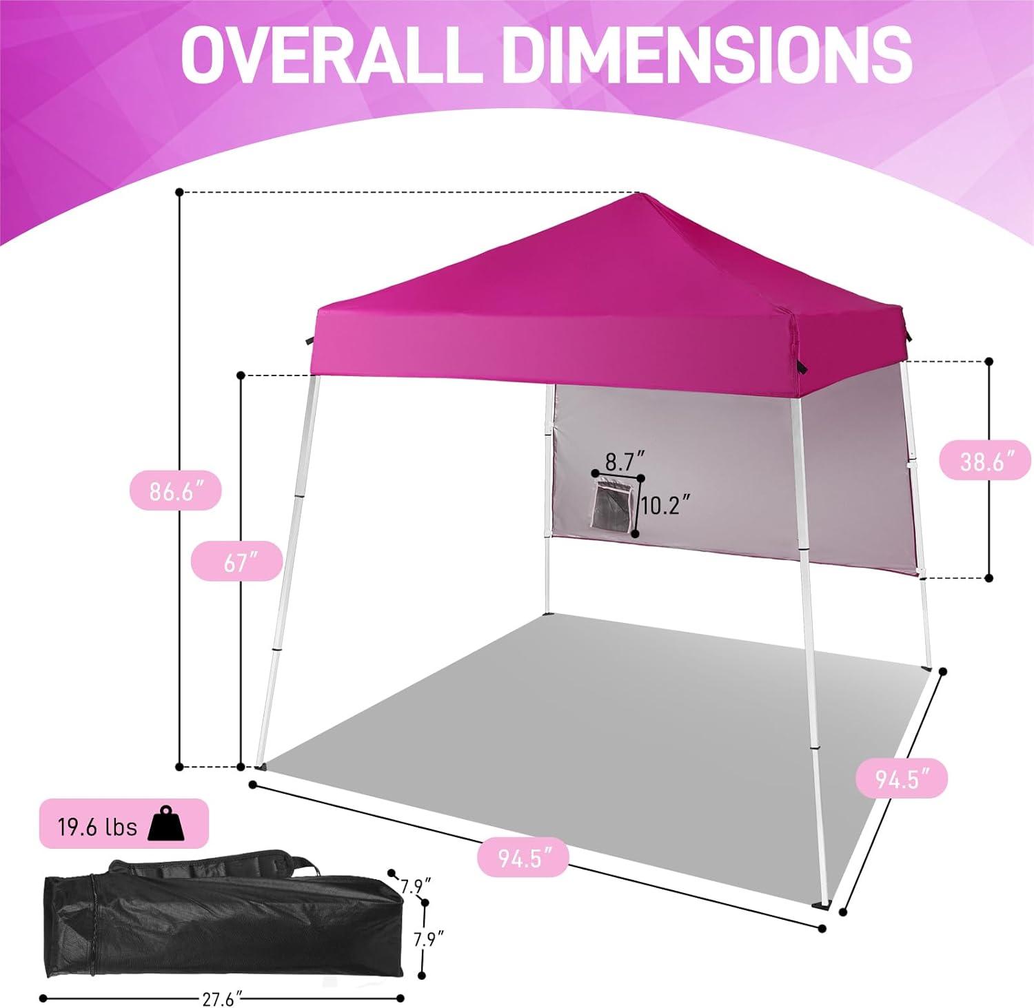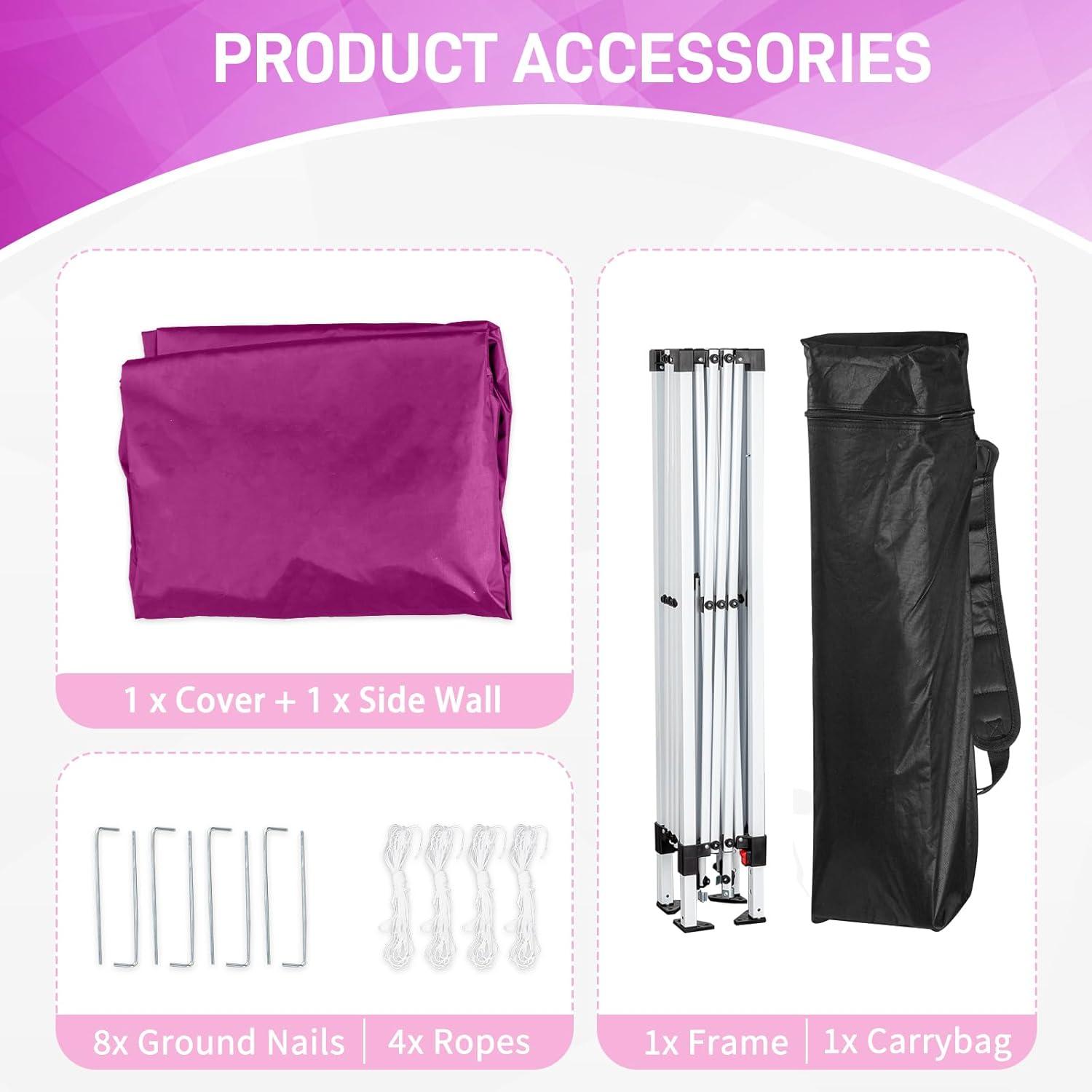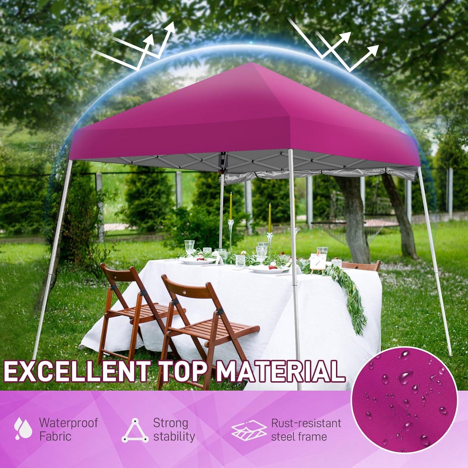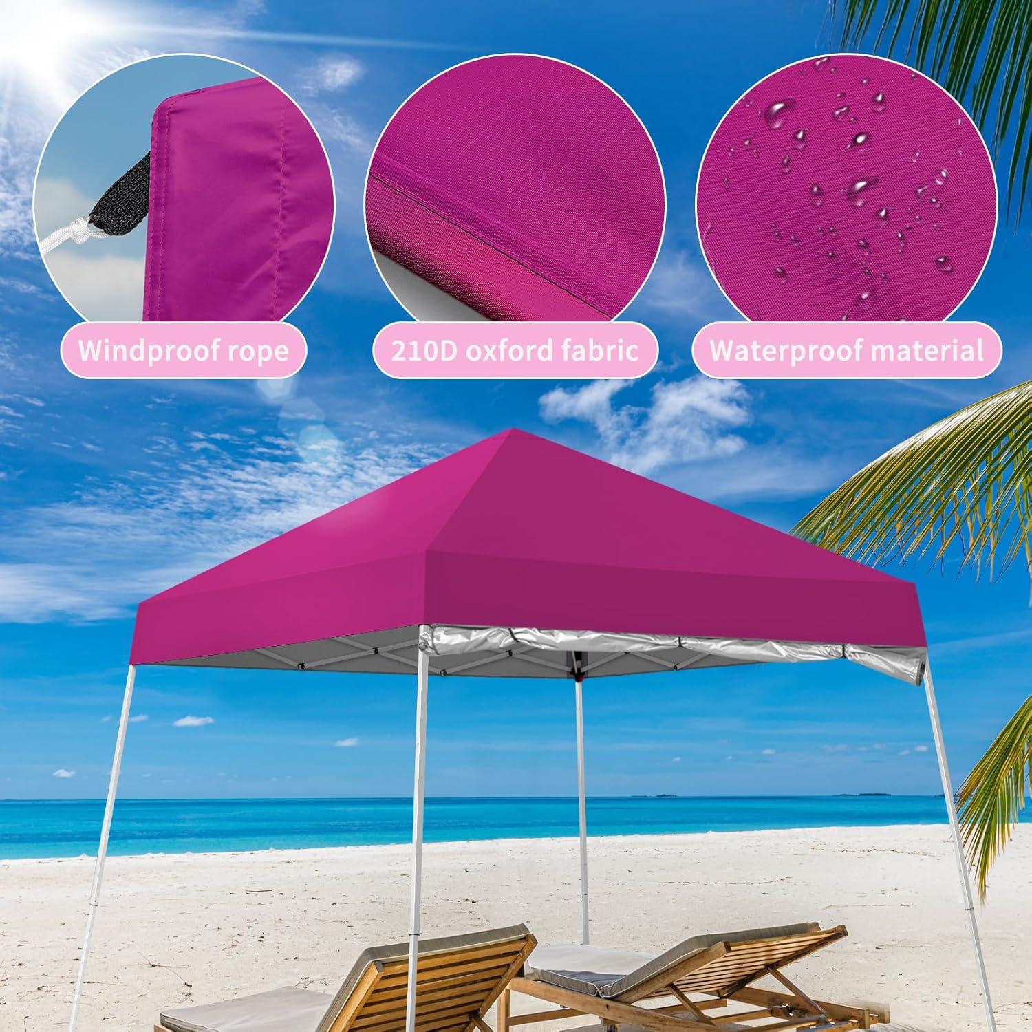 Outvita 5x5 Pop Up Canopy Tent, Ez Up Outdoor Canopy Tent Instant Shelter with Carry Bag Straight Legs Patio Balcony Porch Backyard Garden(6x6-pink)