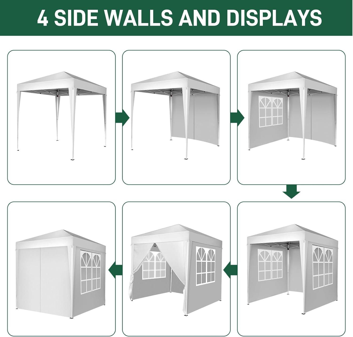 【WIDE USAGE】This party tent is perfect for commercial or recreational use like party, wedding, graduation, flea market, small business, outdoor events, patio leisure, backyard, camping, picnics, sporting events, arts and crafts tables and much more