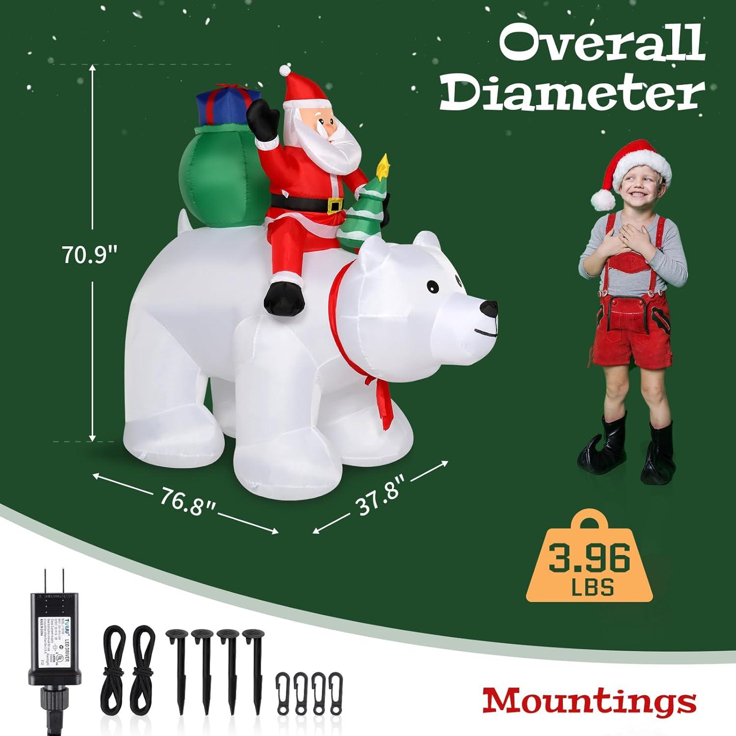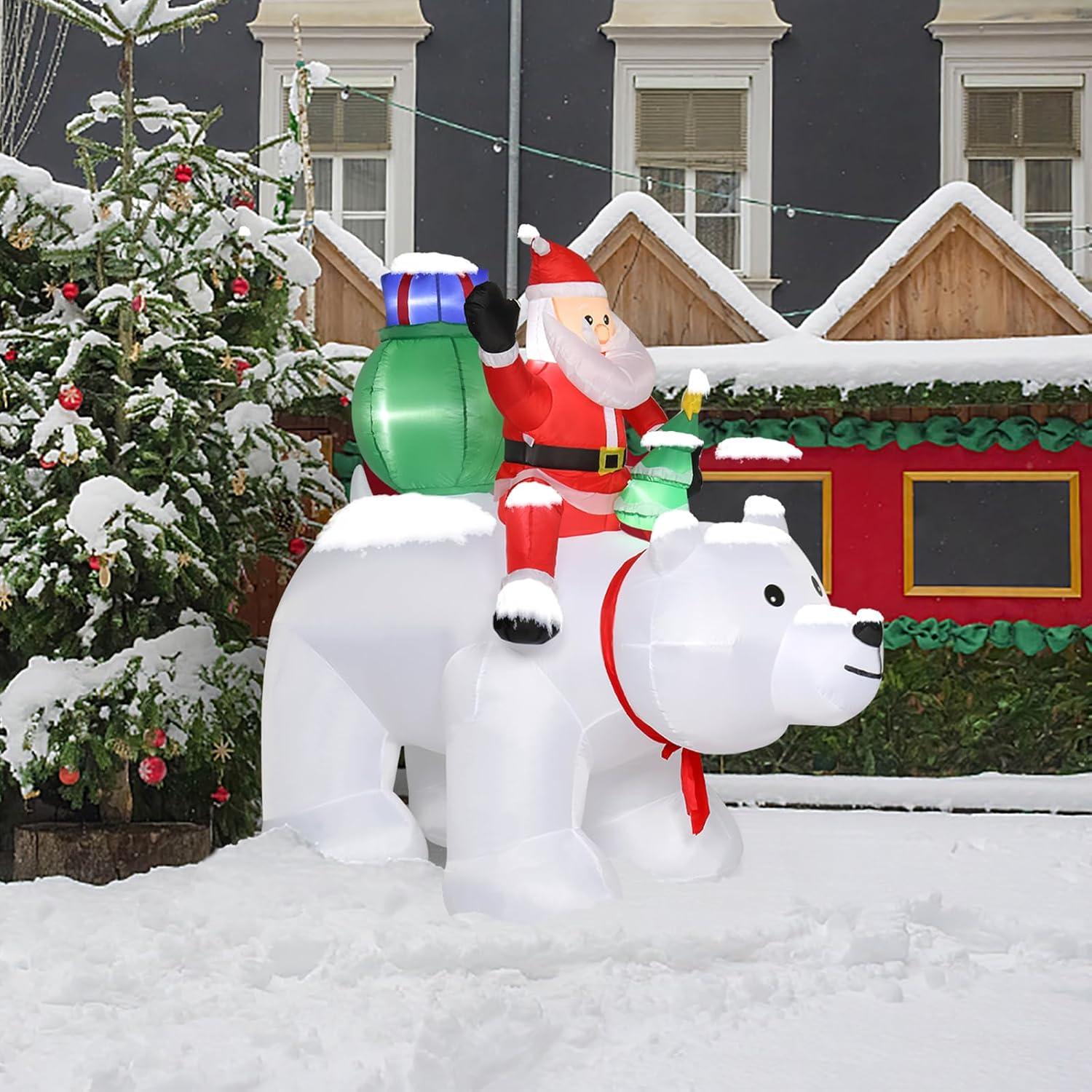 imageOutvita 6FT Outdoor Christmas Inflatables Decorations with LED Lights Inflatable Santa Riding Motorcycle with A Tree Xmas Blow Up Yard Decor for Yard Lawn Garden Patio PartySanta Riding Polar Bears