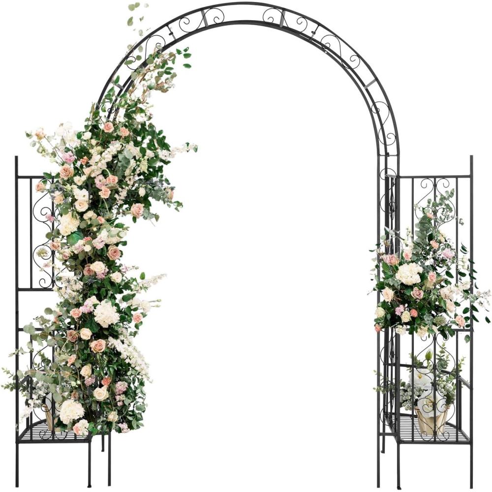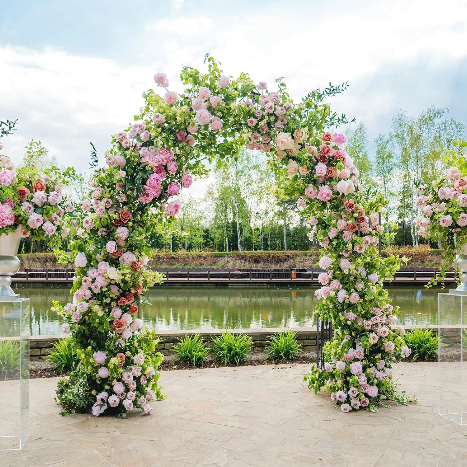 【UPGRADE STABILITY】This wedding arch is made of iron material with weather-resistant powder coated for long service life and protection from abrasion and weathering. 4 ground stakes that allow you to insert it 7.8 inches into the ground to ensure it can withstand storms, blizzards and other harsh weather