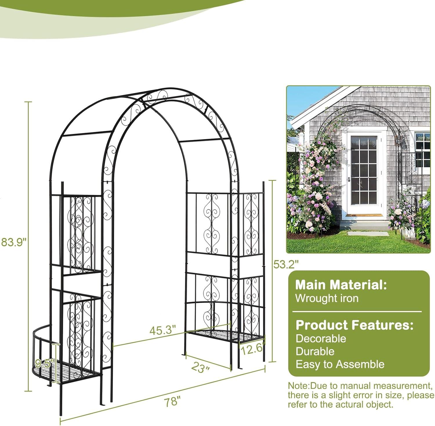 【DELICATE APPERANCE】Exquisite workmanship ensures that every corner and surface of the arch is smooth and burr-free. The graceful garden arch create a beautiful entrance to your garden with its delicate lines and vintage apperances. These outdoor metal arbor trellis add a striking focal point to your yard even without climbing plants and decorations