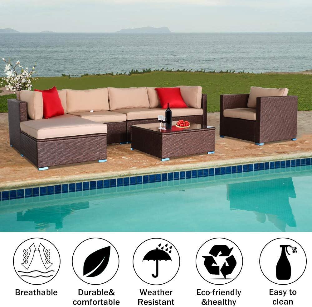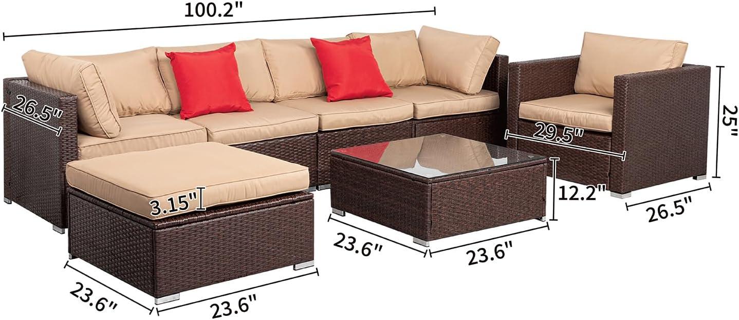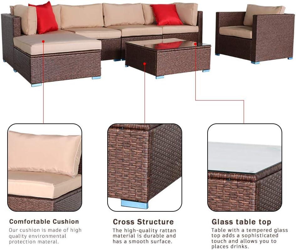 Outvita 7 Pieces Patio Furniture Set, All-Weather Wicker Outdoor Sectional Sofa with Ottoman, Outdoor Furniture Set with Table and Cushions for Garden, Backyard, Poolside