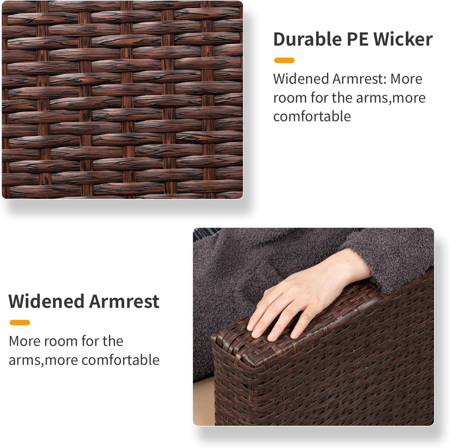【Comfort experience】 : Outdoor rattan chairs are comfortable, spacious, cool and breathable. Armrests are wide enough to relax the arms and are equipped with a soft 3.15-inch thick seat cushion and back cushion for a comfortable sitting experience. It is equipped with a spacious ottoman that can be used to sit and relax, or it can be spliced with the seat to lie and rest.