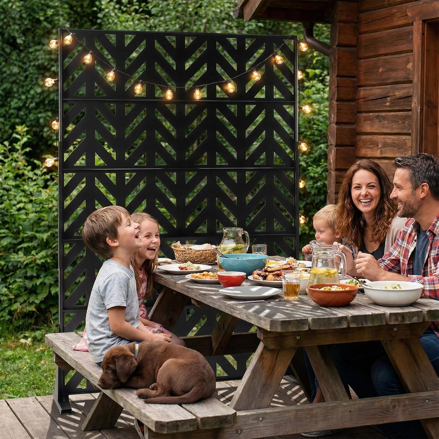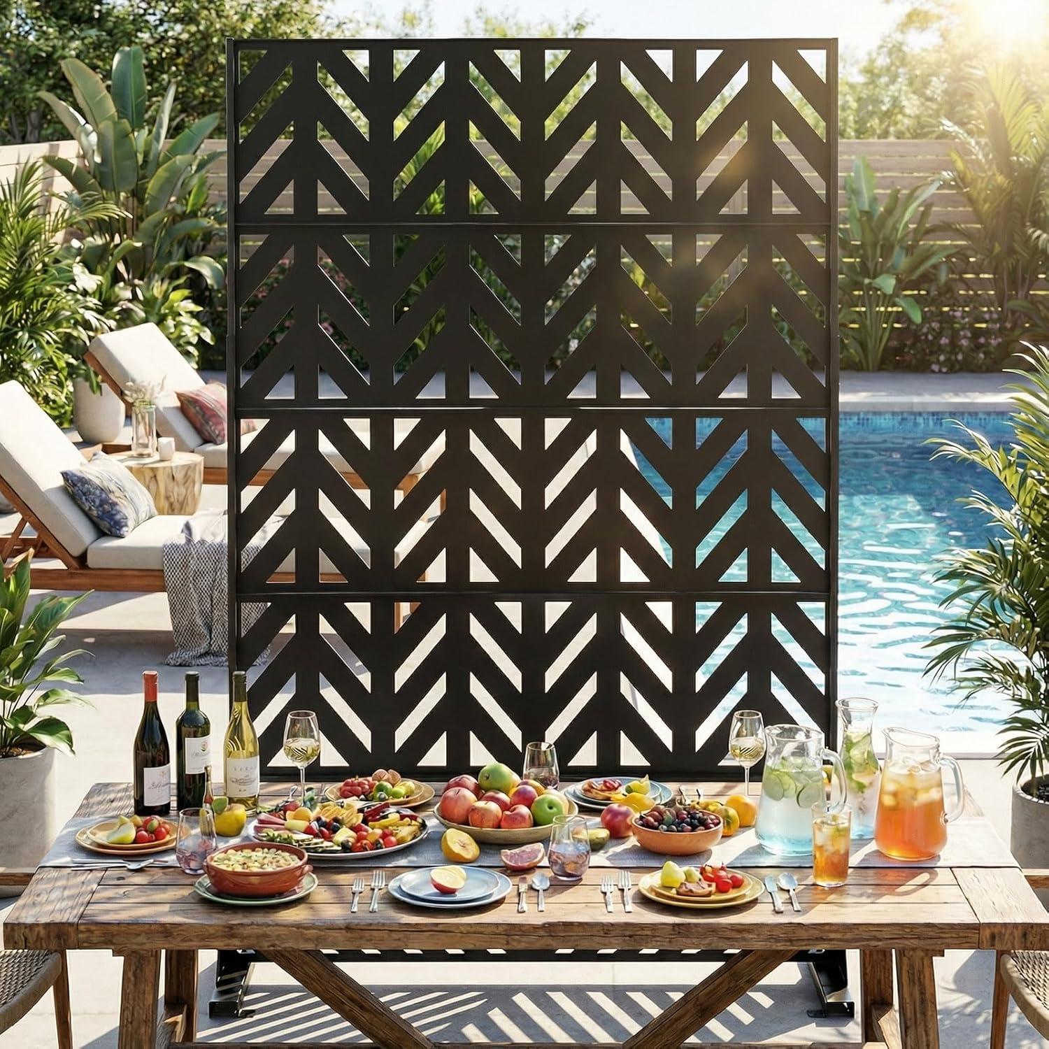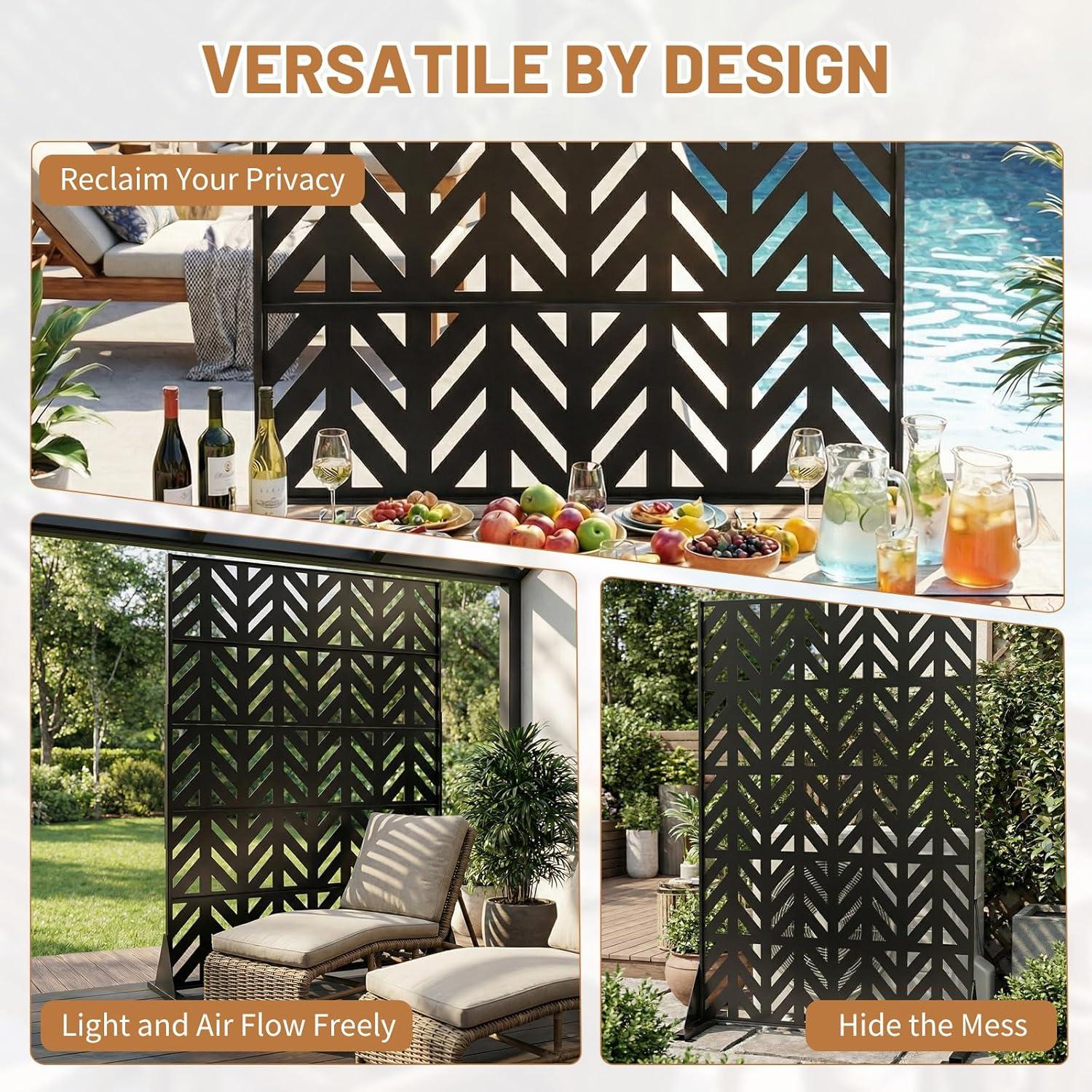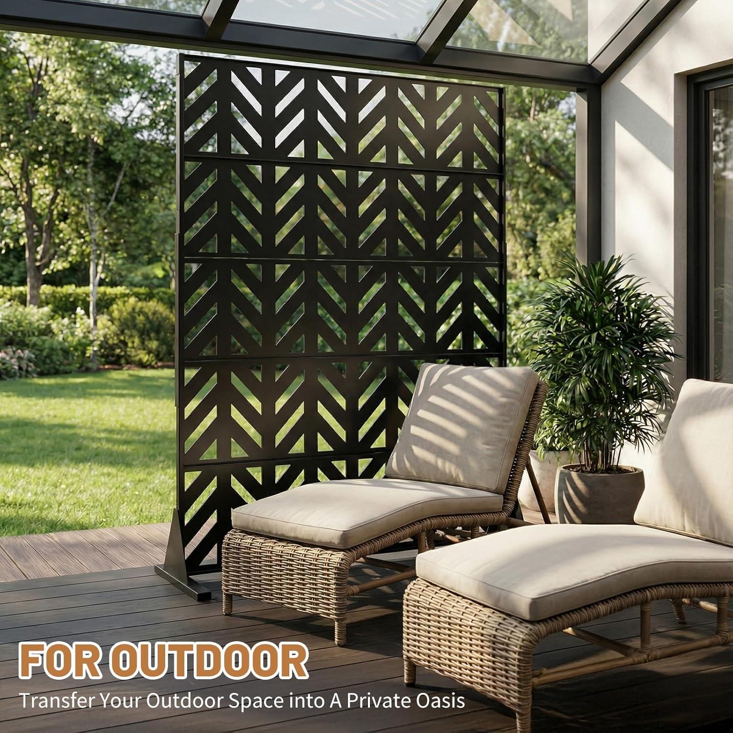 Outvita 72" H x 47" W Metal Privacy Screen, Indoor Outdoor Privacy Fence Panels, Balcony Patio Screen Freestanding Panels, for Patio Garden(Chevron)