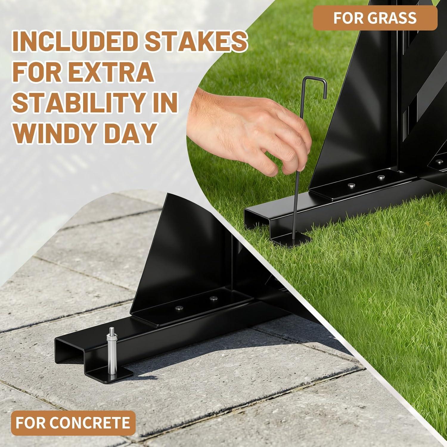 【EASY ASSEMBLY WITH COMPLETE ACCESSORIES】This outdoor privacy screen freestanding comes with all necessary tools, accessories and detailed installation instructions. The package includes 4 ground stakes for secure fixation on grass and 4 expansion bolts for concrete floors, ensuring stable installation in various outdoor scenarios
