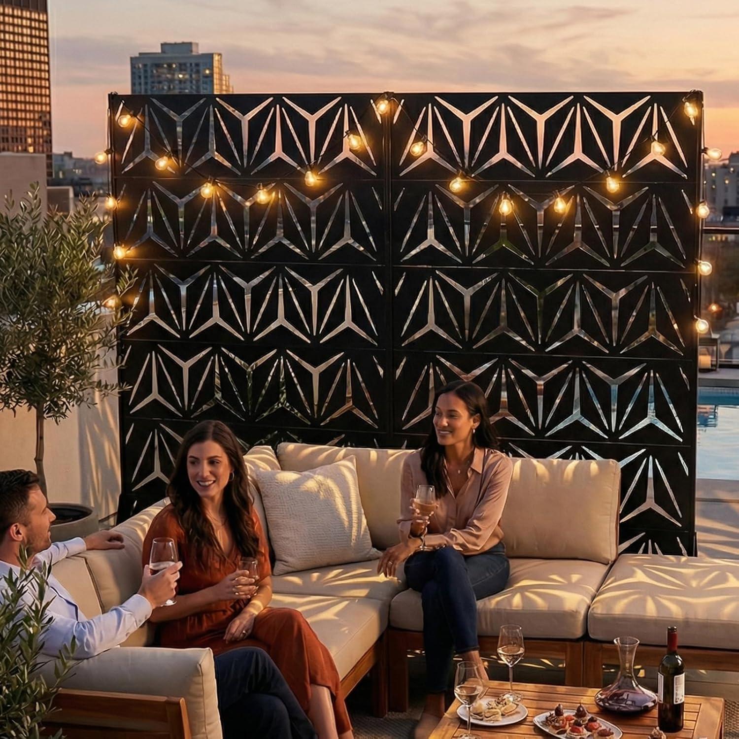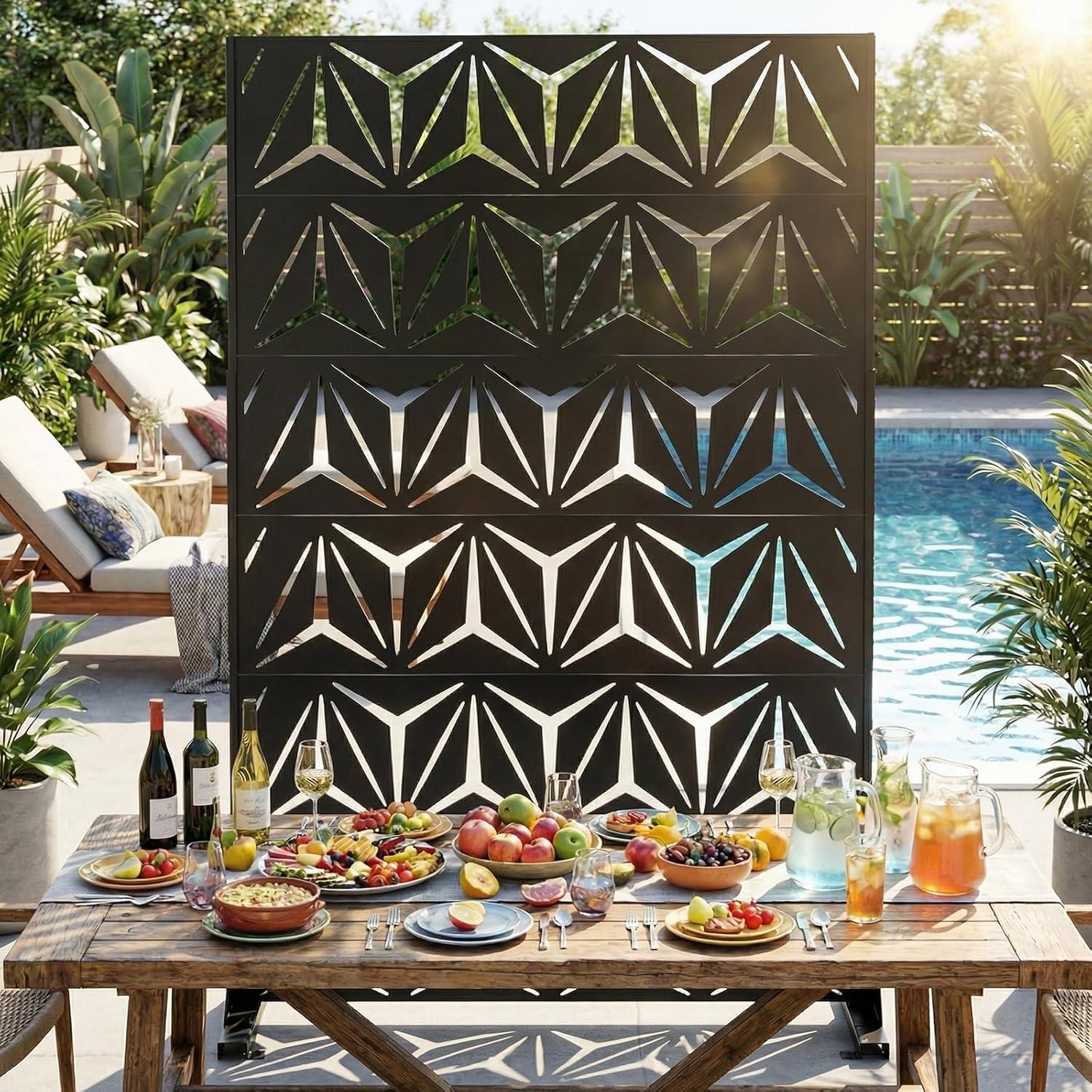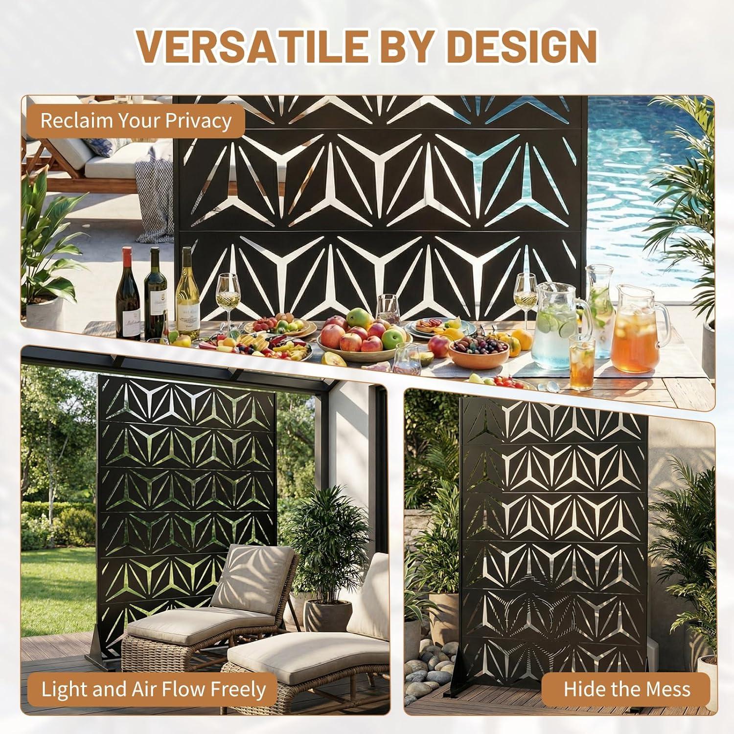 Outvita 72" H x 47" W Metal Privacy Screen, Indoor Outdoor Privacy Fence Panels, Balcony Patio Screen Freestanding Panels, for Patio Garden(Geometric Triangle)