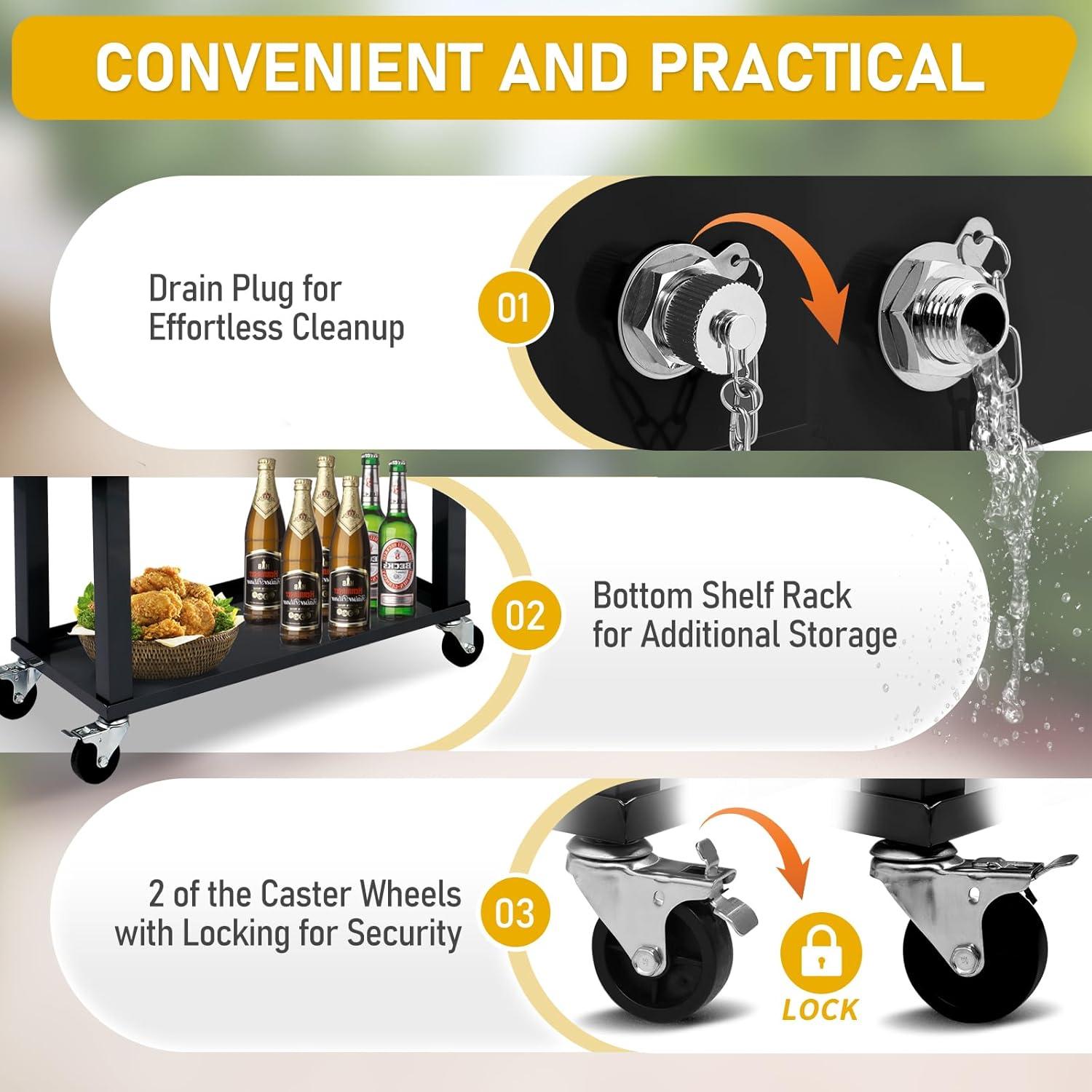Be the first to review “Outvita 80 Quart Rolling Ice Chest, Portable Bar Drink Cooler with Catch Basin, Bottom Storage Tray and Bottle Opener for Patio Party BBQ Beach Activities(Black)”