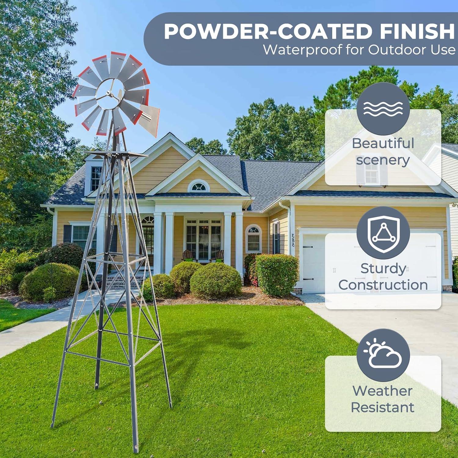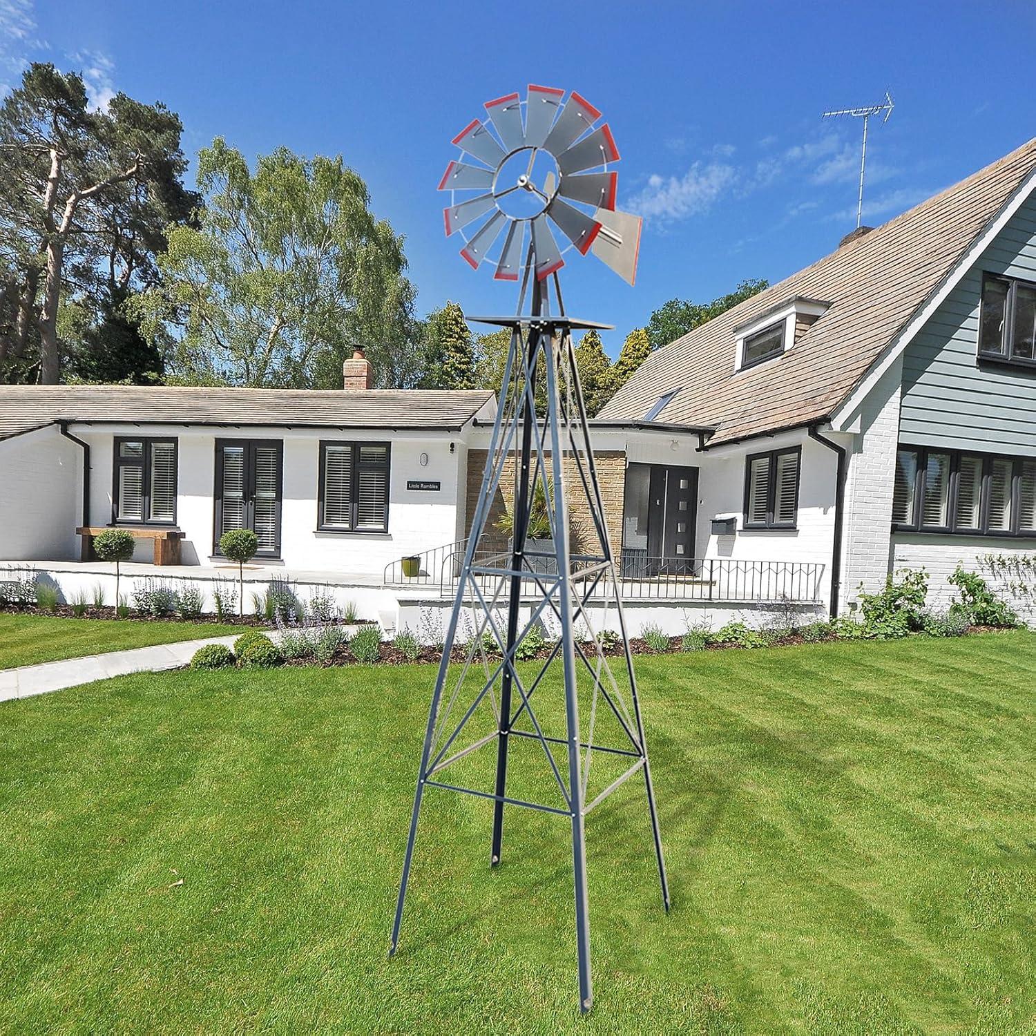 Outvita 8FT Ornamental Windmill, Heavy Duty Durable Metal Weather Vane Garden Decoration Weather Resistant for Garden, Yard, Farm, Seaside (8ft-Gray)(8ft-gray)