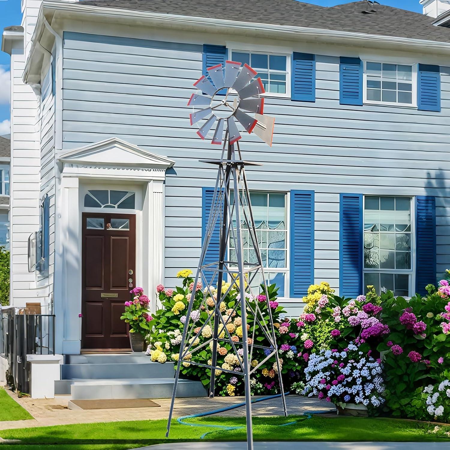 【DURABLE USE】No need electric. This windmill for yard is turned by the wind power. Uses roller bearings to keep windmill blades turning smoothly and quietly with the wind