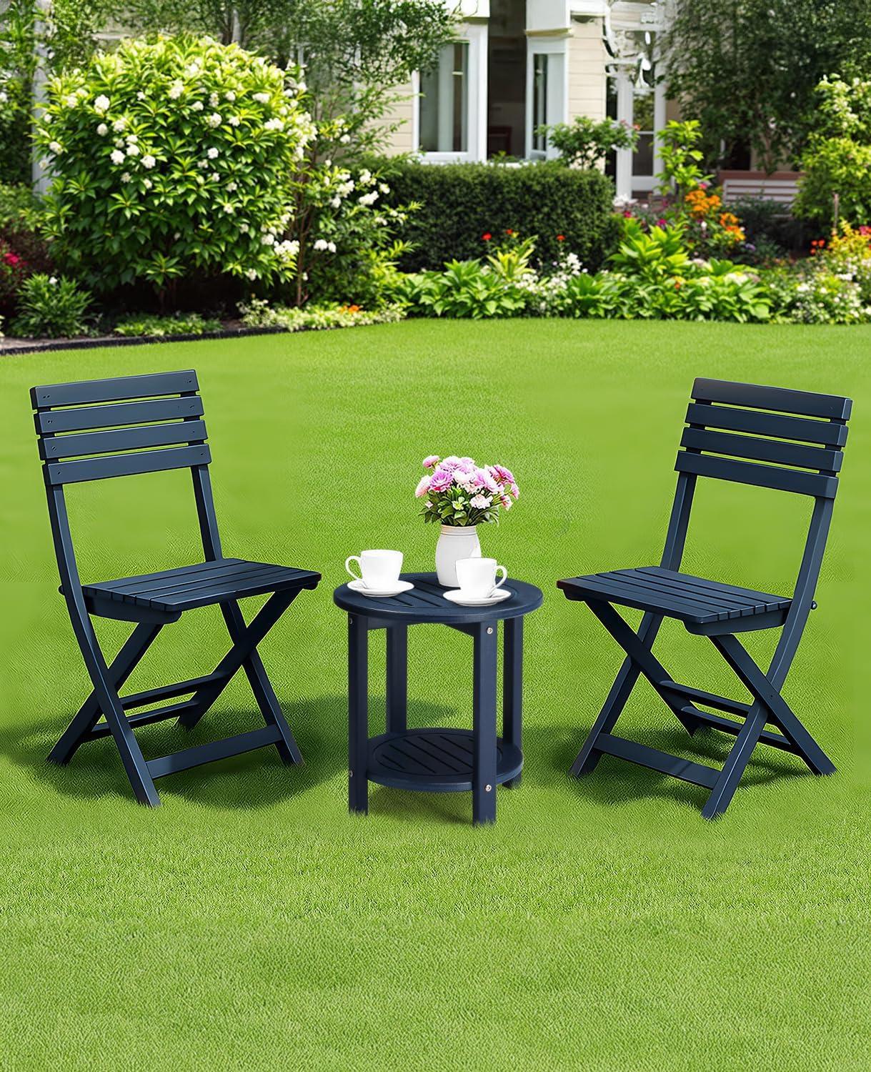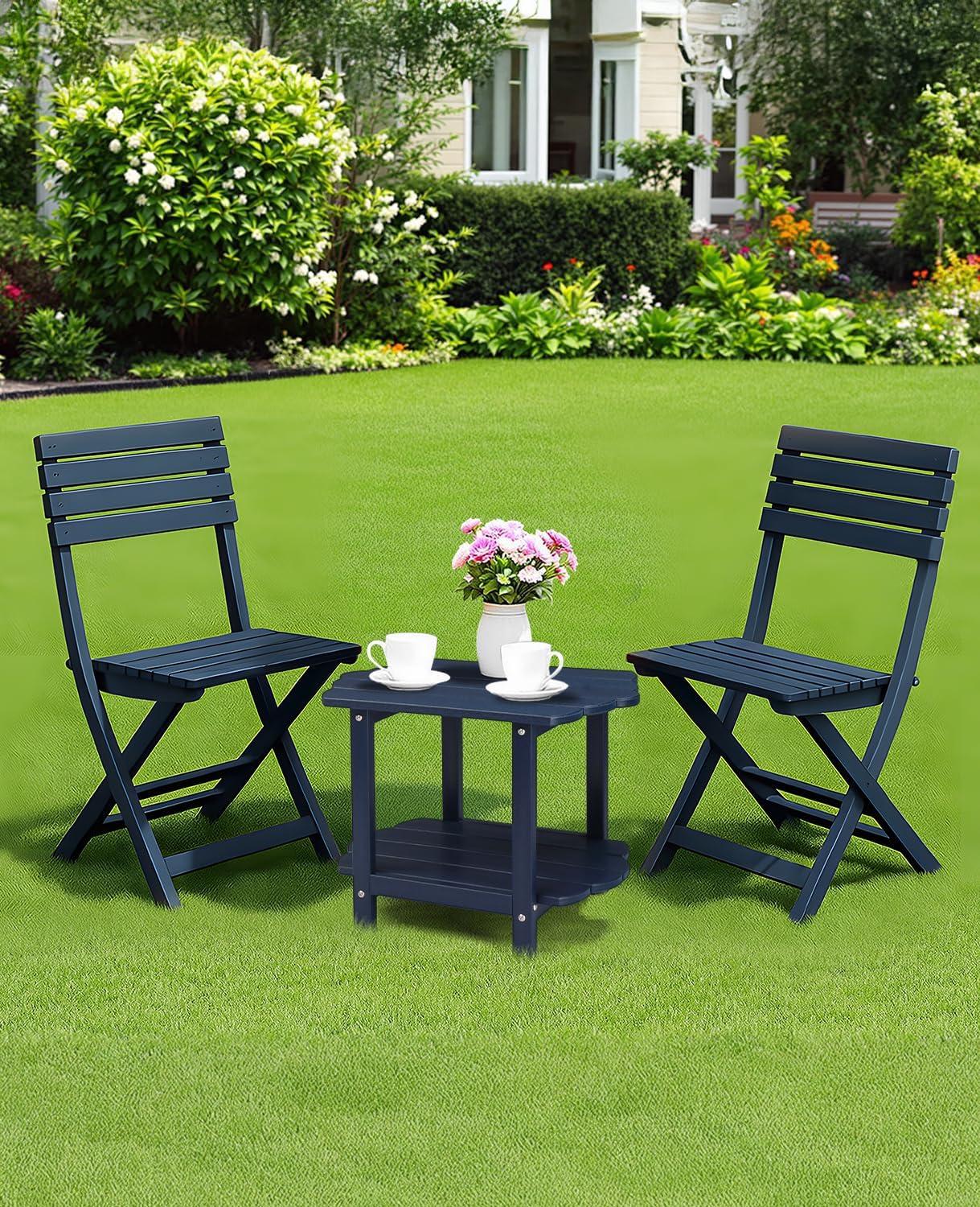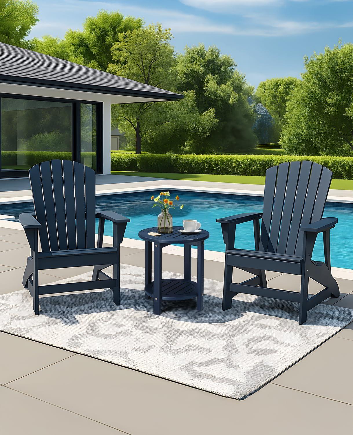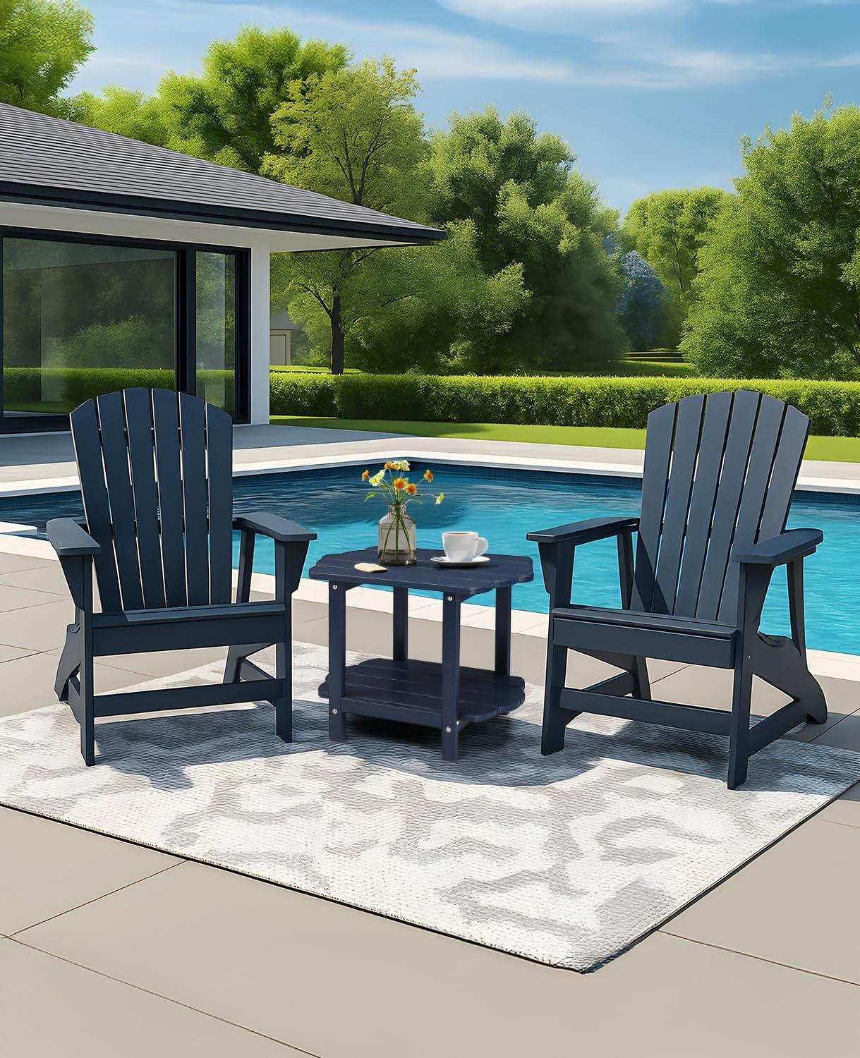 Outvita Adirondack Side Table, 24 Inch Square Outdoor End Table, HDPE Weather Resistant Coffee Table for Patio Balcony Deck Garden, Blue(Black)