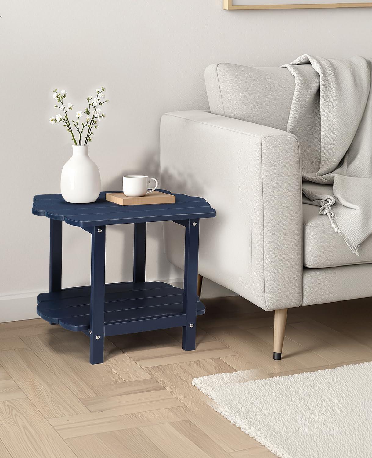 Outvita Adirondack Side Table, 24 Inch Square Outdoor End Table, HDPE Weather Resistant Coffee Table for Patio Balcony Deck Garden, Blue(Blue)